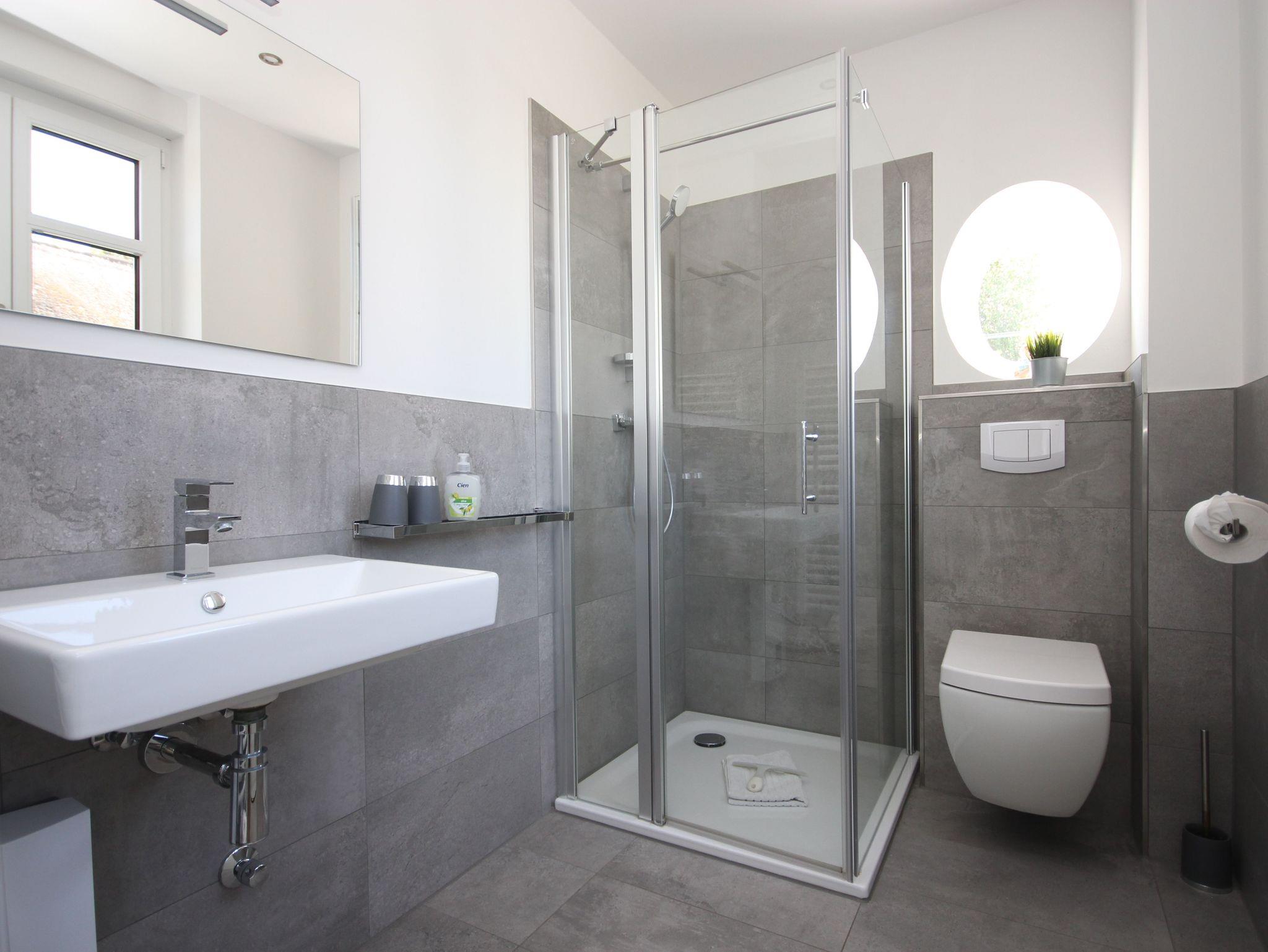 Das Bad, mit der ebenerdiger Dusche sowie Haarföhn, runden die Einrichtung ab.