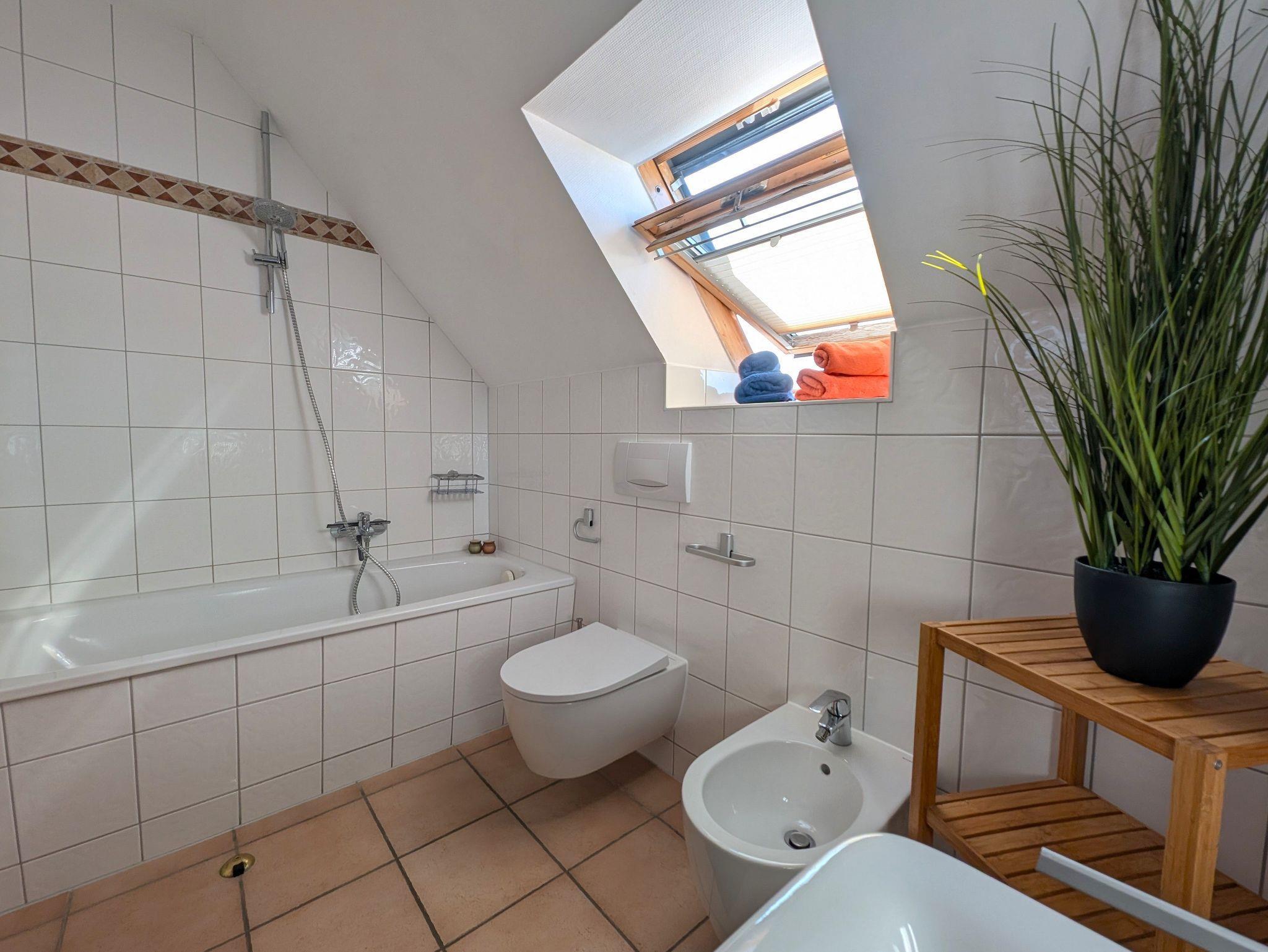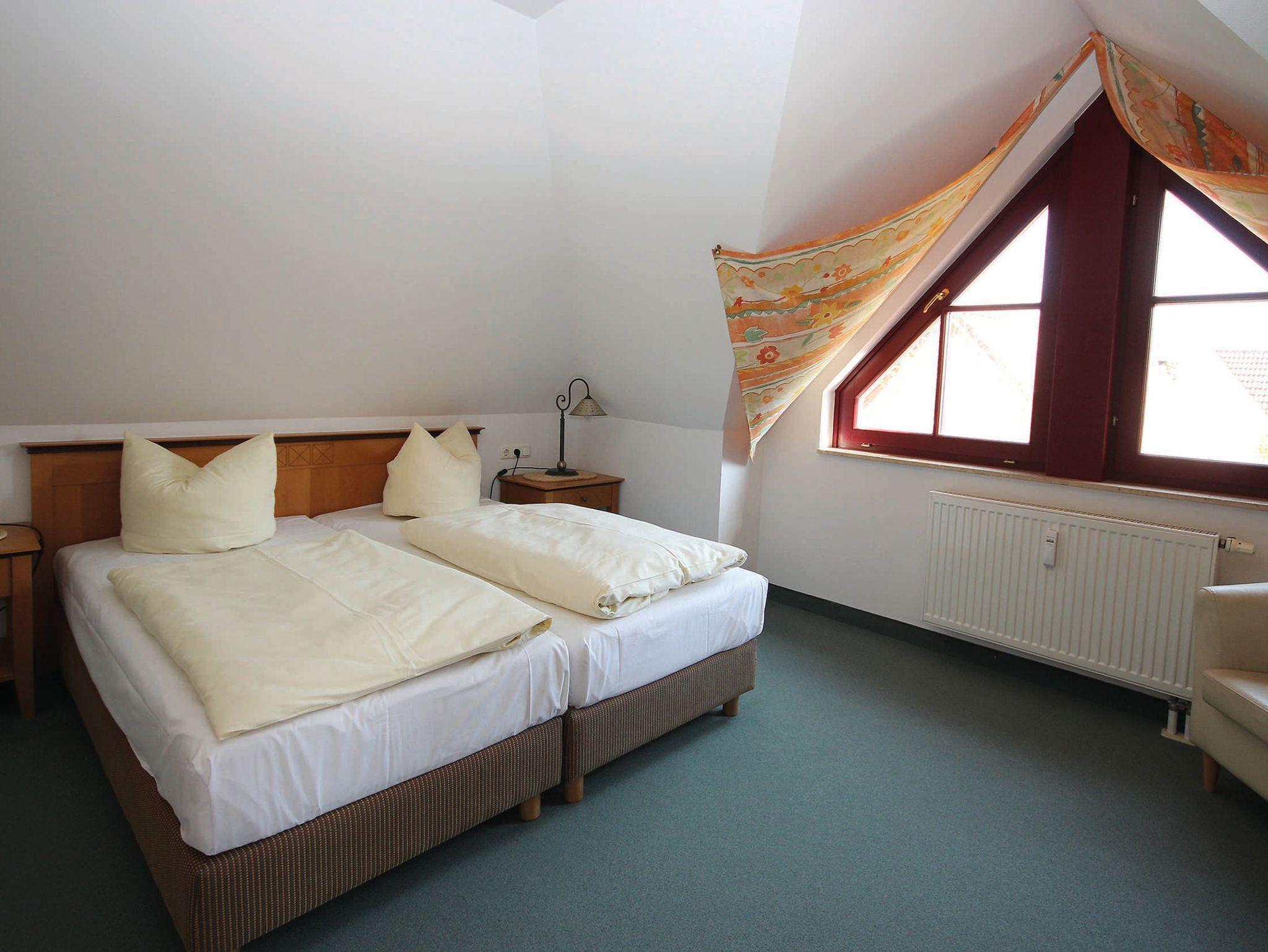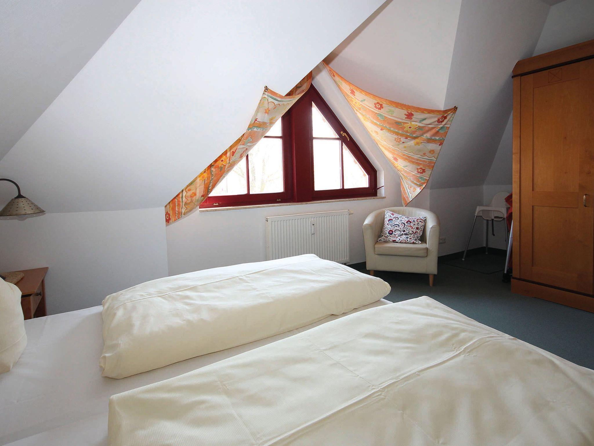 In der offenen Küchenzeile finden Sie einen Essplatz, einen Geschirrspüler, Mikrowelle und Cerankochfeld, sowie umfangreiche Küchenutensilien zur Zubereitung von leckeren Speisen. Für die nächtliche Ruhe stehen Ihnen 2 Schlafzimmern zur Verfügung. Im 1. Schlafzimmer befindet sich ein Doppelbett 1,80 x 2,00 m (getrennte Matratze) und das 2. Schlafzimmer verfügt über 2 Einzelbetten 0,90 x 2,00 m, für ausreichend Stauraum ist gesorgt. Das Bad ist mit einer Badewanne ausgestattet. Für unsere kleinen Gäste können Sie Kinderreisebett und Kinderhochstuhl à 10,00 € /pro Woche dazubuchen. Die Wohnung wird mit Bettwäsche übergeben, Handtücher können bei der Zimmervermittlung dazu gebucht werden für 7,00 € pro Person (1 Badetuch, 1 Handtuch). Der Parkplatz befindet sich im Aussenbereich.