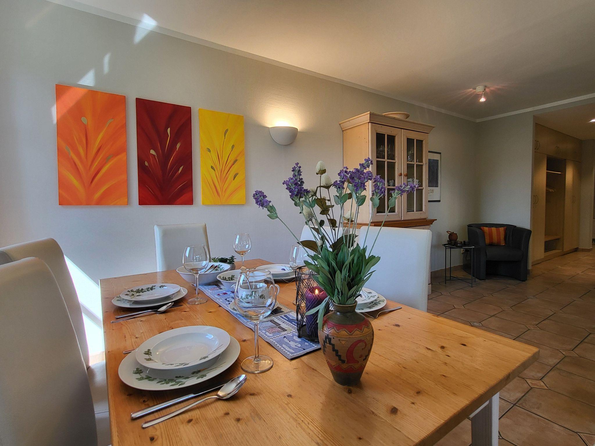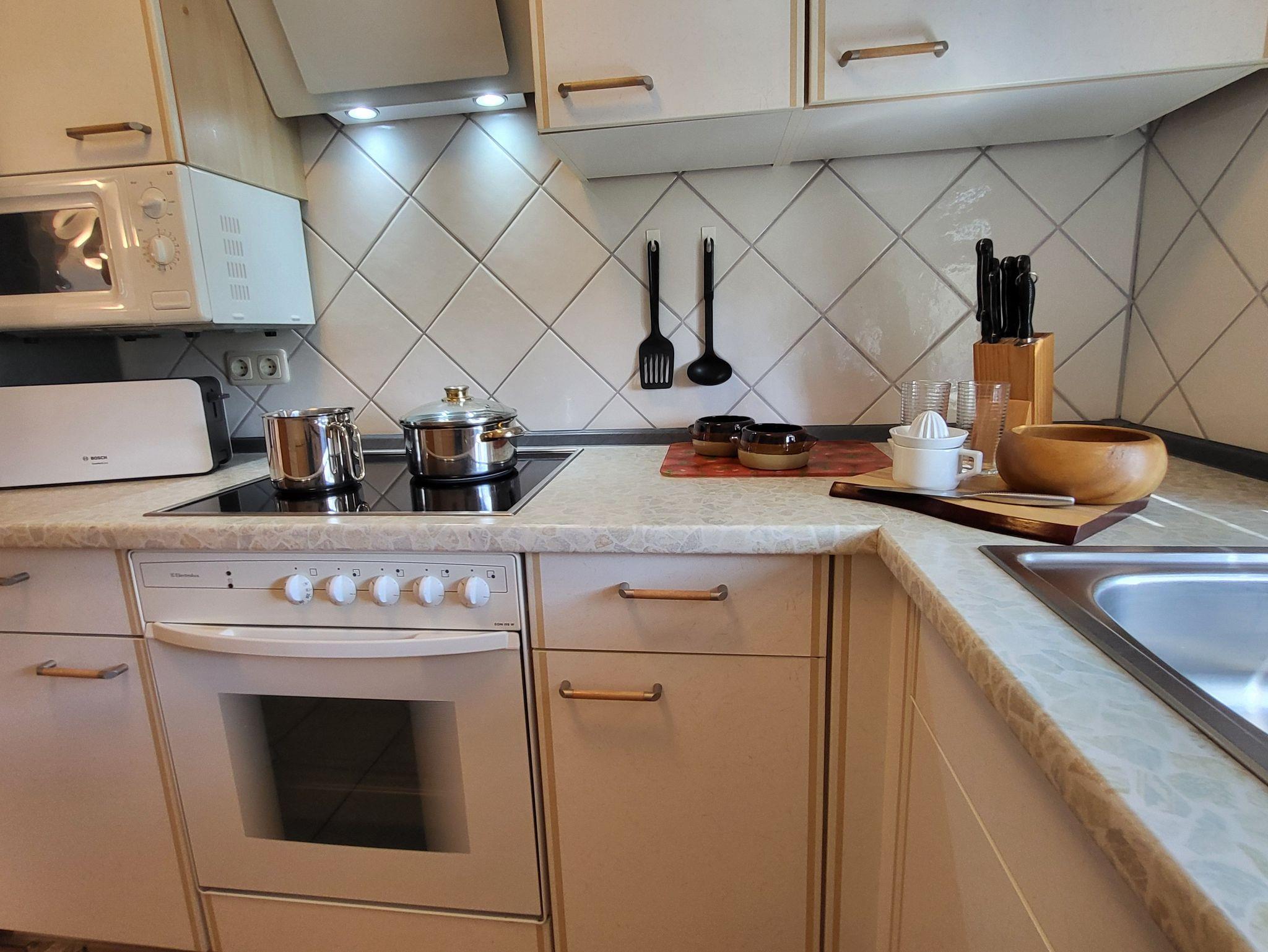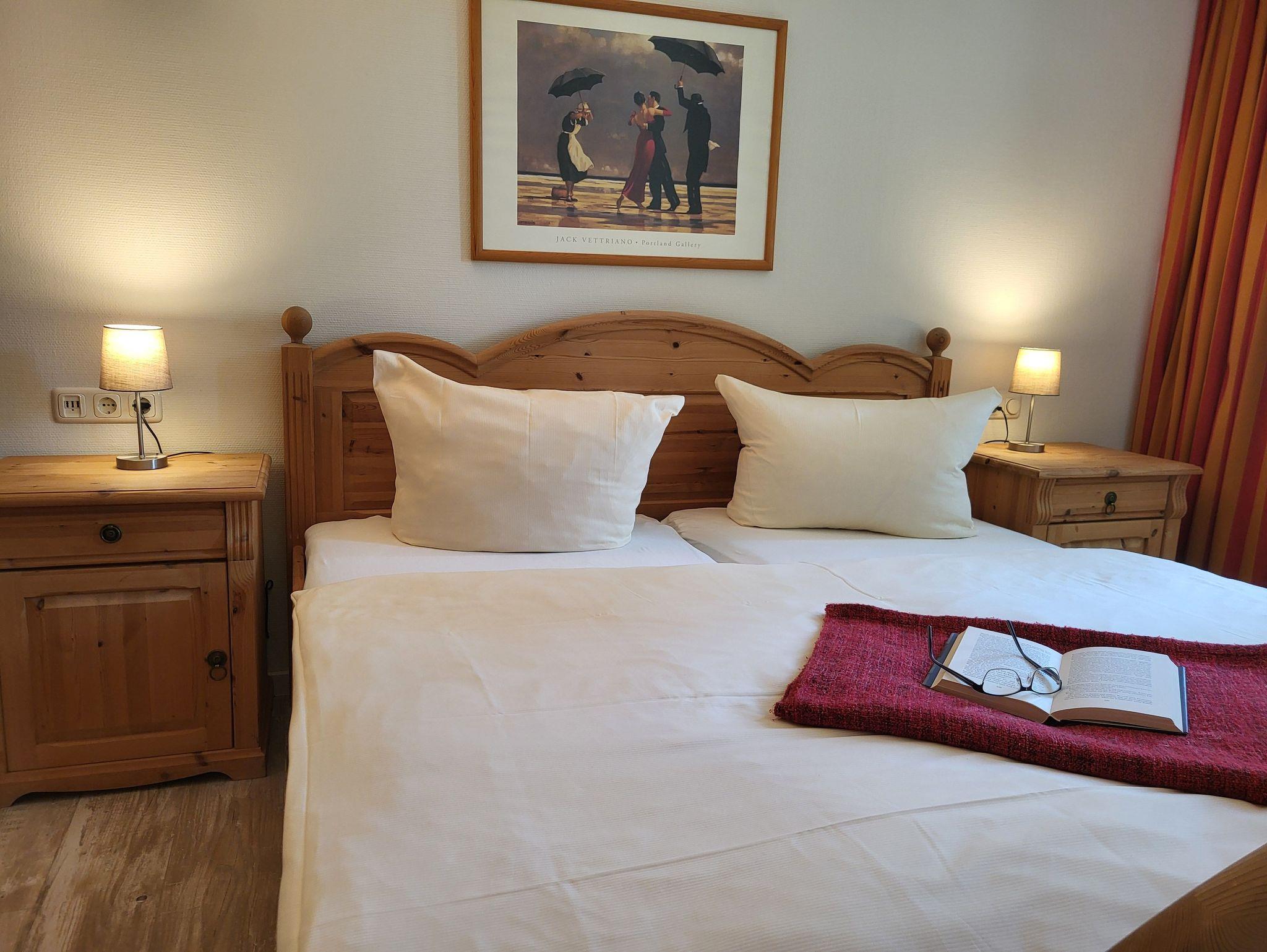 Die separate Küche ist mit einer Einbauküche mit Mikrowelle, Geschirrspüler, großzügiger Kühl- und Gefrierkombination und einem Herd mit Backofen ausgestattet, sodass der Zubereitung leckerer Mahlzeiten nichts im Wege steht. Kostenloses WLAN steht selbstverständlich auch bereit. Die Wohnung wird inklusive Bettwäsche übergeben. Handtücher können in der Zimmervermittlung für 7,00 pro Person (1 Badetuch, 1 Handtuch) dazugebucht werden.