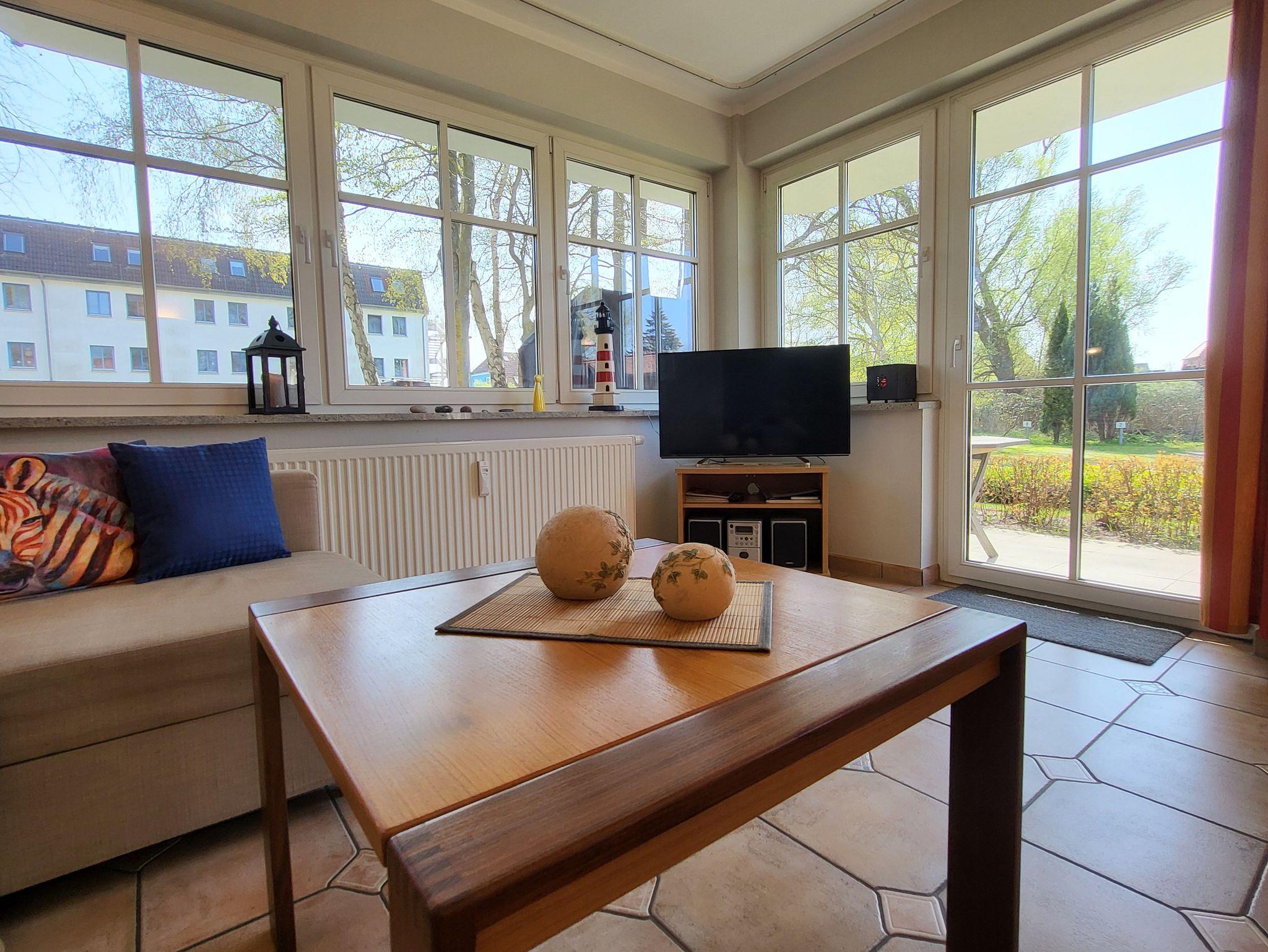 in unserer geräumigen Wohnung mit mediterranem Flair im Ostseebad Wustrow. Von hier haben Sie es nur 400 m zum Strand und zur Seebrücke und wohnen gleichzeitig ruhig, komfortabel und modern mit eigener Terrasse und PKW-Stellplatz. Die 81qm große Wohnung mit Terrasse ist mit 2 getrennten Schlafzimmern und einem großzügigen Tageslichtbad mit Badewanne und Waschmaschine sehr komfortabel ausgestattet. Im Elternschlafzimmer befindet sich ein Doppelbett 180 x 200 cm (mit hochwertigen, getrennten Matratzen) und ein Schrank mit viel Stauraum. Im zweiten Schlafzimmer befindet sich eine bequeme Schlafcouch, ein geräumiger Schrank, ein Schreibtisch und ein TV. Das offene, lichtdurchflutet Wohnzimmer ist ausgestattet mit Smart-TV, einer Eckcouch und einem Essplatz. Die 25 qm große Winkelterrasse mit Zugang vom Wohnzimmer liegt günstig in Südwest-Richtung, ist ausgestattet mit Gartenmöbeln und einem Strandkorb und lädt zum Frühstück, Sonnenbad oder Tagesausklang ein.