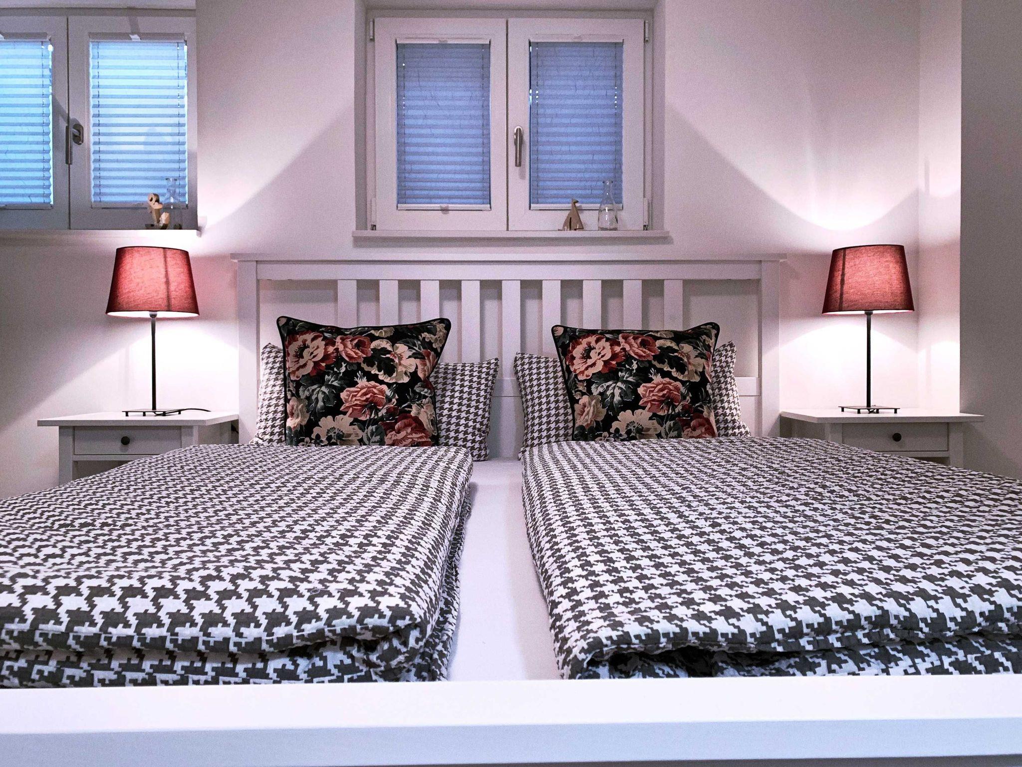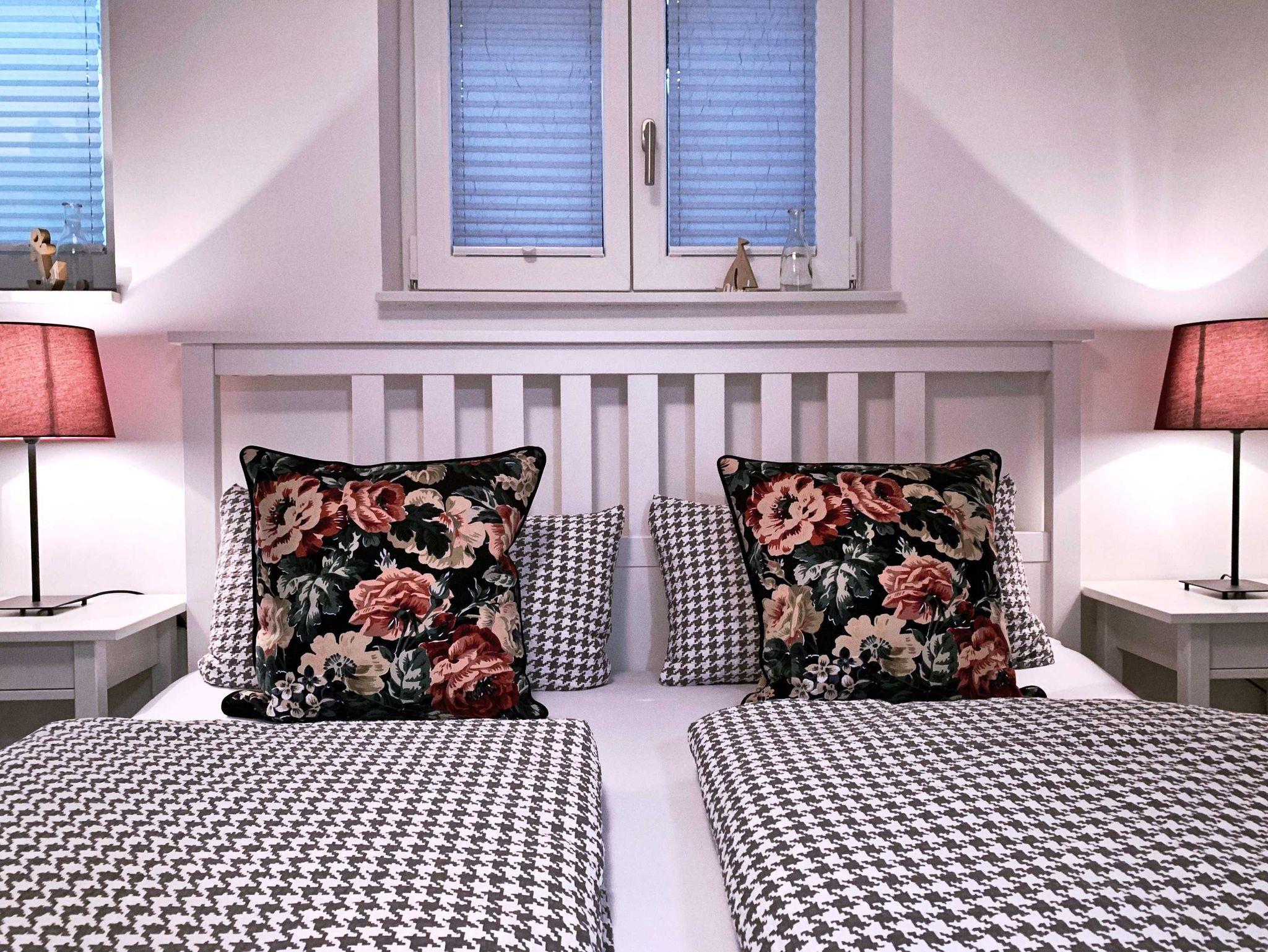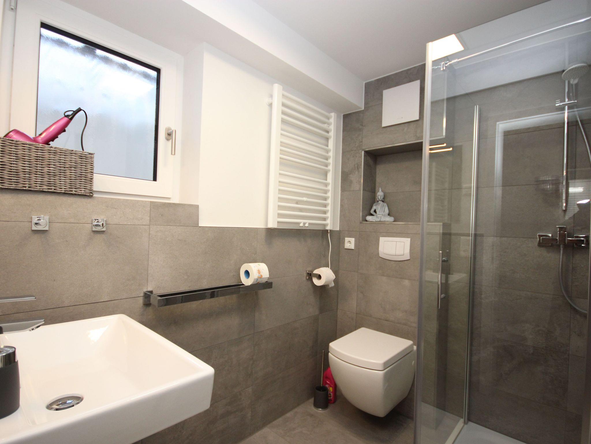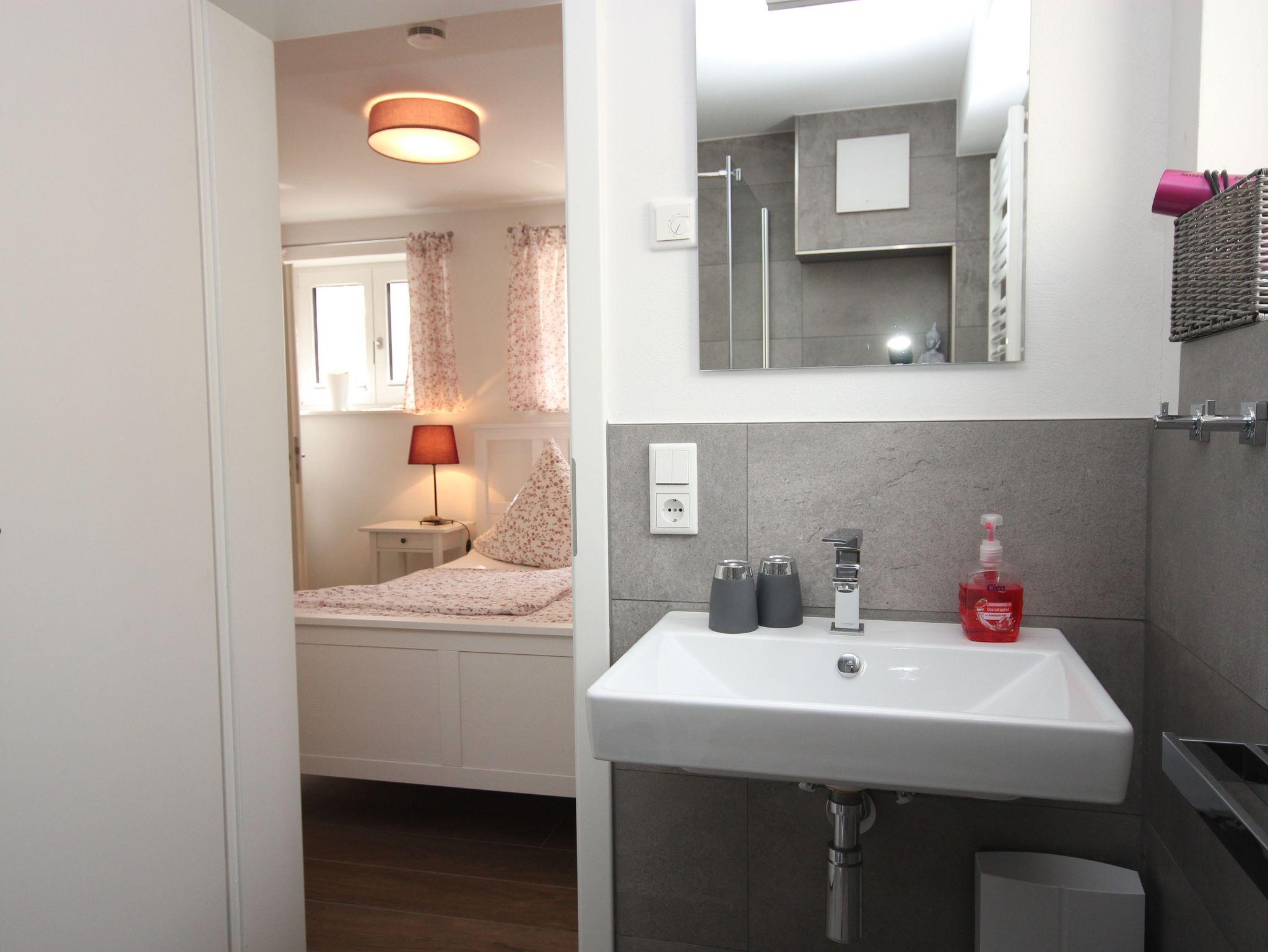 Das Bad, mit der ebenerdiger Dusche sowie Haarföhn, runden die Einrichtung ab.