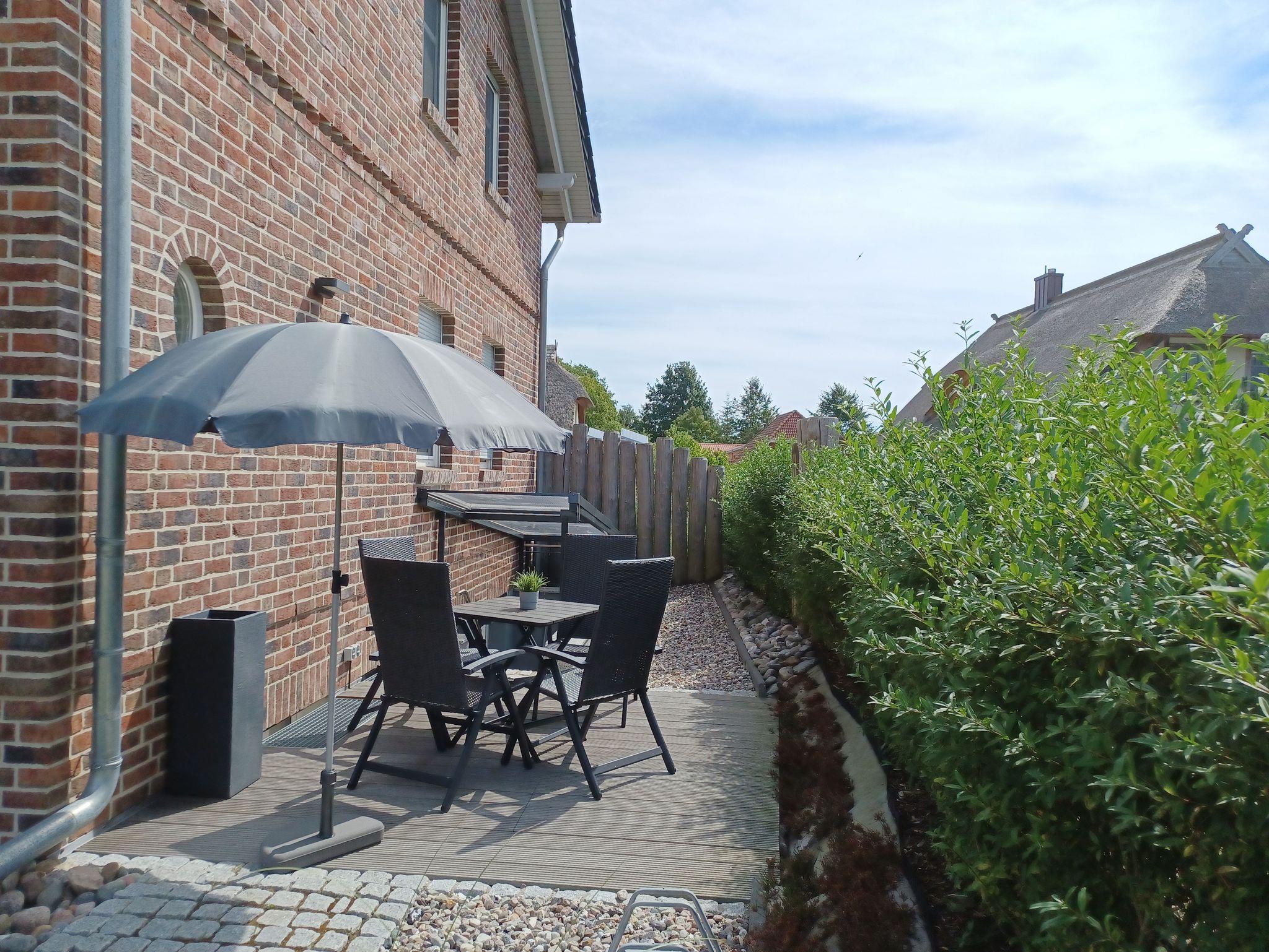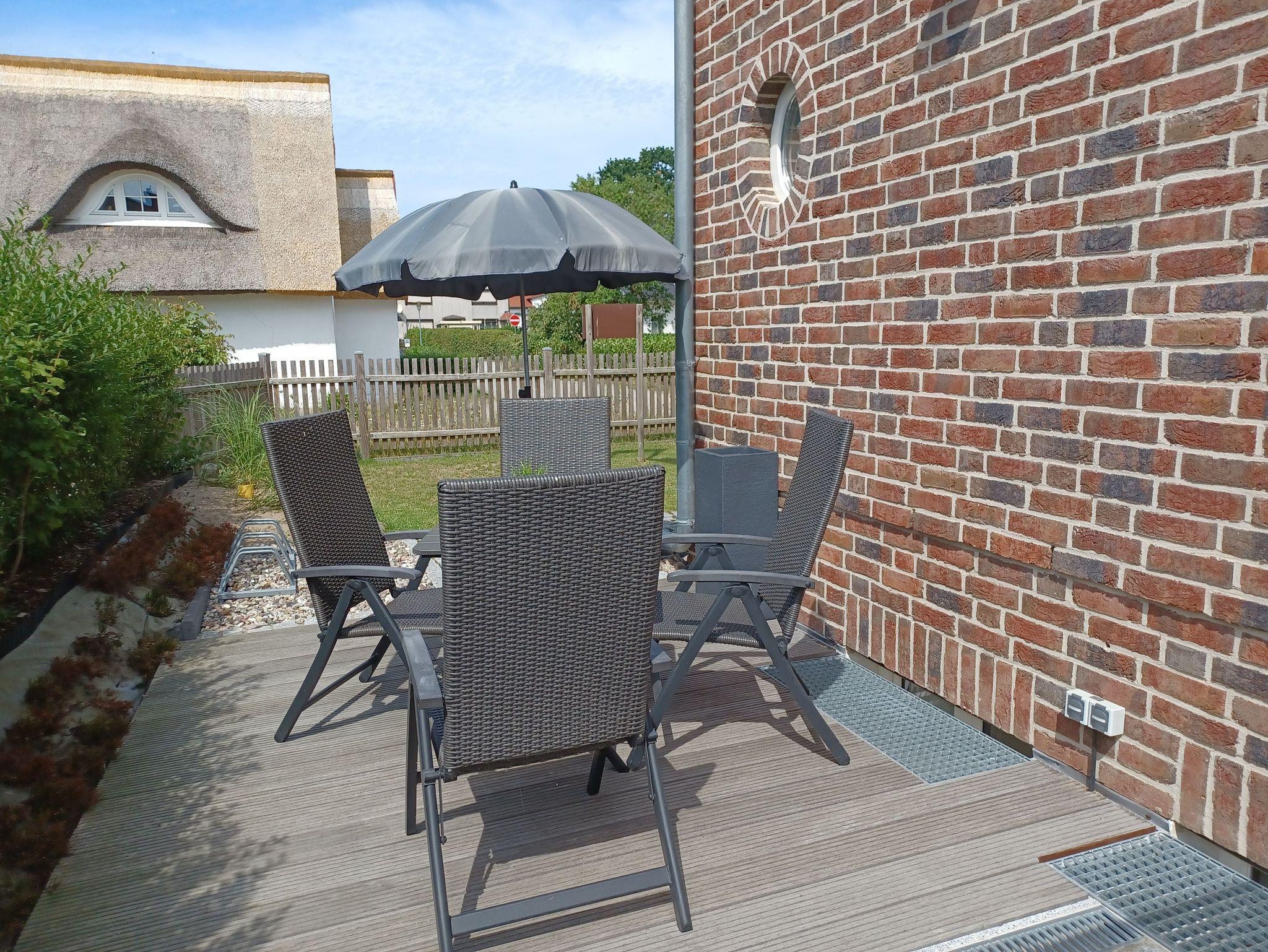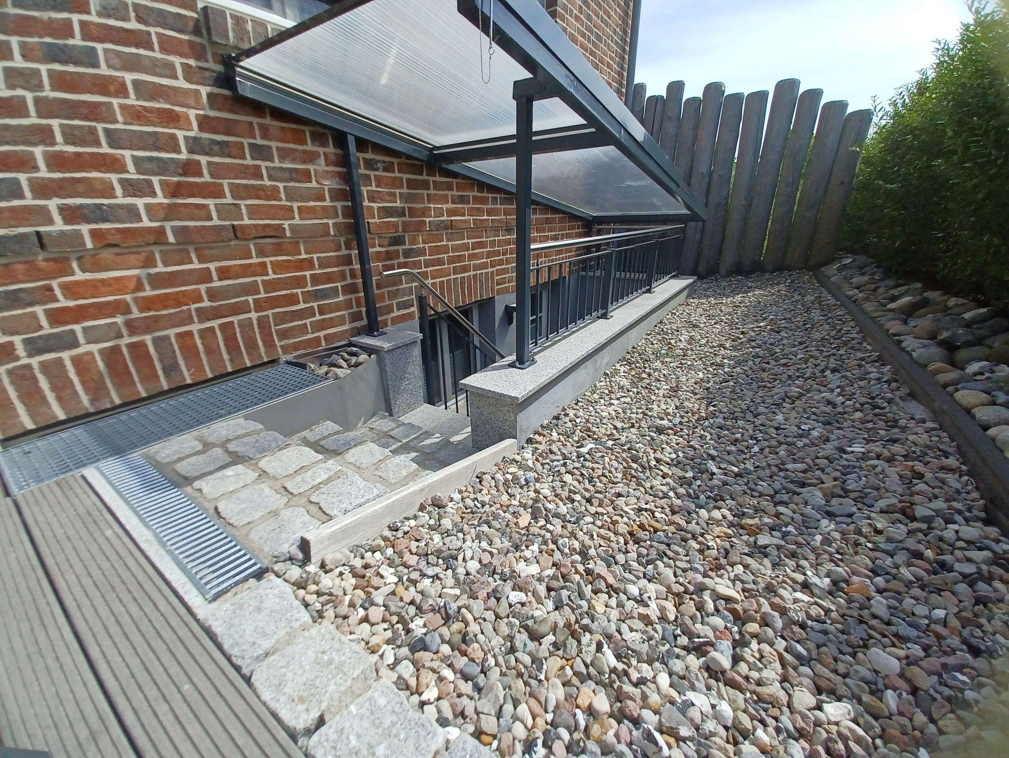 Die Ferienwohnung befindet sich im Souterain. Die mit Gartenmöbeln ausgestattete Terrasse ist über einen separaten Zugang erreichbar.
