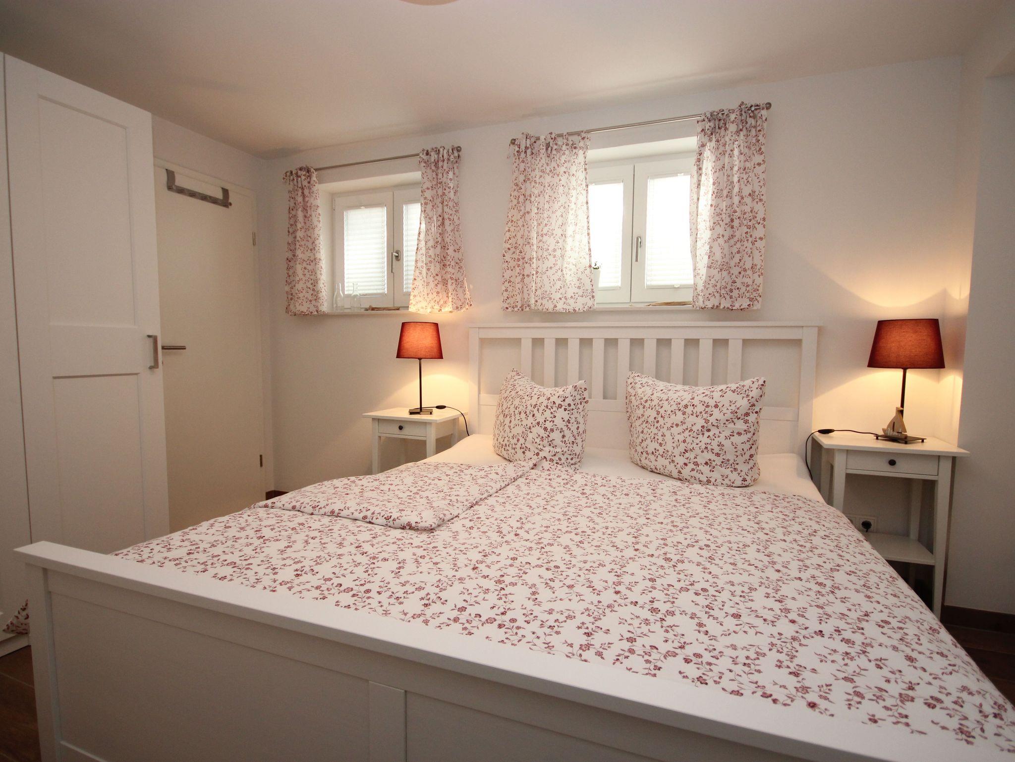 Der Schlafraum besitzt ein Doppelbett (1,60 x 2,00 m) mit getrennten Matratzen und einem Topper sowie einem Kleiderschrank mit genügend Stauraum.