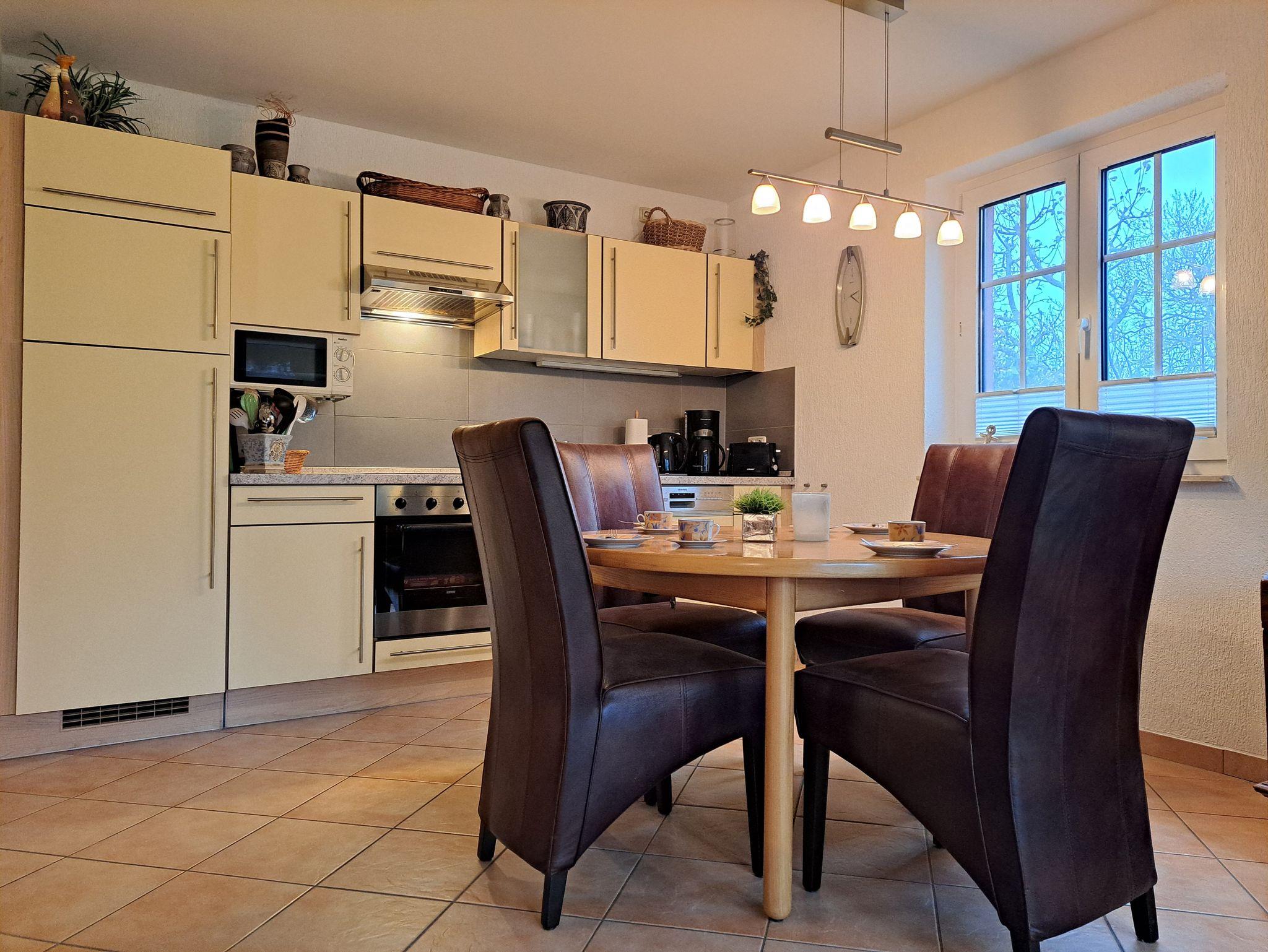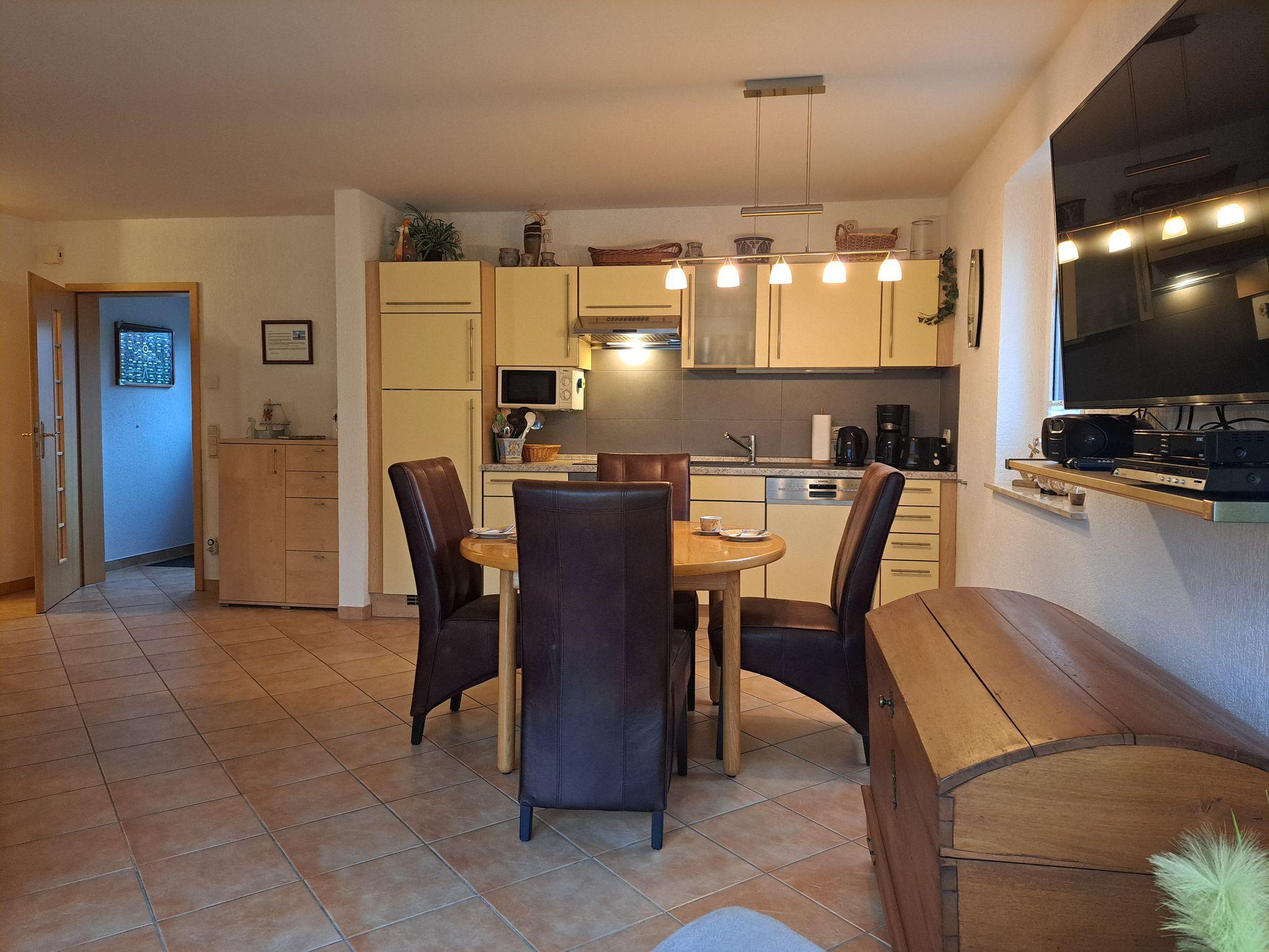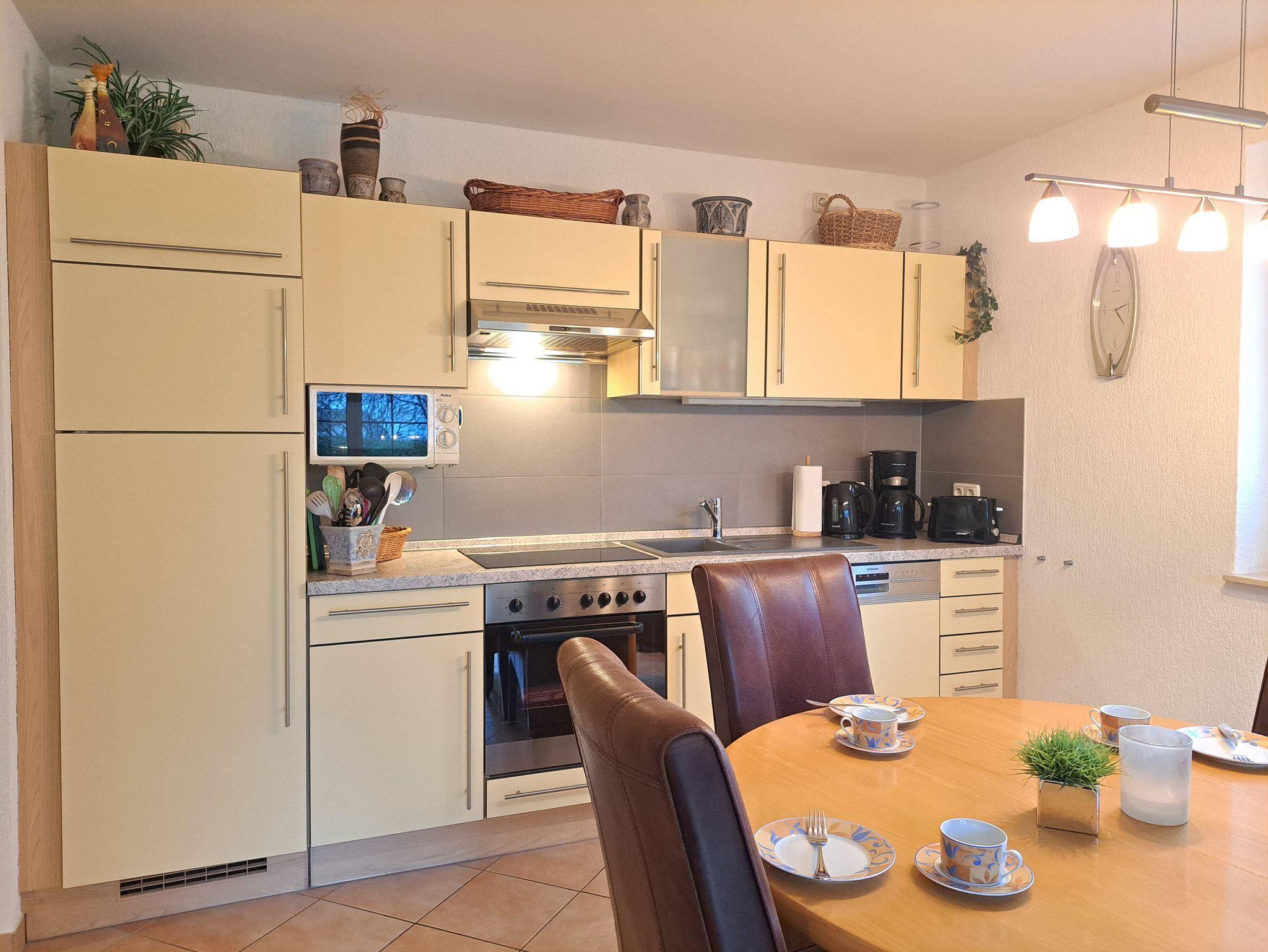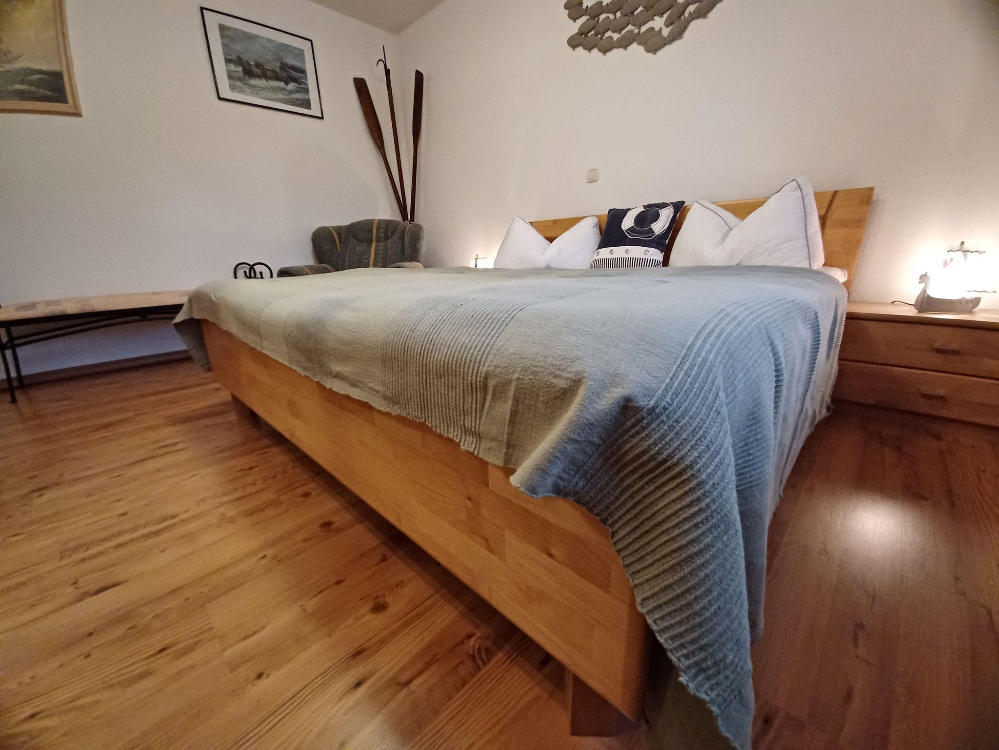 Die Wohnung wurde mit viel Liebe zum Detail von den Vermietern eingerichtet. Das Wohnzimmer verfügt über eine gemütliche Couch, Radio, und SAT- TV, diese sind USB fähig. Der Kaminofen im Wohnbereich verbreitet an etwas kälteren Tagen eine wohlige Wärme und verströmt ein flauschiges Ambiente (Starterpaket Kaminholz nicht vorhanden). Im Schlafzimmer befindet sich ein Doppelbett 1,80 x 2,00 cm (mit getrennten Matratzen) und viel Stauraum. Im 2. Schlafzimmer befinden sich 2 Einzelbetten 0,90 x 2,00 m . Auch bei der Küchenausstattung wurde auf jedes Detail