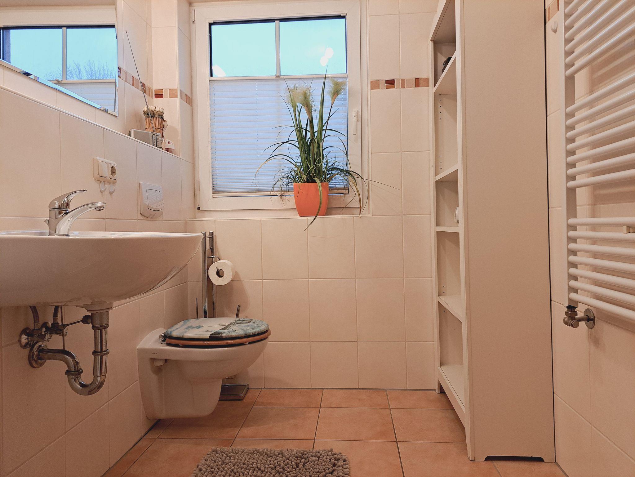 geachtet, damit die Gäste sich rundum Wohlfühlen können. Zur Ausstattung gehören alle notwendigen Küchenutensilien und laden mit dem großzügigen Essplatz zum gemeinsamen kochen ein. Die Küchenzeile wurde mit Kaffeemaschine, Wasserkocher, Kühlschrank mit Gefrierfach, Mikrowelle, Geschirrspüler und Herd mit Cerankochfeld sowie einem Backofen ausgestattet. Das Badezimmer wurde mit einer Dusche und Fön ausgestattet. Einige Räume der Ferienwohnung sind mit Fliegengasen ausgestattet. Die Wohnung ist eine Nichtraucherwohnung. Für unsere Gäste steht ein kostenloser WLAN