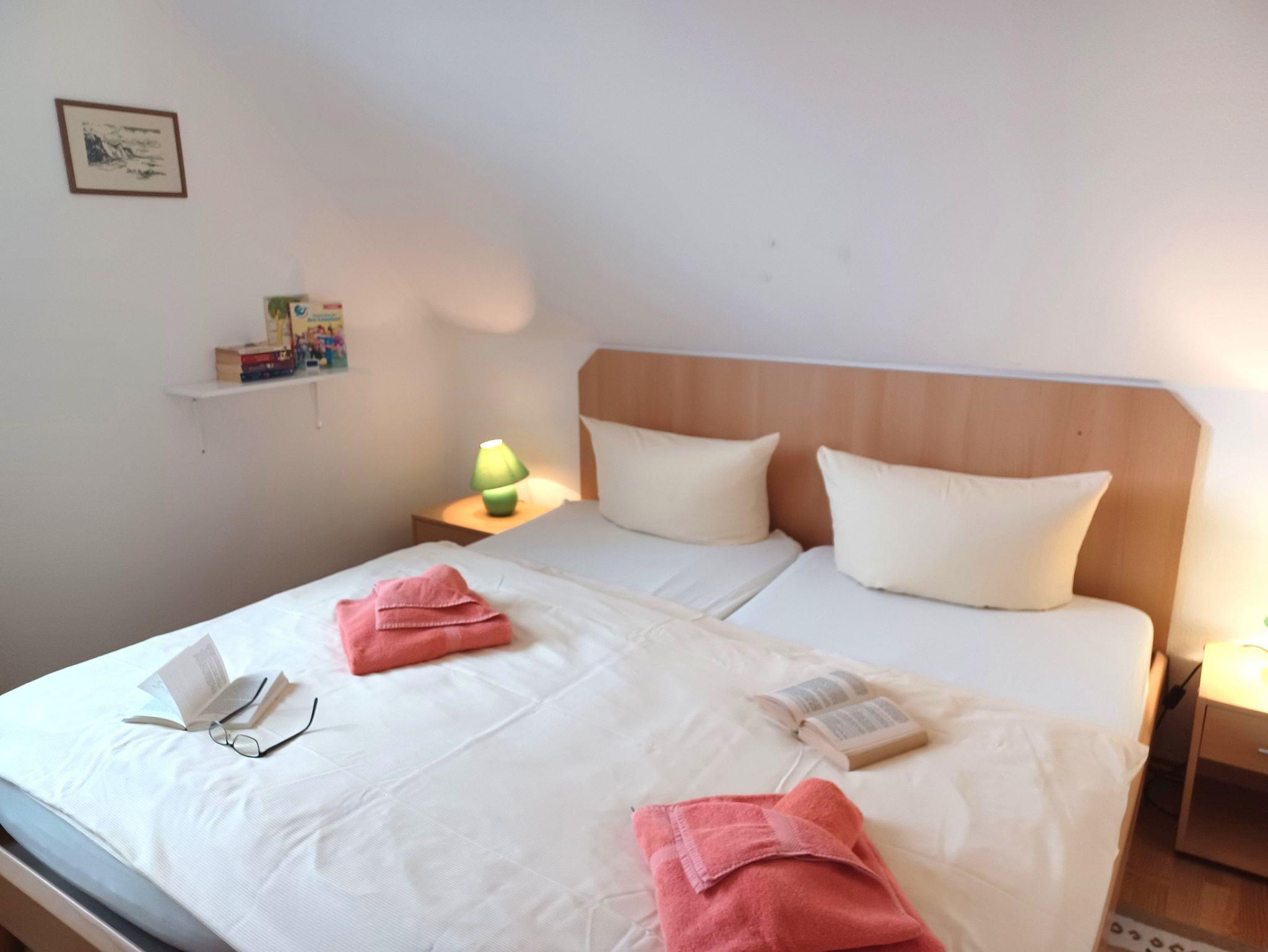 Das Ferienhaus am Meer ist eine Doppelhaushälfte mit 2 komfortablen Ferienwohnungen über 2 Etagen. Die Ferienwohnung Steuerbord ist im Erdgeschoss, ausgestattet mit einem großzügigen Wohnraum inclusive einer bequemen Couch, SAT- TV und direktem Zugang zur Terrasse und dem Garten. Die offene Küchenzeile ist ausgestattet mit einer Mikrowelle und Geschirrspüler , mit Essplatz und im separaten Raum steht ein Gefrierwürfel zur Nutzung bereit. Das Gäste/WC befindet sich ebenfalls im Erdgeschoss. Im Obergeschoss stehen Ihnen 2 Schlafzimmer mit Doppelbett 1,80 x 2,00 m ( getrennte Matratzen ), sowie ein Bad mit Dusche/WC zur Verfügung. Die Ferienwohnung wird mit Handtüchern und Bettwäsche ausgestattet übergeben. Für unsere kleinen Gäste können kostenlos Kinderbett und Kinderhochstuhl genutzt werden.