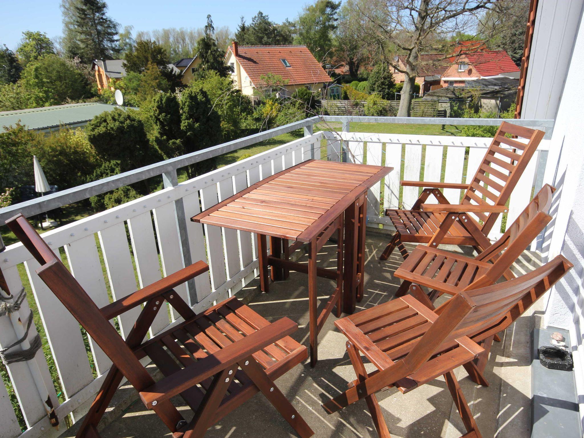 Der Süd- West- Balkon lädt zum Verweilen mit einem Strandkorb und Balkonmöbeln ein. Zur Ferienwohnung gehört der Parkplatz Nr. 6. Fahrräder können im Schuppen Nr. 6 abgestellt werden.