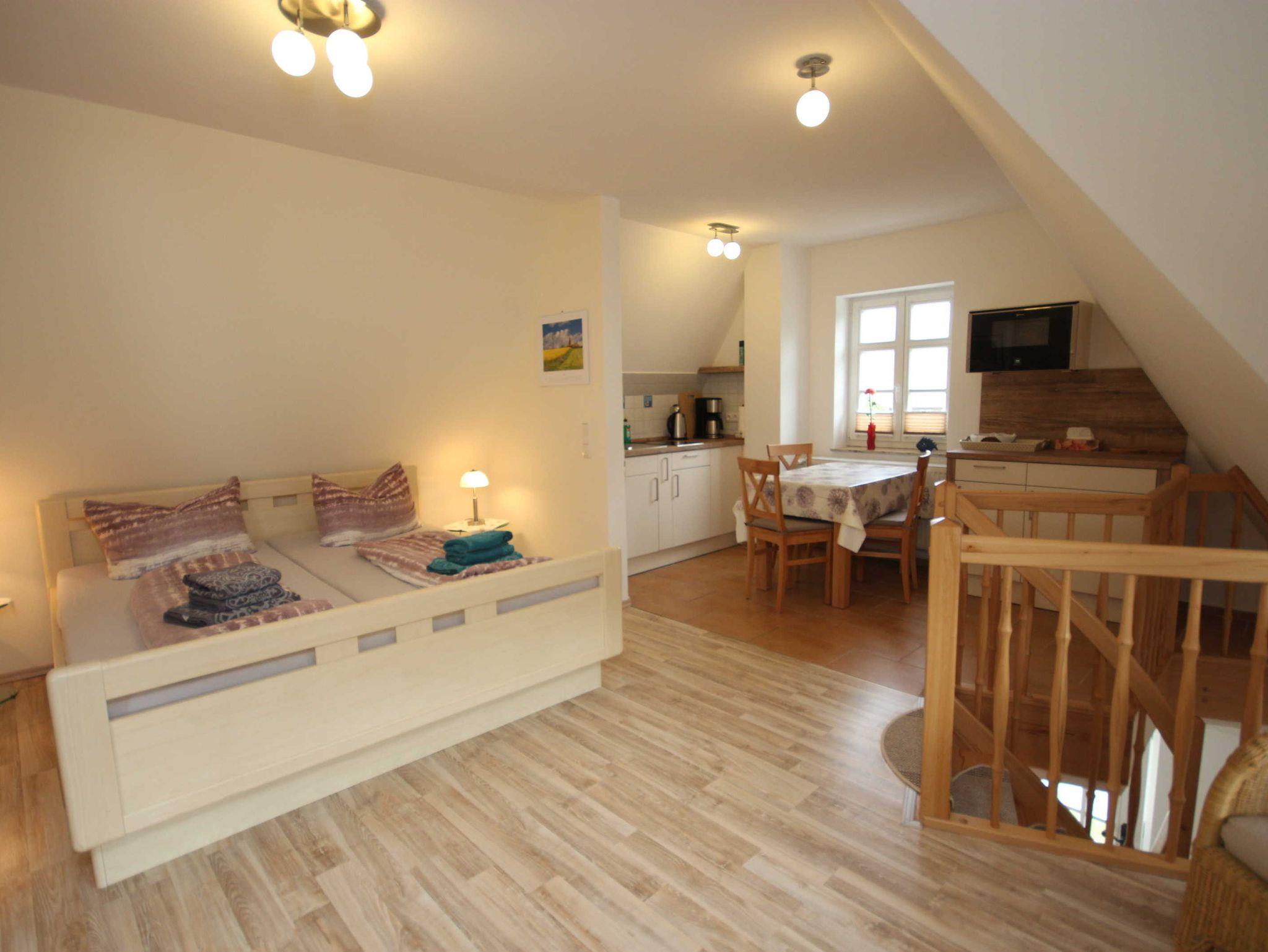 das kleine und mit viel liebe zum Detail eingerichtete Appartement unterm Rohrdach,liegt in der Neuen Straße mit seinen alten Büdnereien. Das Appartement liegt in ruhiger und zentraler Lage im alten Ortskern. Im Aussenbereich liegt eine kleine Terrasse und lädt zum Beisammensein ein. Fußläufig in ca. 15 Gehminuten erreicht man den feinsandigen Ostseestrand und ca. in 5 min den Wustrower Hafen. Für Ihren Urlaub steht Ihnen ein Wohn- Schlafraum mit einer kleinen gemütlichen Sitzecke und SAT-TV und einem kostenlosen WLAN-Zugang, sowie einem Doppelbett 1,80 x 2,00 cm (mit getrennten Matratzen) bereit. In der kleinen Küchenzeile mit 2- Platten Cerankochfeld , Mikrowelle und dem Essplatz, finden Sie alle notwendigen Küchenutensilien.Das Badezimmer wurde mit einer Dusche ausgestattet.Die Wohnung wird mit Bettwäsche und Handtücher (jeweils pro Person 1 Badehandtuch und ein kleines Handtuch) übergeben.Das Rauchen ist nicht gestattet.Ein Parkplatz für Ihr Auto befindet sich direkt auf dem Grundstück. Zur Ausstattung gehören auch Fliegengitter.