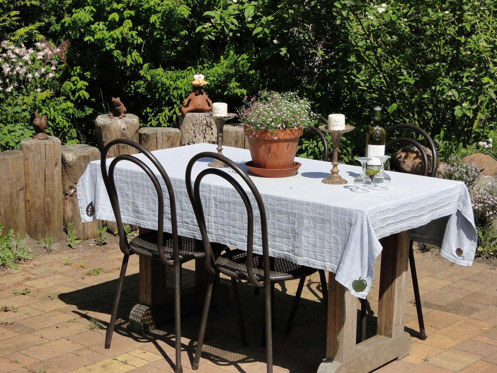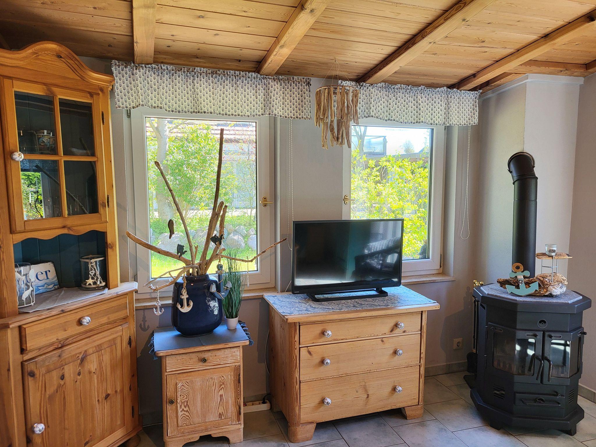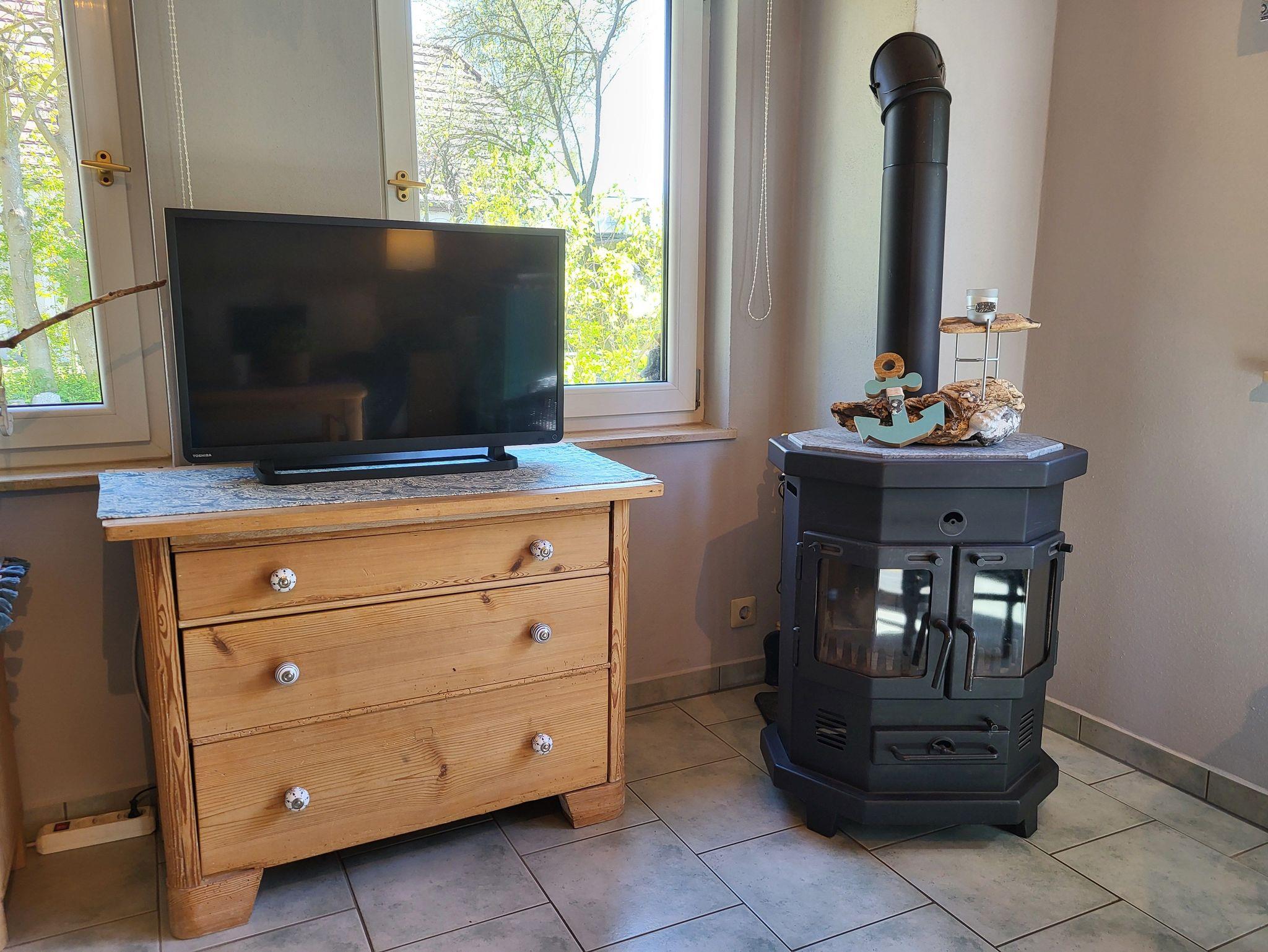 individuell und mit Liebe zum Detail eingerichtete Ferienwohnung im Erdgeschoss und separatem Eingang. Der gemütlich eingerichtete Wohnbereich mit Zugang zur Süderseitgen Terrasse, lädt zum erholen und entspannen ein. Gern können Sie auch im Garten (ca. 200 qm) sich einen gemütlichen und versteckten Platz suchen. Der offene Wohnbereich ist ausgestattet mit einer Couch und einem Kaminofen ( ein Starterpaket steht bereit), daran schließt sich die offene komplett ausgestattete Küchenzeile mit ausreichend Geschirr und umfangreicher Ausstattung an.Das Schlafzimmer ist ausgestattet mit Doppelbett (1,40 x 2,00 m) und das Kinderzimmer mit 1 Einzelbett (0,90 x 1,90 m). Im Bad befindet sich eine Dusche/WC.Die Wohnung wir mit Bettwäsche und Handtücher übergeben. Der Parkplatz befindet sich auf dem Grundstück. Alle Wohnungen sind Nichtraucherwohnungen.