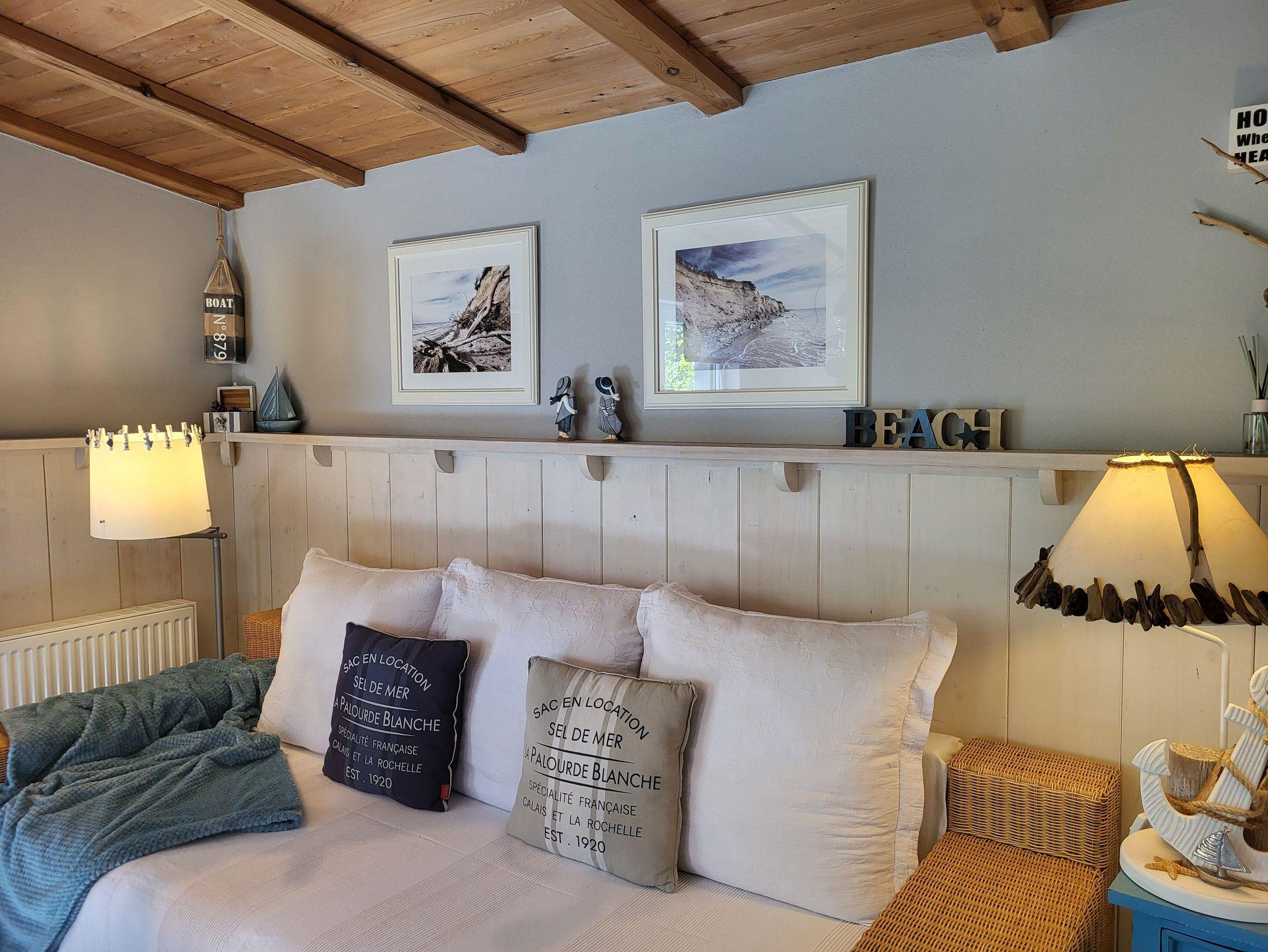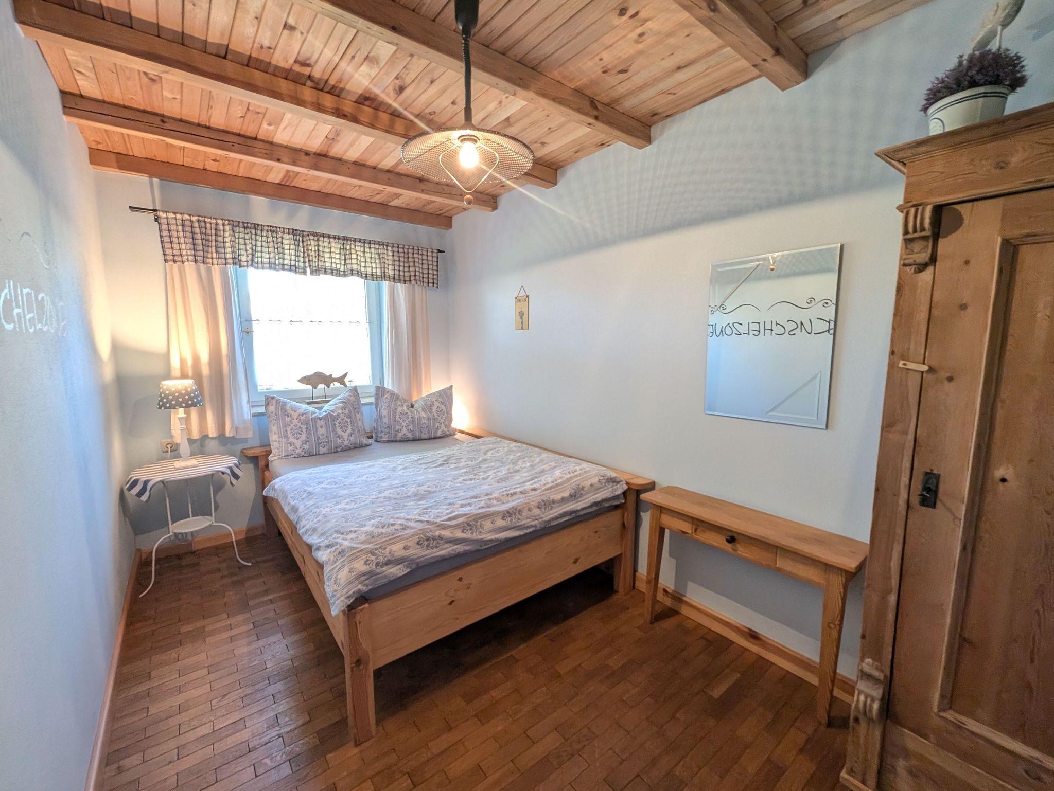 individuell und mit Liebe zum Detail eingerichtete Ferienwohnung im Erdgeschoss und separatem Eingang. Der gemütlich eingerichtete Wohnbereich mit Zugang zur Süderseitgen Terrasse, lädt zum erholen und entspannen ein. Gern können Sie auch im Garten (ca. 200 qm) sich einen gemütlichen und versteckten Platz suchen. Der offene Wohnbereich ist ausgestattet mit einer Couch und einem Kaminofen ( ein Starterpaket steht bereit), daran schließt sich die offene komplett ausgestattete Küchenzeile mit ausreichend Geschirr und umfangreicher Ausstattung an.Das Schlafzimmer ist ausgestattet mit Doppelbett (1,40 x 2,00 m) und das Kinderzimmer mit 1 Einzelbett (0,90 x 1,90 m). Im Bad befindet sich eine Dusche/WC.Die Wohnung wir mit Bettwäsche und Handtücher übergeben. Der Parkplatz befindet sich auf dem Grundstück.Alle Wohnungen sind Nichtraucherwohnungen. Haustiere sind nicht erlaubt.