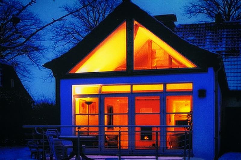 Charakteristisch ist der wunderschöne Blick durch die große Fensterfront über die Terrasse hinweg in den altgewachsenen Garten.