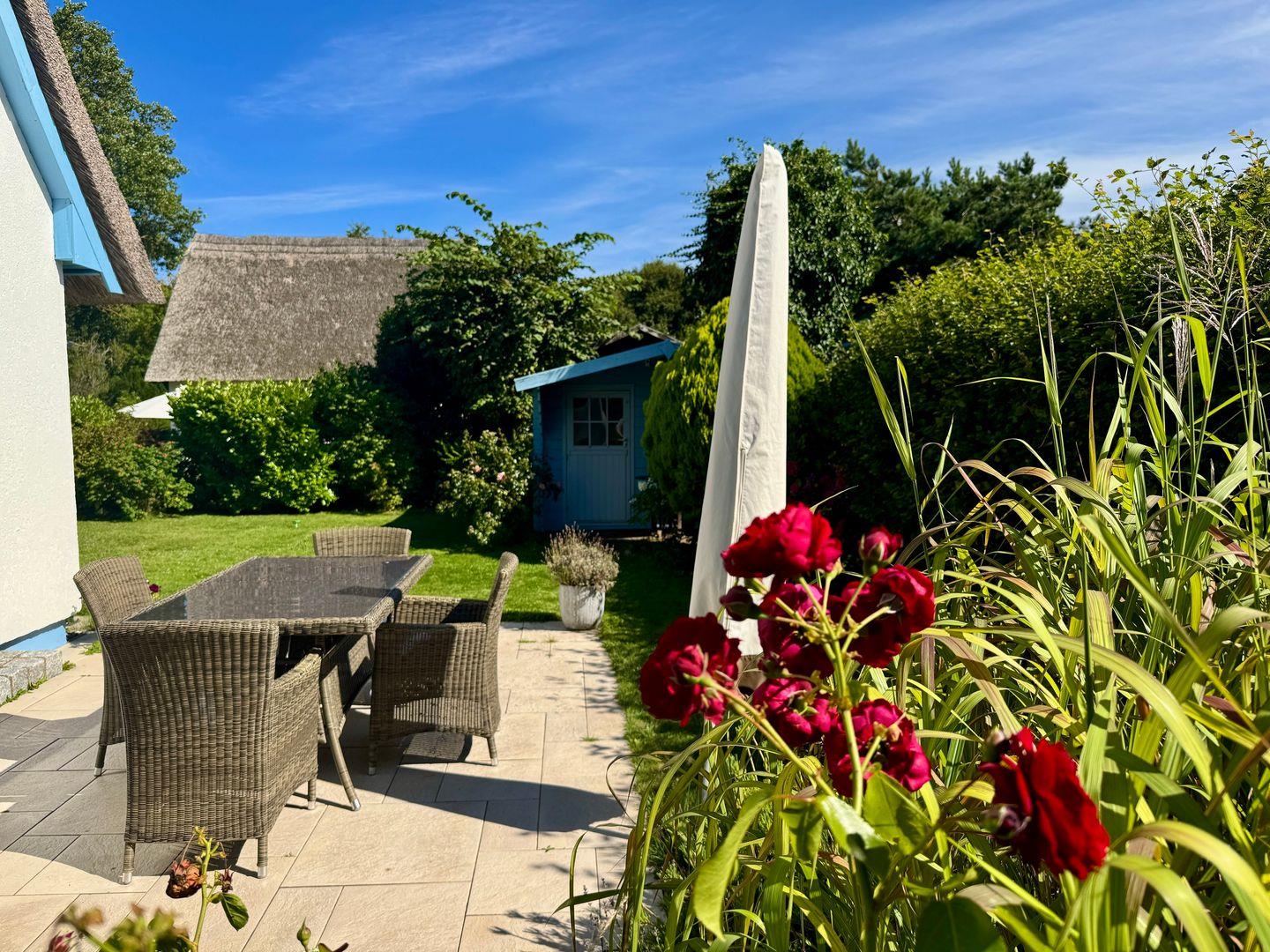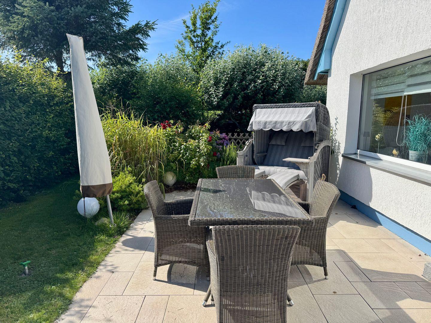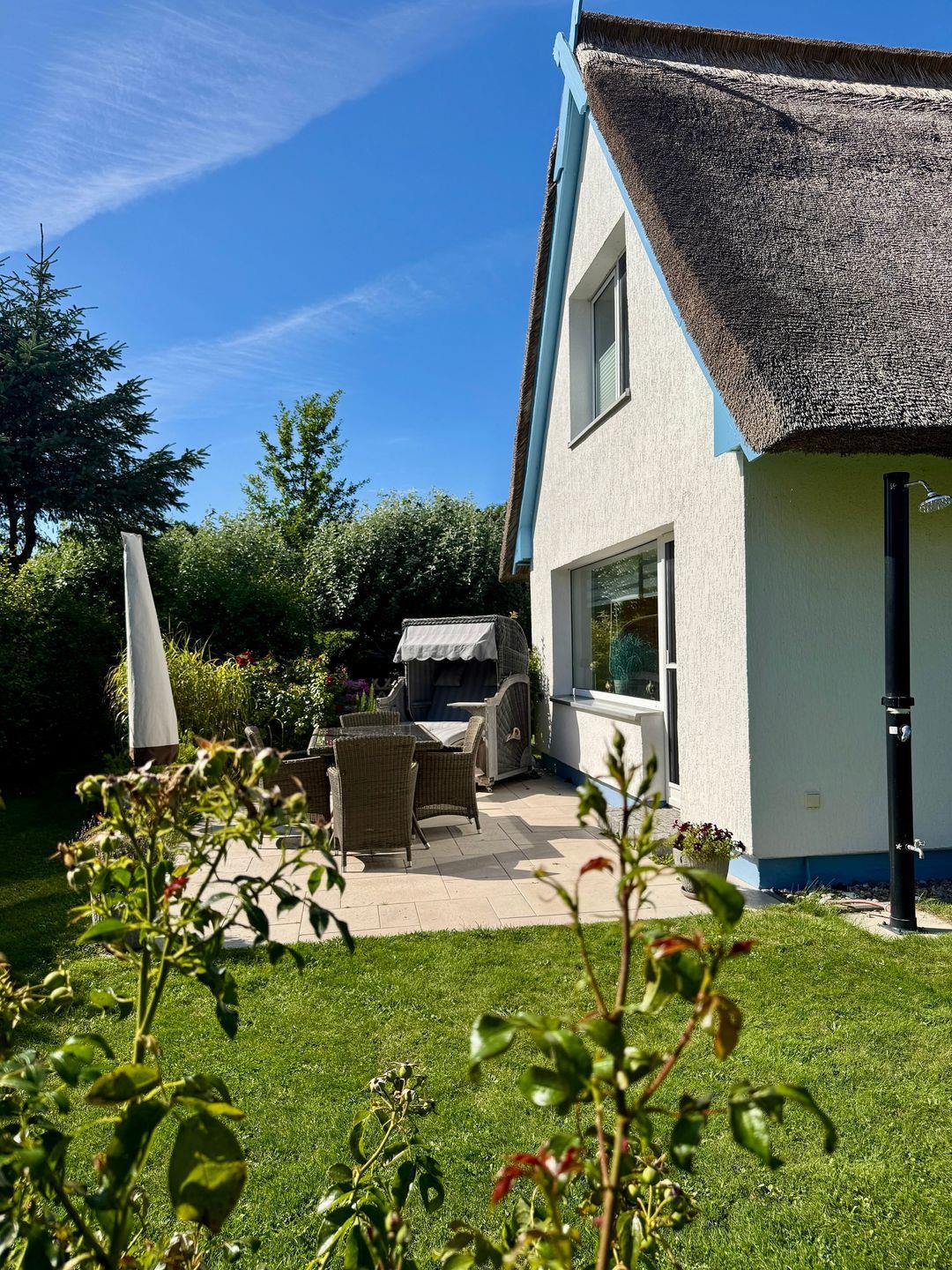 Willkommen im reetgedeckten Strandhaus "Dünenwind" mit seinen 3 Zimmern auf 58qm! Diese traumhafte Unterkunft heißt Sie direkt hinter dem Deich herzlich willkommen und lässt Ihr Herz höher schlagen. Stellen Sie sich vor, wie Sie den Wohn- und Essbereich betreten und der herrliche Blick in den Garten Sie sofort verzaubert. Die Vorstellung von gemeinsamen Stunden mit Ihrer Familie in diesem wunderschönen Raum lässt Ihr Herz vor Freude hüpfen. Die gut ausgestattete Küche mit ihrem Geschirrspüler, der Filterkaffeemaschine, der Nespresso Kapselmaschine, dem Toaster und dem Wasserkocher lässt keine Wünsche offen. Sie können sich hier voll und ganz auf das Kochen und Genießen konzentrieren. Das Bad ist mit Tageslicht durchflutet und verfügt über eine erfrischende Dusche, die Sie nach einem langen Tag am Strand oder beim Radfahren wieder auf die Beine bringt. Auch können Sie die Gartendusche im Außenbereich nutzen. Aber das ist noch nicht alles! In der oberen Etage erwartet Sie ein Hauptschlafzimmer mit einem Doppelbett und einem Insektenschutz, der Ihnen einen erholsamen Schlaf garantiert. Das 2. Zimmer bietet eine hochwertige ausziehbare Schlafcouch zum Träumen und ein Bürotisch für Arbeiten per High-Speed ein. Der große Garten mit seiner Terrasse und dem Strandkorb ist der perfekte Ort, um zu entspannen und die Seele baumeln zu lassen. Sie können den Tag mit einem gemütlichen Frühstück auf der Terrasse beginnen und am Abend bei Kerzenschein und gemeinsamem Essen ausklingen lassen. Und das Beste? Sie können Ihre Fahrräder direkt auf dem eigenen Grundstück abstellen und haben auch einen Parkplatz direkt auf dem Grundstück. Dieses Ferienhäuschen bietet Platz für 2-3 Personen auf zwei Ebenen und verspricht Ihnen das ganze Jahr über einen einzigartigen Ostseeurlaub. Worauf warten Sie noch? Buchen Sie jetzt und erleben Sie einen unvergesslichen Aufenthalt im Strandhaus "Dünenwind"!