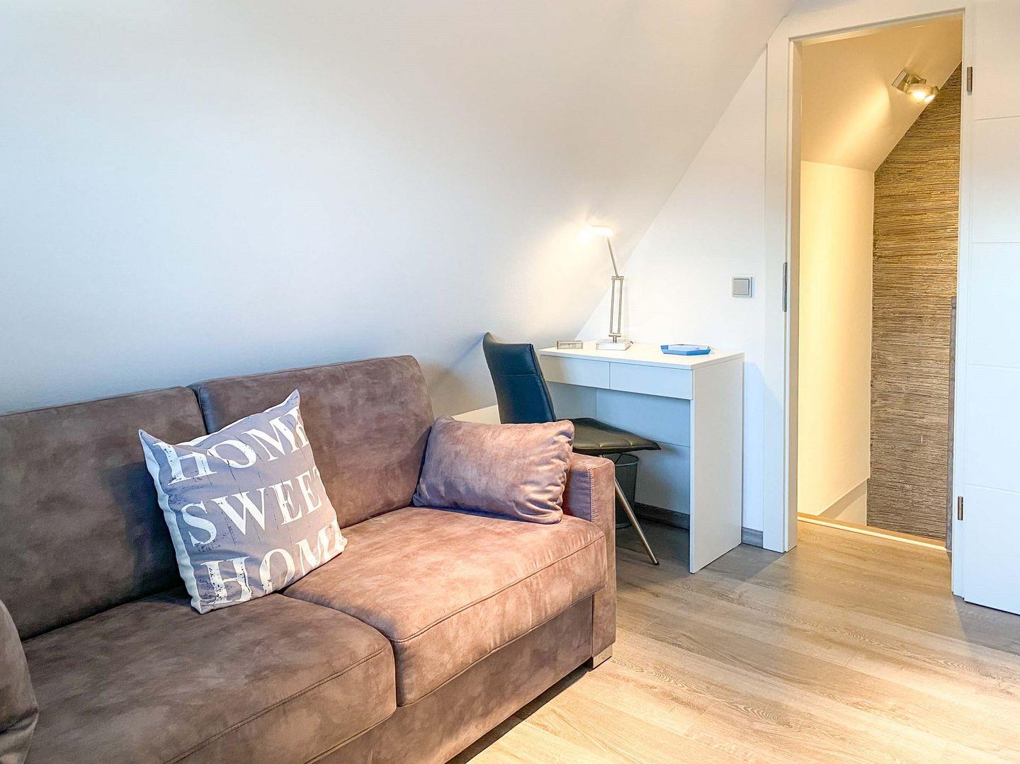 Die Doppelhaushälfte verfügt über insgesamt 4 komfortable Schlafzimmer, die mit hochwertigen Bettwäsche ausgestattet sind und für erholsame Nächte sorgen. In der modernen und vollständig ausgestatteten Kochnische können Sie Ihre Lieblingsgerichte zubereiten und diese in geselliger Runde am großen Esstisch genießen. Der gemütliche Wohnbereich lädt zum Entspannen ein – lassen Sie den Tag bei einem Filmabend auf dem Fernseher oder einem gemeinsamen Spiel an der Spielekonsole ausklingen.
