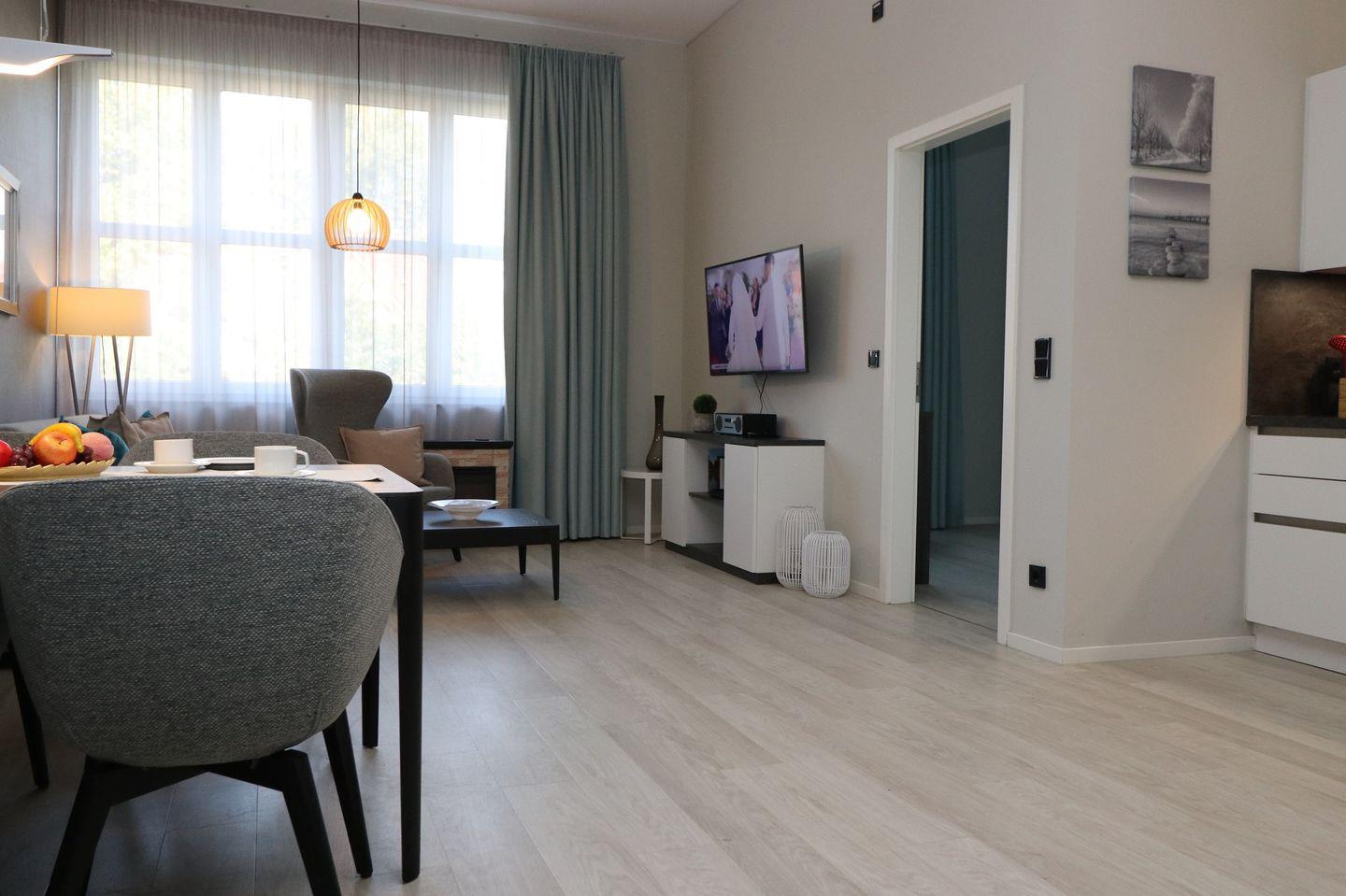 Dort begrüßt Sie als erstes die offene NOLTE-Einbauküche mit Einbau-Elektrogeräte, wie einen Induktionsherd, einen Backofen, einen Geschirrspüler, einen Kühlschrank mit Gefrierkombination und eine Mikrowelle. Mit zahlreichem Koch-Zubehör ist die Küche perfekt zum zaubern kulinarischer Genüsse ausgestattet. Der Wohnbereich ist mit einem Couchtisch, zwei bequemen Sesseln und einem gemütlichen Sofa ausgestattet, welches bei Bedarf auch zur Aufbettung für 2 Personen dient. Zur medialen Unterhaltung finden Sie hier einen Flachbild-TV und kostenfreies WLAN. Gern können zwei weitere Gäste auf der Schlafcouch ( 180 cm x 200 cm) übernachten. Das helle Schlafzimmer erwartet Sie mit einem bequemen Boxspringbett. Auch hier befindet sich ein Flachbild- TV (32 Zoll), sowie Verdunklungsgardinen und ein Insektenschutz für eine angenehme Nachtruhe. Das Ensuite-Badezimmer überzeugt durch eine ebenerdige Dusche. Ein Kosmetikspiegel sowie ein Föhn müssen Sie in der Ausstattung des Bads ebenfalls nicht vermissen.