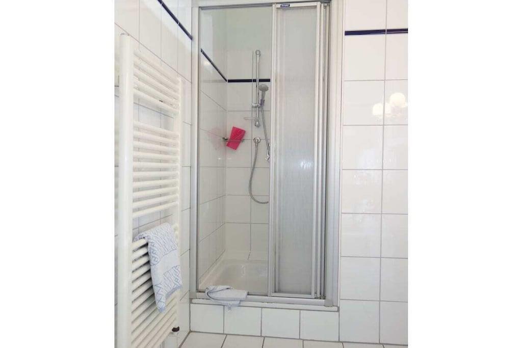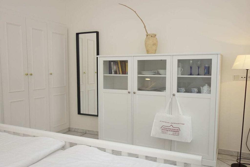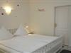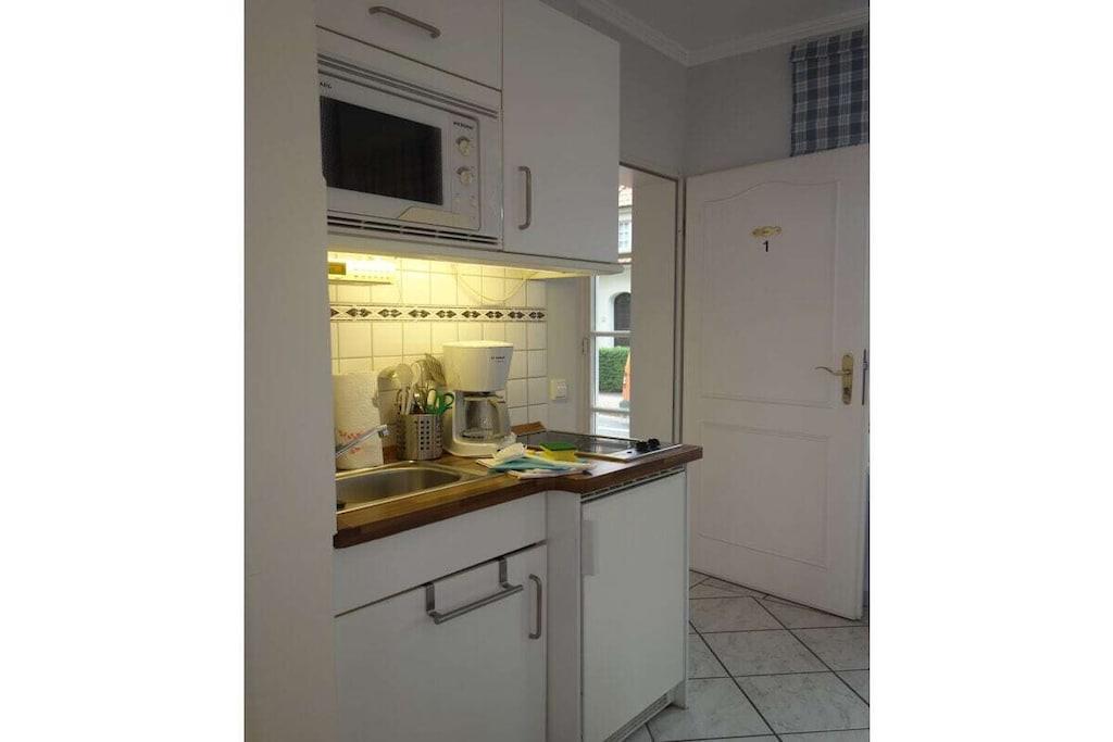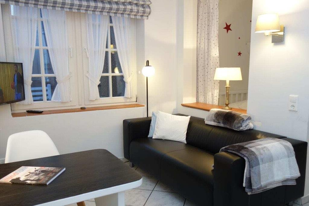 Quietly situated in the heart of our small town of Wyk, you'll find our house, Hallig Hooge, which houses a total of seven apartments, each accommodating two people. Small but perfectly formed, the Gröde apartment is located at the front of the house. Gröde is a spacious one-room apartment with a living area, a small kitchenette, and a separate sleeping area with access to a roomy shower room. The built-in wardrobe offers ample space for your belongings.