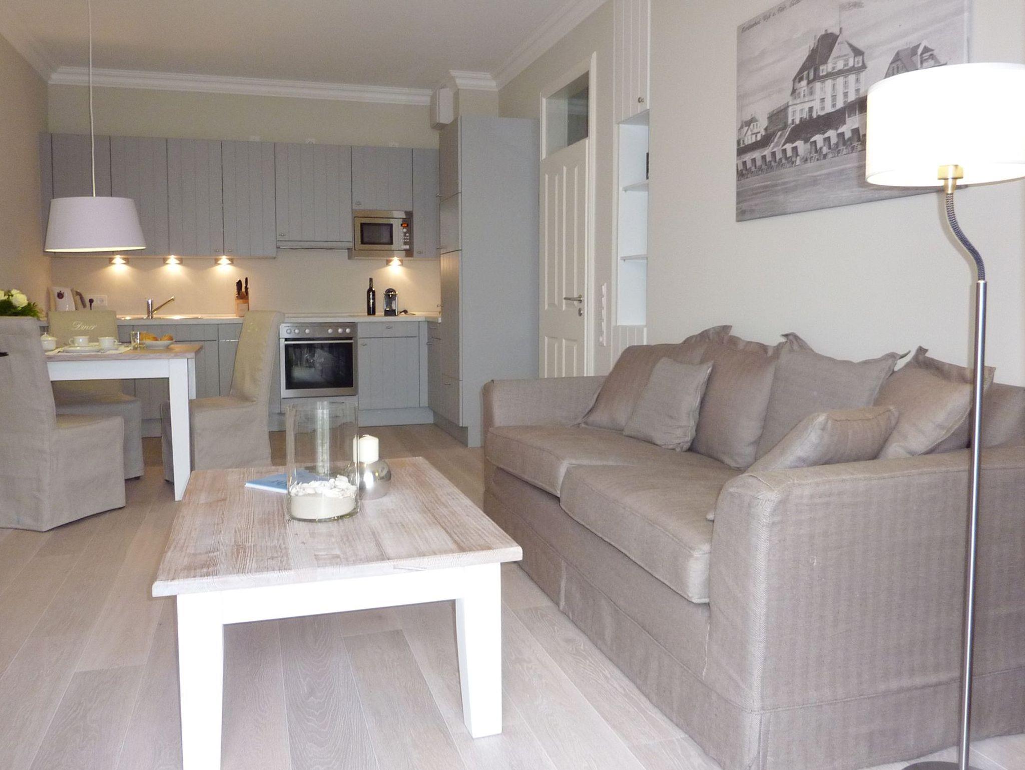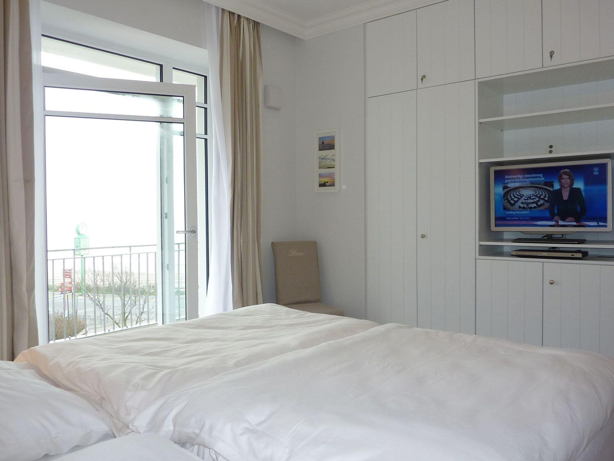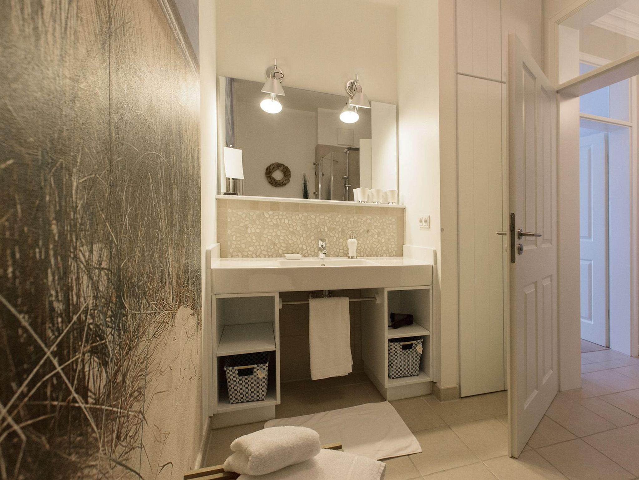Diese exklusive Wohnung liegt im 2. OG hinter historischer Fassade, die beim Neubau erhalten geblieben ist. Sie bietet vom Wohn-, Schlaf- und Essbereich einen wunderschönem Blick auf den Strand, die Nordsee und die Halligen. Die helle 2-Zimmerwohnung ist u.a. mit hochwertigen Einbauschränken, moderner Landhaus-Küche, einer Rain Air Dusche und einem überlangen Bett ausgestattet. Italienische Fliesen [&] Eichenparkett mit Fußbodenheizung sowie die Einrichtung im Riviera Maison Stil schaffen eine Wohlfühlatmosphäre. Der windgeschützte Süd-Ostbalkon (über 10qm) bietet eine Sonnenliege und zwei Sessel zum Träumen. Nach einem langen Urlaubstag entspannen sie in der hauseigenen Sauna und lassen Ihre Seele baumeln.
