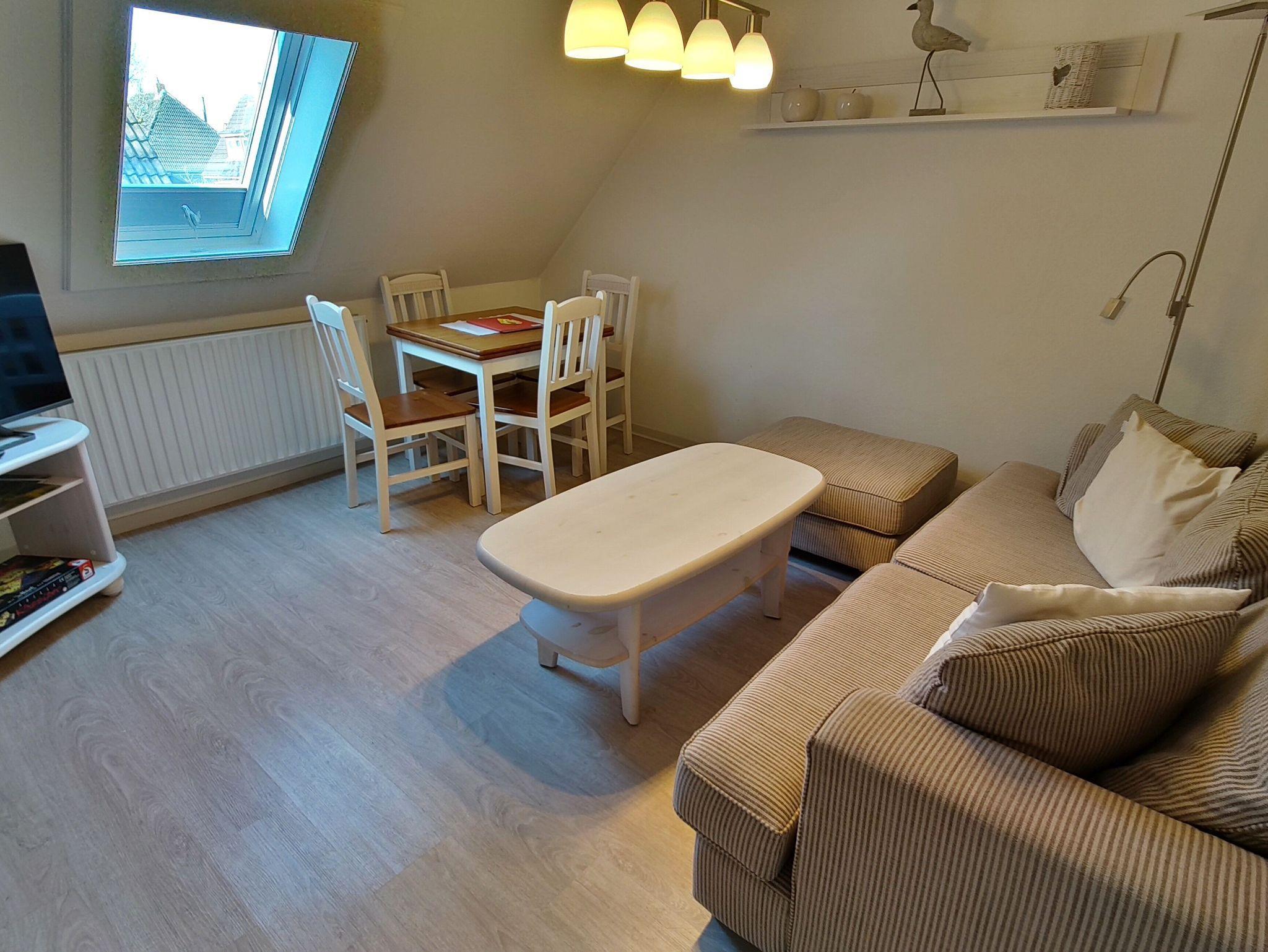 Die schöne, hell eingerichtete Wohnung befindet sich im ersten 1. OG. Hunde sind herzlich willkommen, müssen aber angemeldet werden.