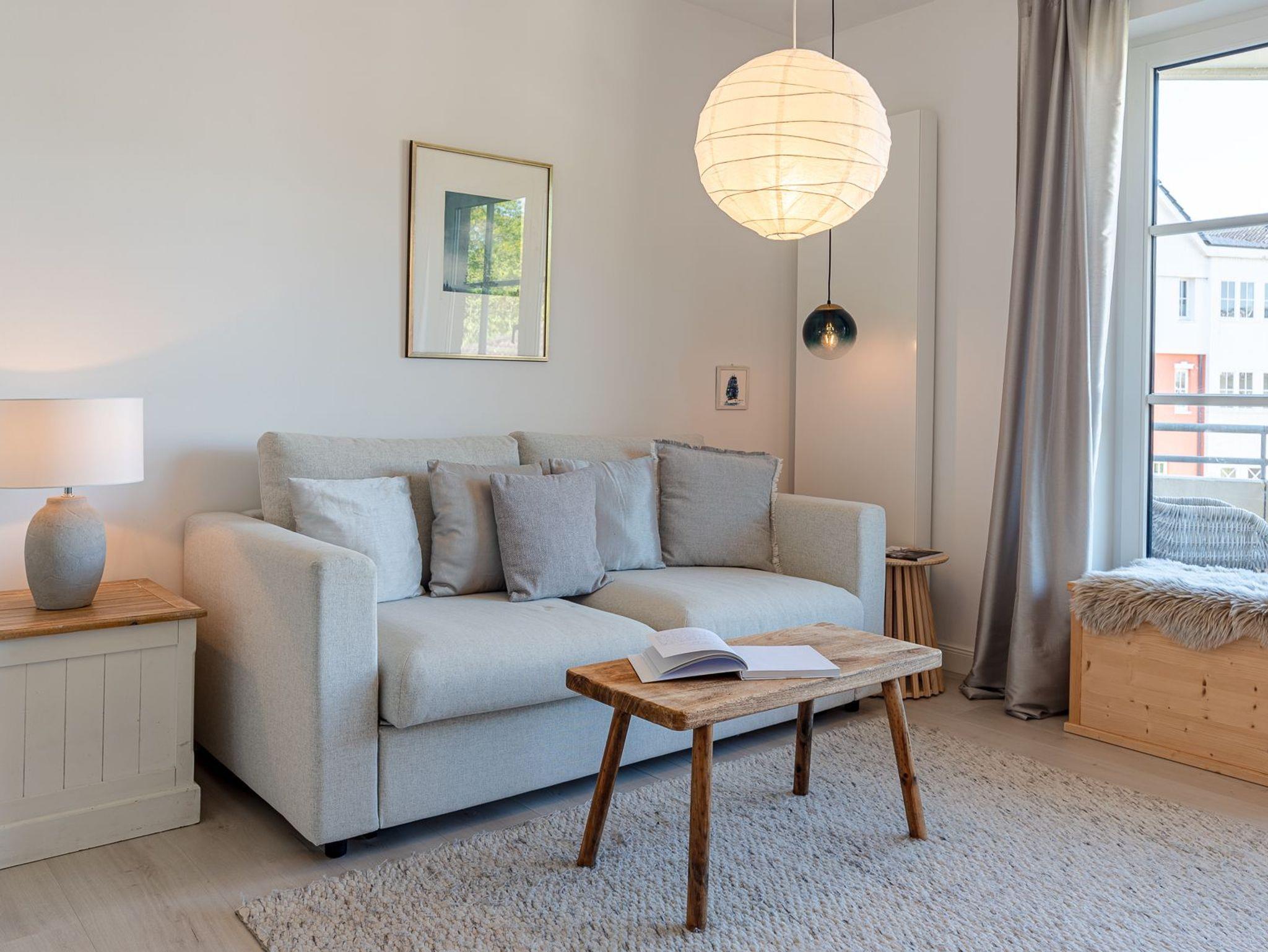 Neben dem lichtdurchfluteten Wohn- und Essbereich mit bequemer Couch, Smart TV und der neuen offenen Küchenzeile erwartet Sie der großzügige Westbalkon mit traumhaften Sonnenuntergängen.