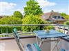 Balkon: Nach Süd-Süd-West ausgerichtet mit Tisch und zwei Stühlen.