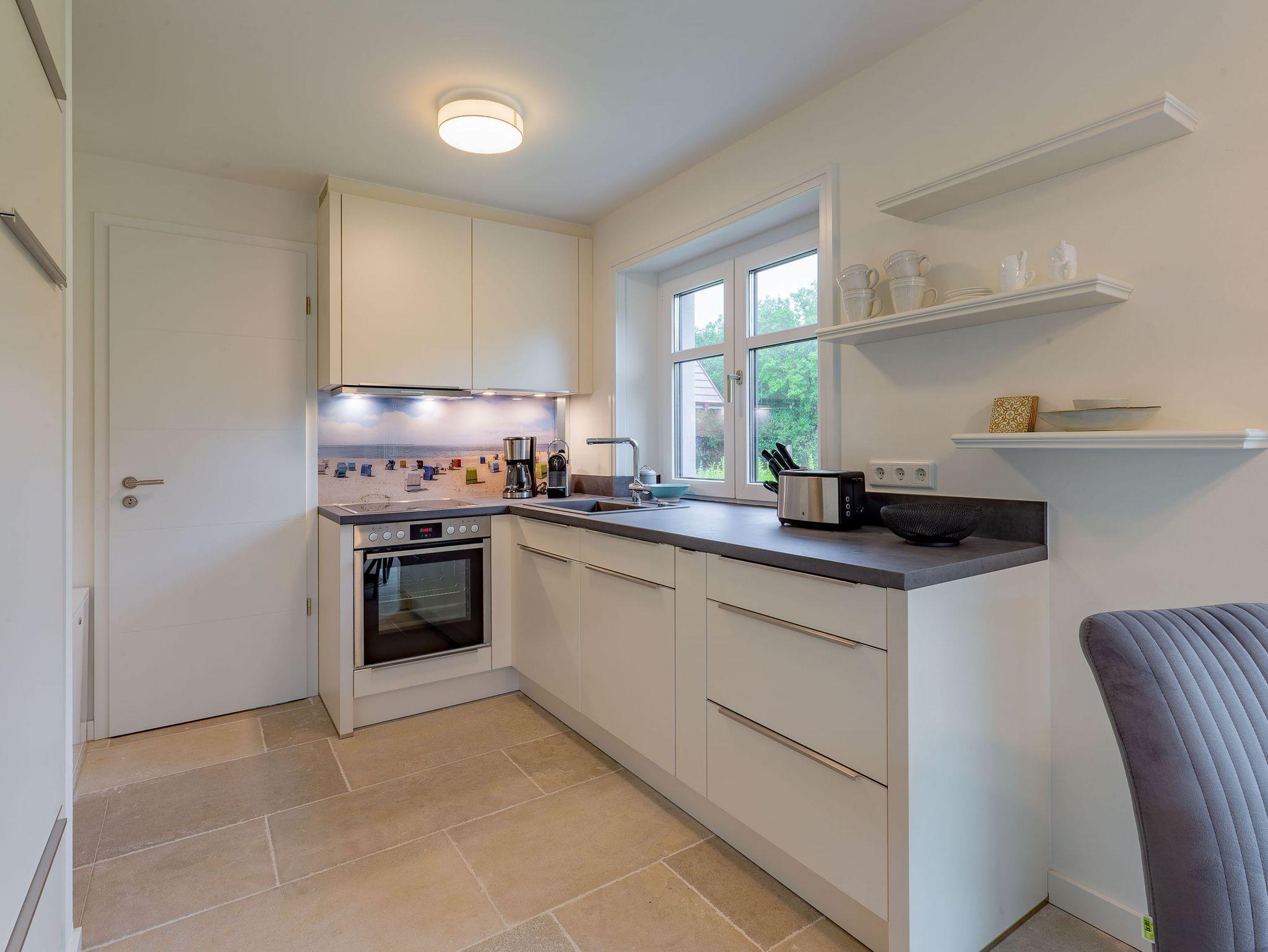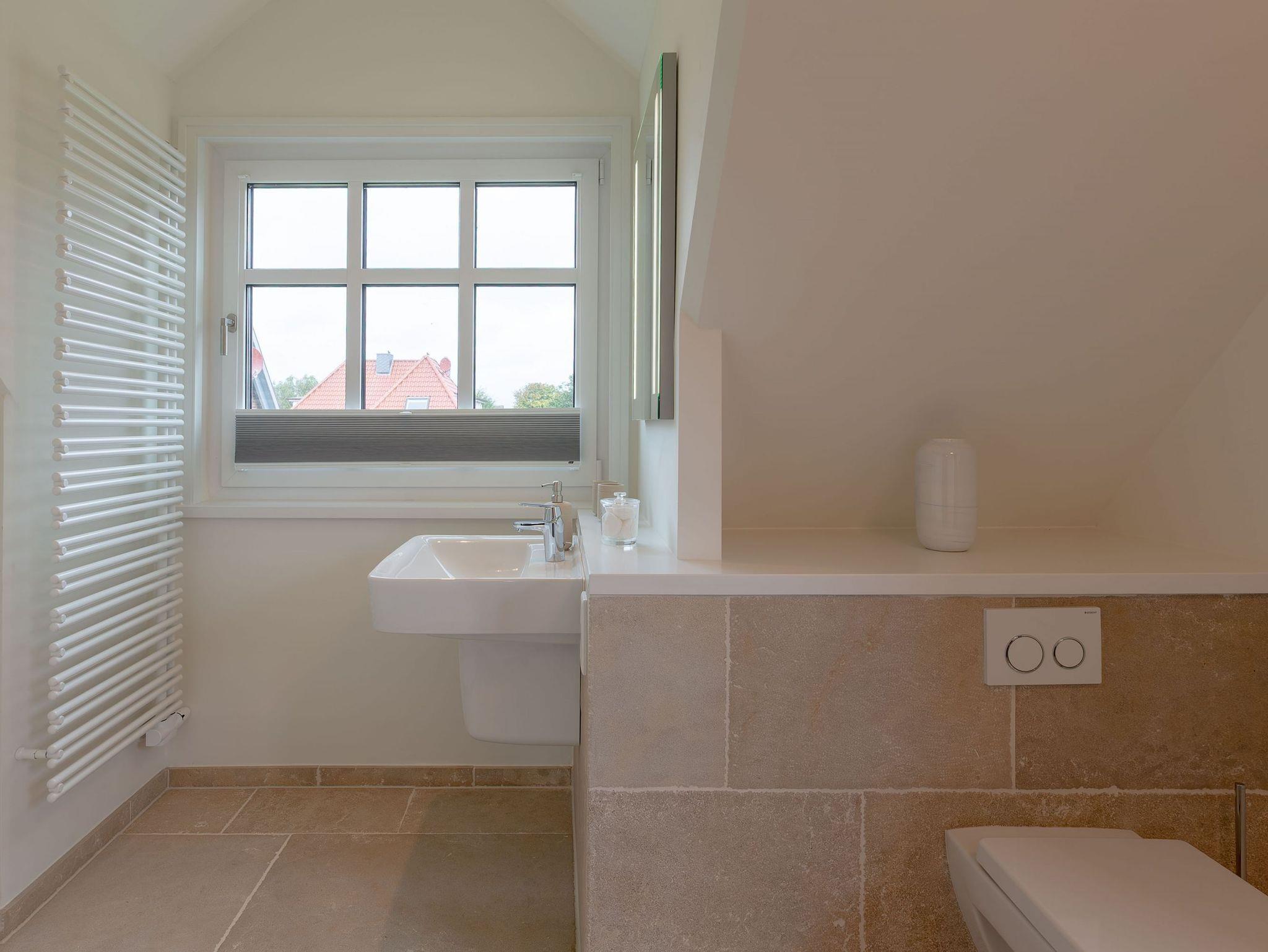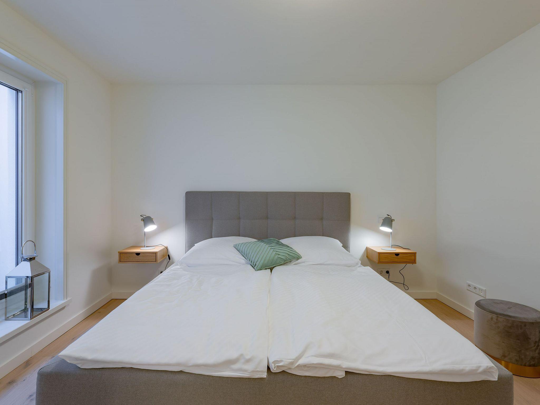 Modernes Wohnen im Stine-Andresen-Weg in Wyk auf Föhr. Der Stine-Andresen-Weg liegt westlich nur wenige Gehminuten vom Zentrum entfernt. Es handelt sich um eine ruhige Nebenstraße, in der sowohl Insulaner als auch Feriengäste leben. In fußläufiger Entfernung gelangen Sie zur Strandpromenade die zum Bummeln einlädt und sich fast 3 km lang erstreckt. Auch der Wyker Stadtwald und der Ortskern in Wyk liegen fußnah zum Stine-Andresen-Weg. Die Haushälfte ist durch die vielen bodentiefen Fenster lichtdurchflutet und modern ausgestattet. Eine Terrasse lädt zum Frühstücken uns relaxen ein. Sowohl im Obergeschoss als auch im Untergeschoss befindet sich ein großes Schlafzimmer mit Doppelbett und jeweils ein Bad mit bodenebener Dusche. Im Untergeschoss steht Ihnen eine Sauna zur Verfügung. Einem erholsamen und entspannten Urlaub steht nichts im Wege ? egal zu welcher Jahreszeit Sie einen Aufenthalt buchen. [nbsp]
