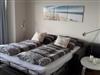 Die helle Wohnung liegt im fünften Stock und ist mit dem Aufzug erreichbar. Durch das große Panoramafenster im Wohnraum hat man einen wundervollen, direkten Blick auf die Halligen und den Sandwall. Das Appartement verfügt über ein separates Schlafzimmer mit zwei Einzelbetten, einen gemütlichen Wohn-Schlafraum, einer gut ausgestatteten Küche und einem Duschbad.