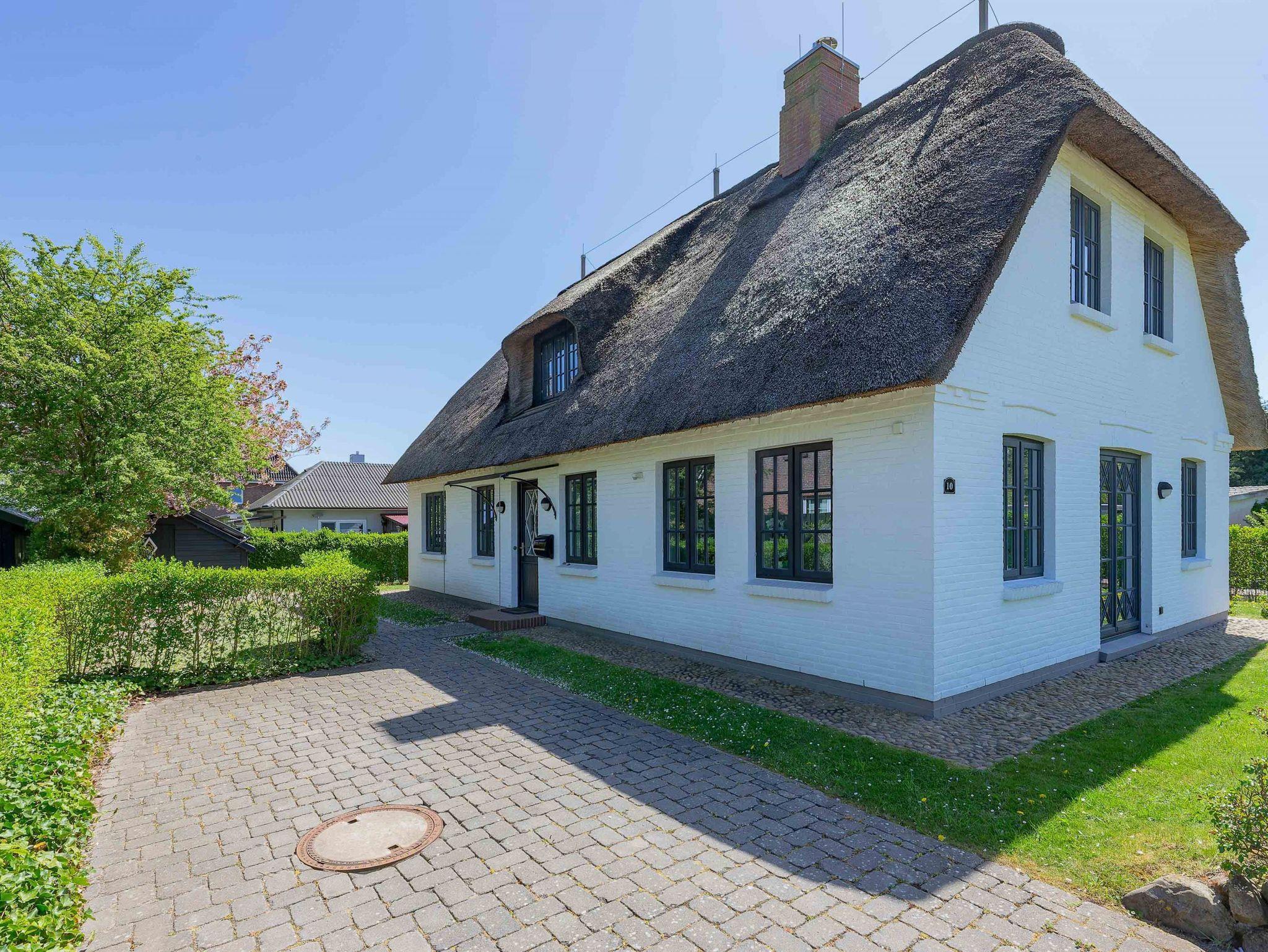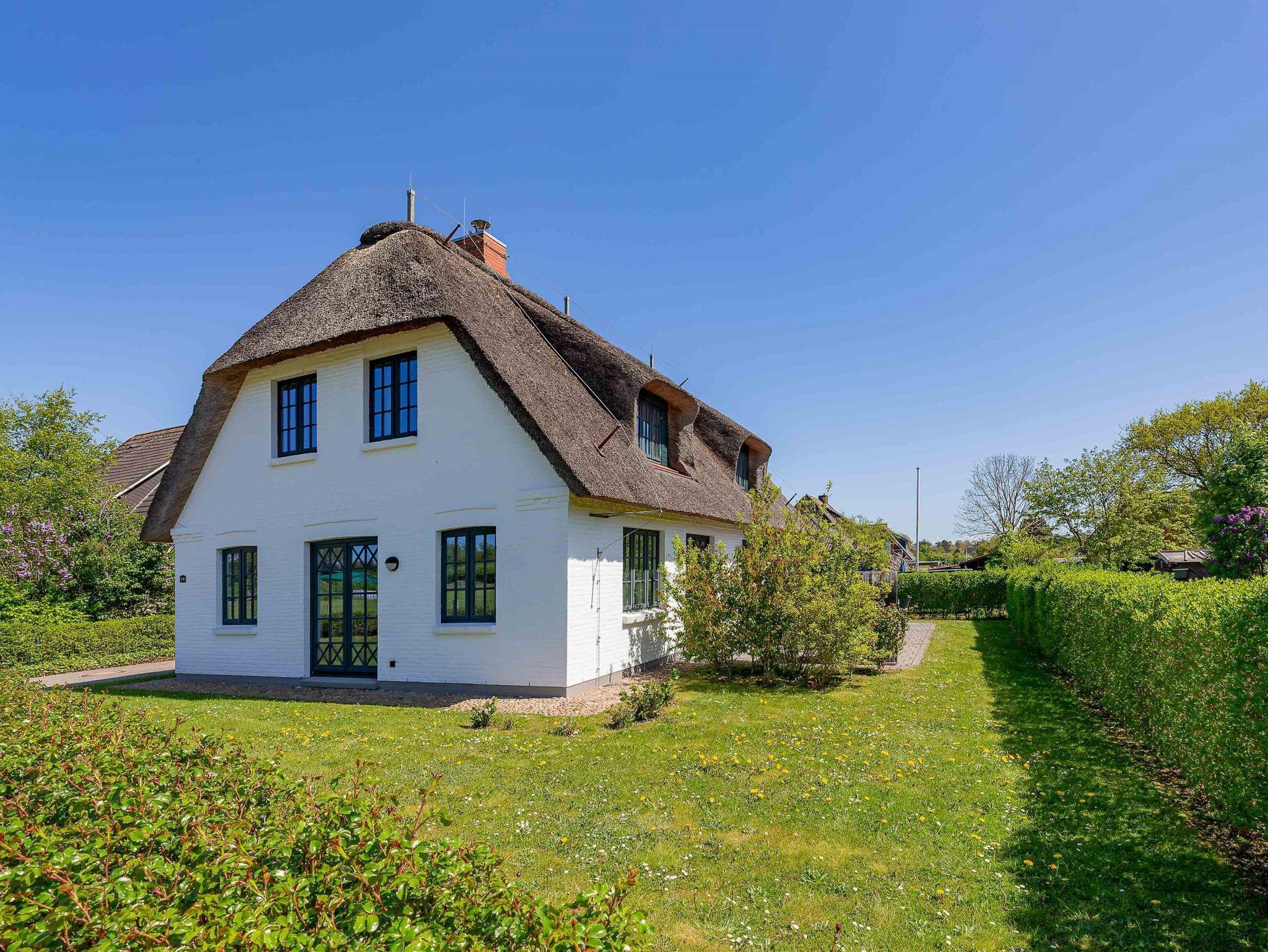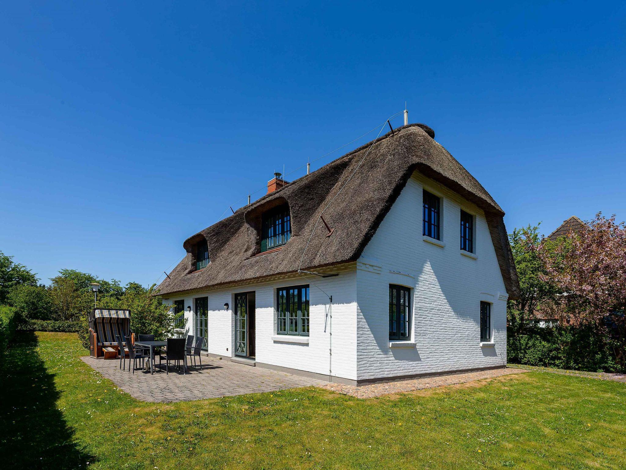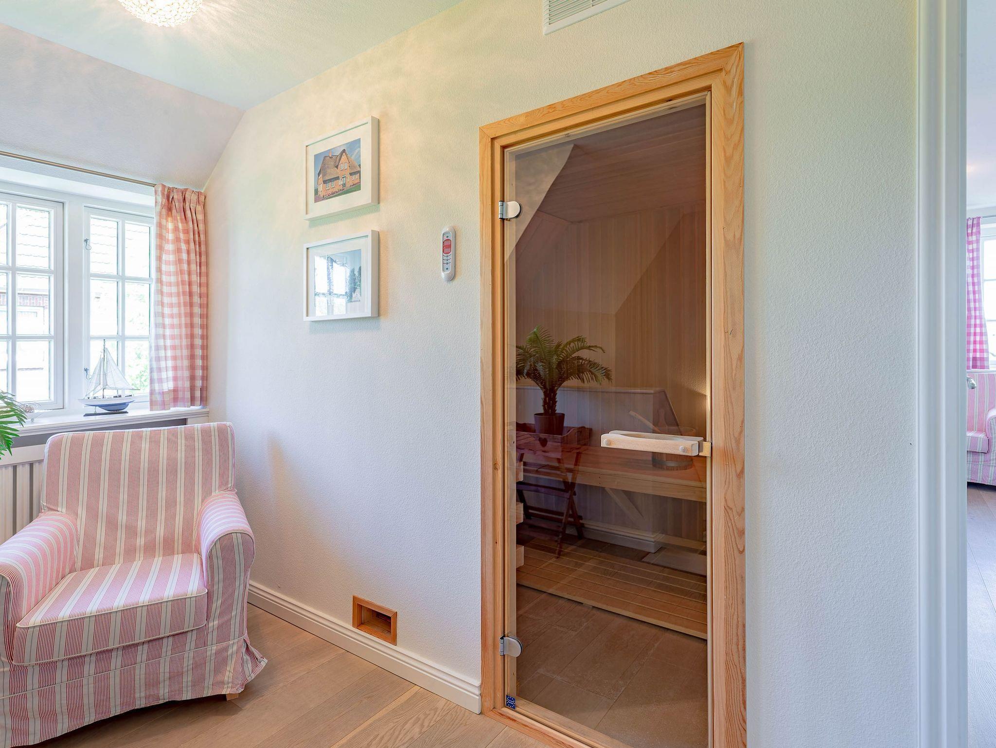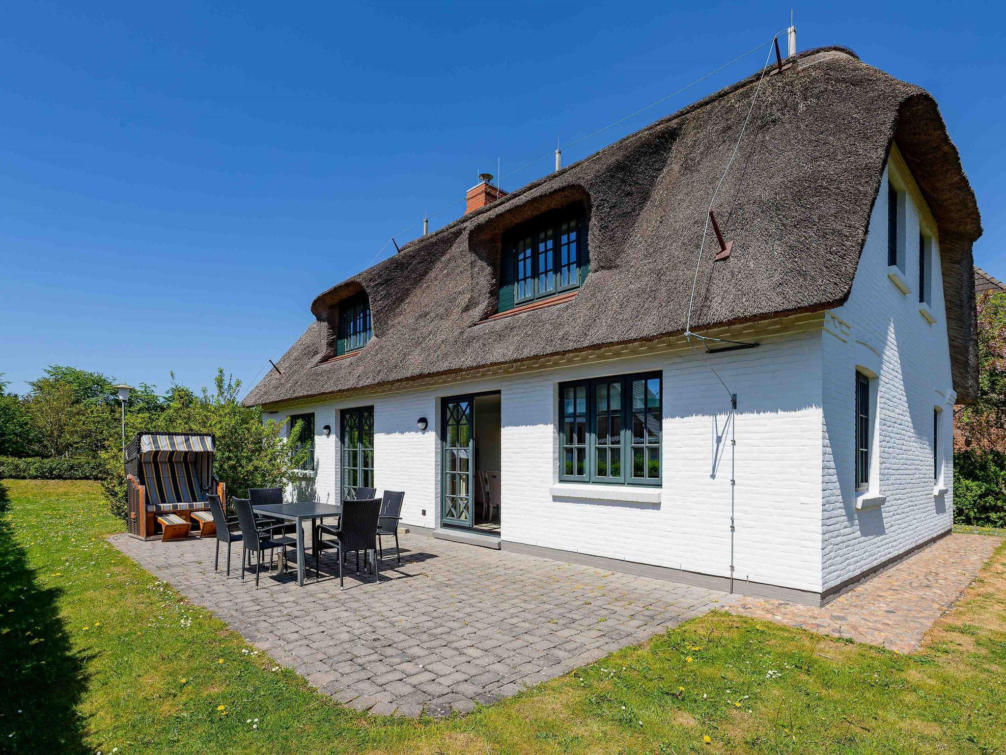 Ein typisches Friesenhaus mit sehr schöner Architektur. Die Summe schöner Details ? Holzsprossenfenster, Reetdach, schöne Fliesen und Holzarbeiten - schafft eine wunderbare Atmosphäre. Im Erdgeschoss befindet sich ein großes, modern eingerichtetes Wohnzimmer mit Essplatz, von welchem Sie direkt auf die ca. 36 qm große Terrasse gelangen. Desweiteren eine moderne Küche, ein Schlafraum, sowie Diele, Bad und HWR. Im Obergeschoss sind zwei Schlafzimmer mit integrierten Bädern und die hauseigene Sauna. In nur wenigen Gehminuten gelangen Sie zum Südstrand, oder Golfplatz. Waldspaziergänge können direkt vor der Tür starten. Alle Erholungs- und Einkaufsmöglichkeiten sowie Cafés und Restaurants liegen ca. 1,5 km entfernt.