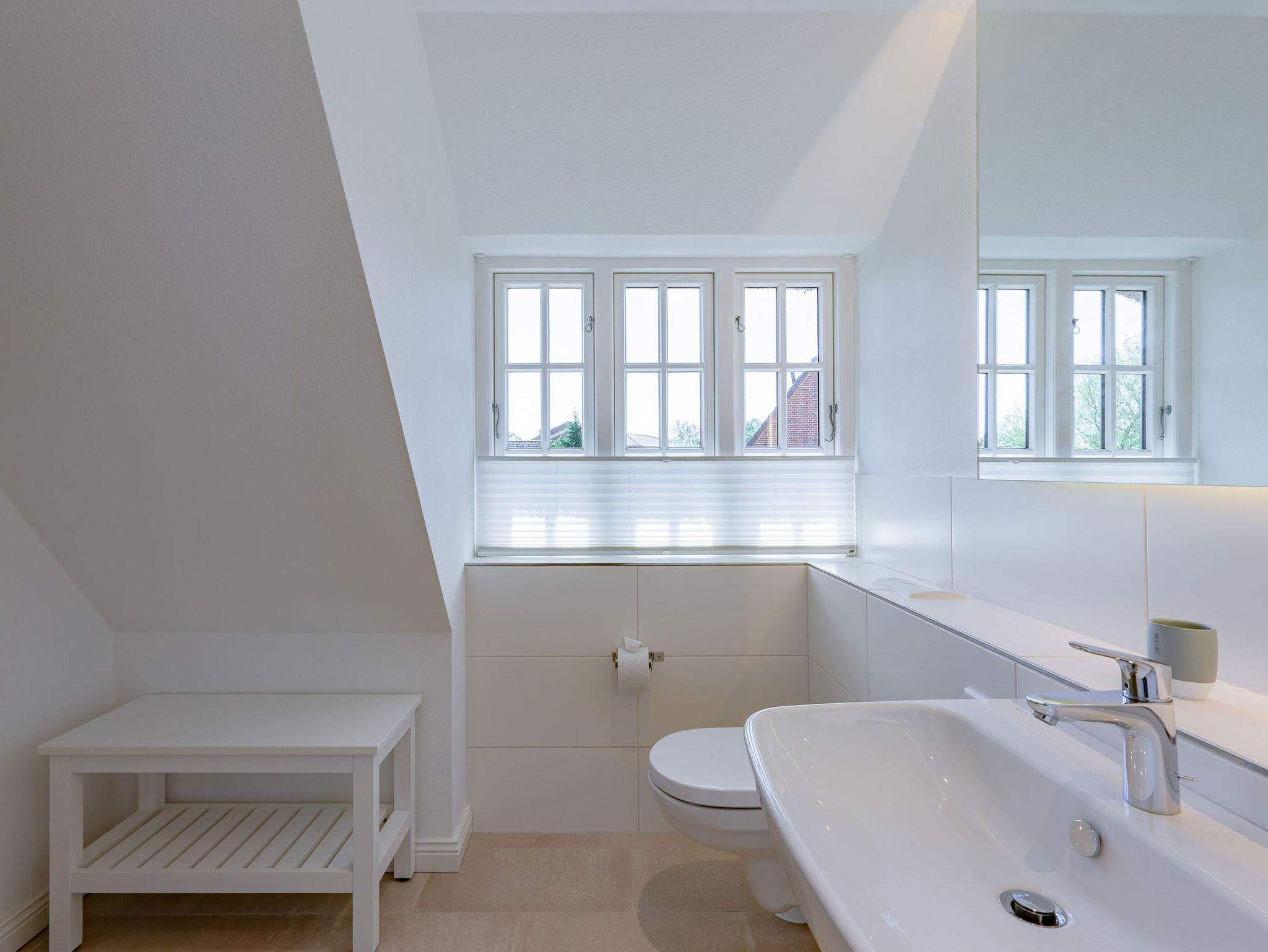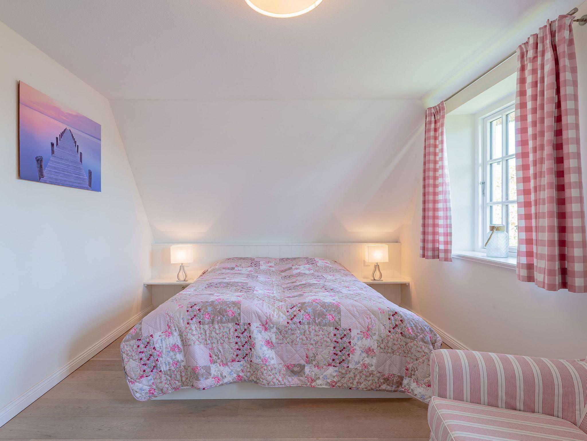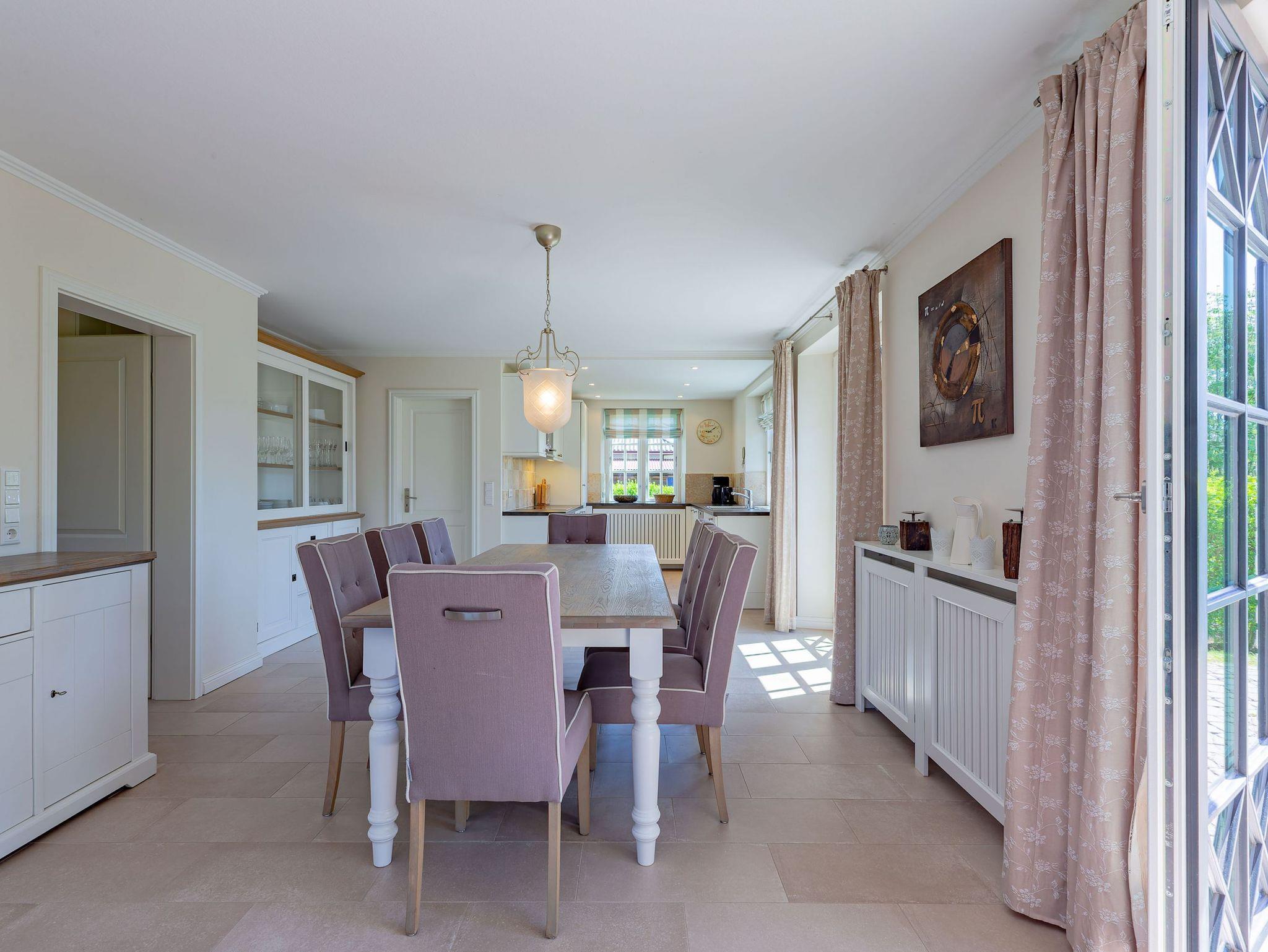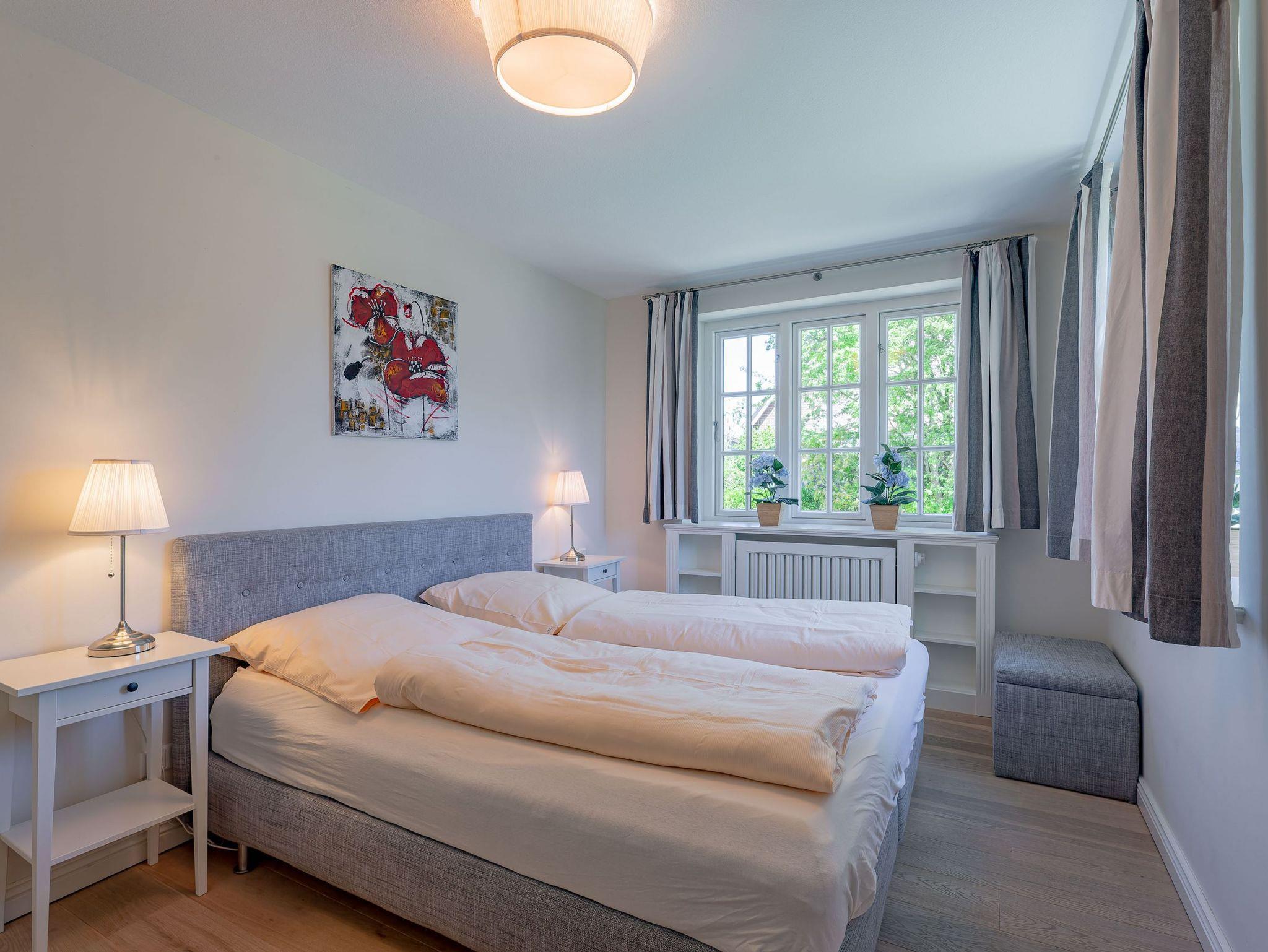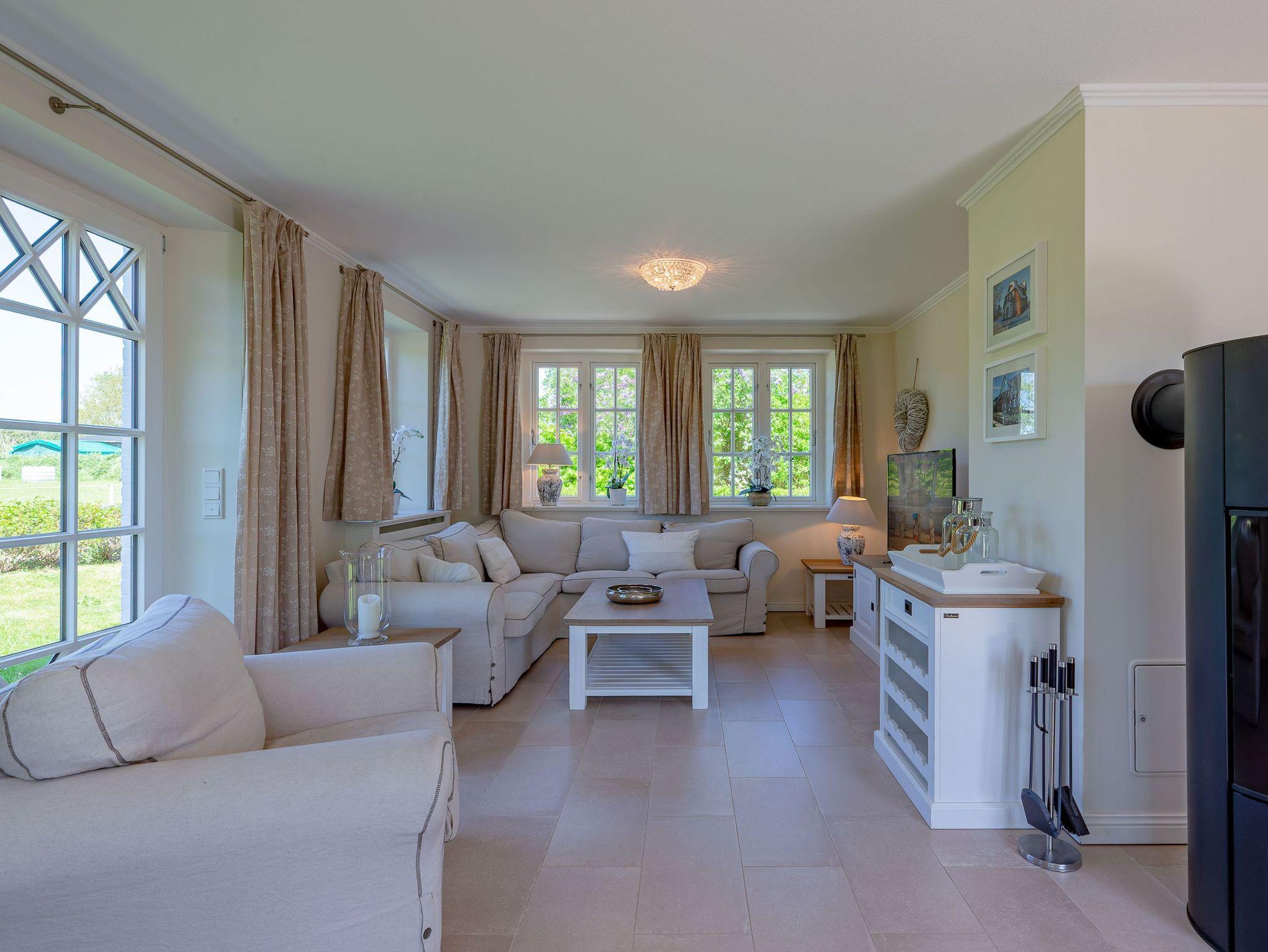 Ein typisches Friesenhaus mit sehr schöner Architektur. Die Summe schöner Details ? Holzsprossenfenster, Reetdach, schöne Fliesen und Holzarbeiten - schafft eine wunderbare Atmosphäre. Im Erdgeschoss befindet sich ein großes, modern eingerichtetes Wohnzimmer mit Essplatz, von welchem Sie direkt auf die ca. 36 qm große Terrasse gelangen. Desweiteren eine moderne Küche, ein Schlafraum, sowie Diele, Bad und HWR. Im Obergeschoss sind zwei Schlafzimmer mit integrierten Bädern und die hauseigene Sauna. In nur wenigen Gehminuten gelangen Sie zum Südstrand, oder Golfplatz. Waldspaziergänge können direkt vor der Tür starten. Alle Erholungs- und Einkaufsmöglichkeiten sowie Cafés und Restaurants liegen ca. 1,5 km entfernt.