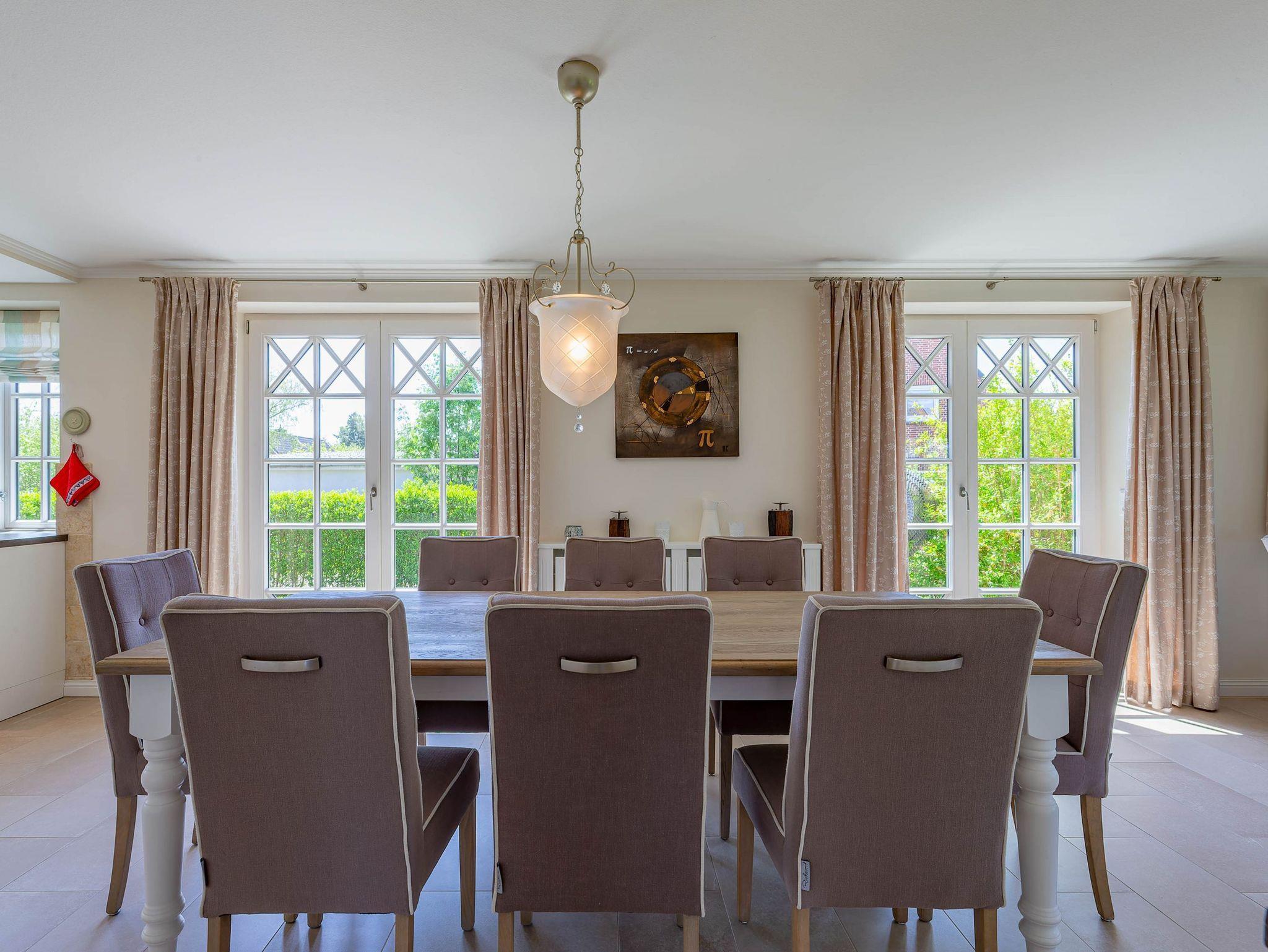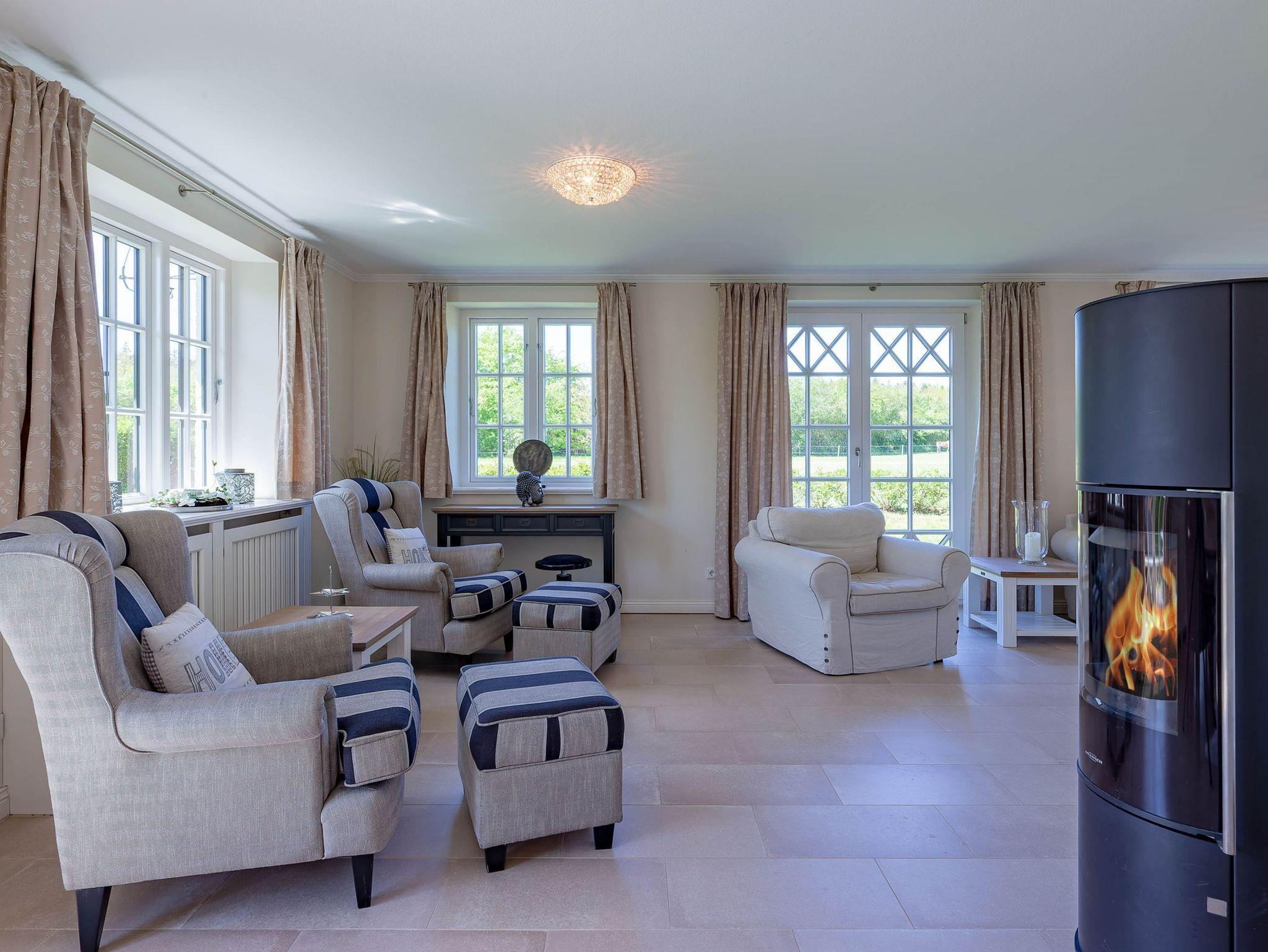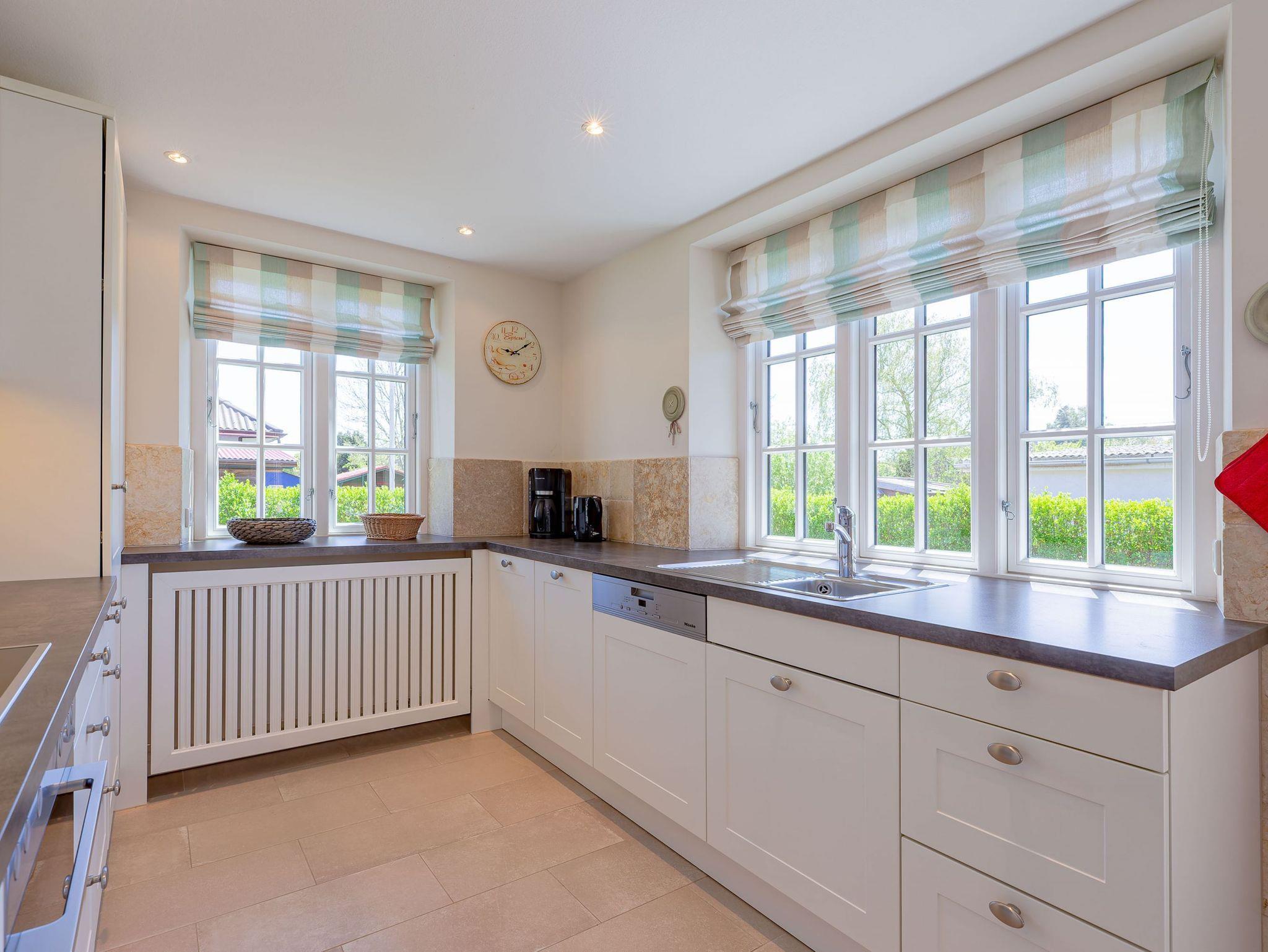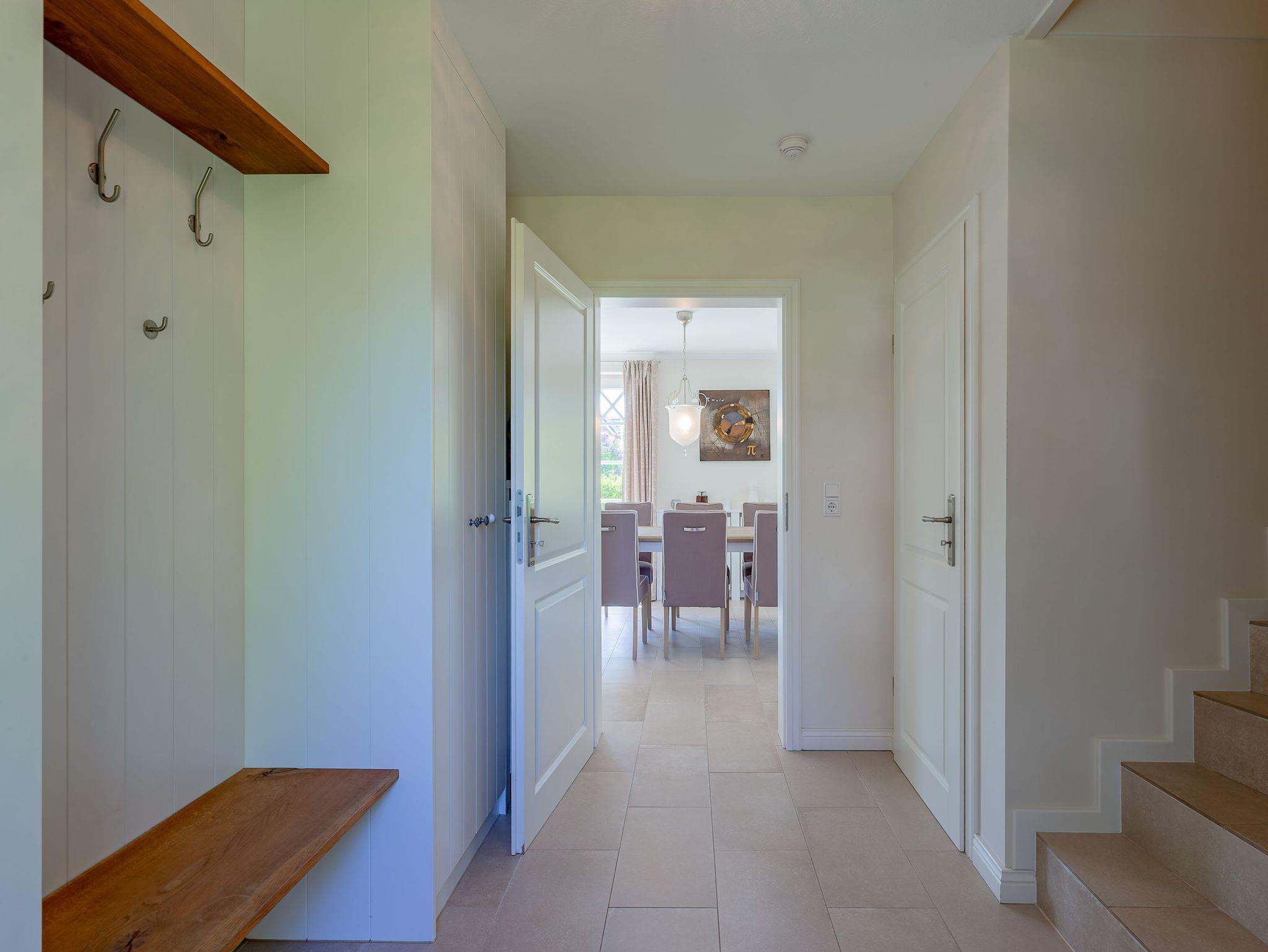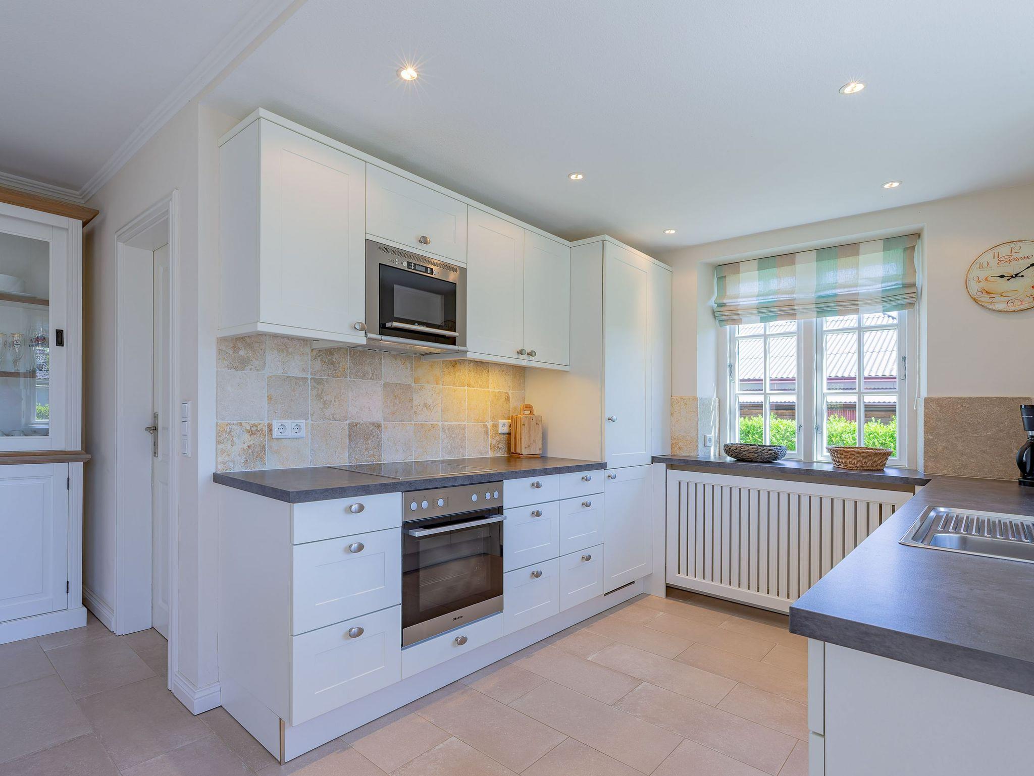 Ein typisches Friesenhaus mit sehr schöner Architektur. Die Summe schöner Details ? Holzsprossenfenster, Reetdach, schöne Fliesen und Holzarbeiten - schafft eine wunderbare Atmosphäre. Im Erdgeschoss befindet sich ein großes, modern eingerichtetes Wohnzimmer mit Essplatz, von welchem Sie direkt auf die ca. 36 qm große Terrasse gelangen. Desweiteren eine moderne Küche, ein Schlafraum, sowie Diele, Bad und HWR. Im Obergeschoss sind zwei Schlafzimmer mit integrierten Bädern und die hauseigene Sauna. In nur wenigen Gehminuten gelangen Sie zum Südstrand, oder Golfplatz. Waldspaziergänge können direkt vor der Tür starten. Alle Erholungs- und Einkaufsmöglichkeiten sowie Cafés und Restaurants liegen ca. 1,5 km entfernt.