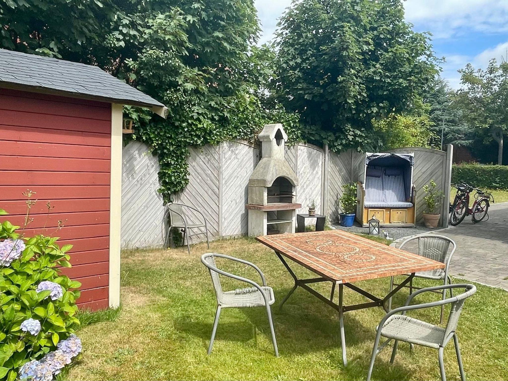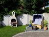 Außenbereich: Parkplatz, Garten, Außensitzplatz mit Strandkorb, Unterstellmöglichkeit für Fahrräder.