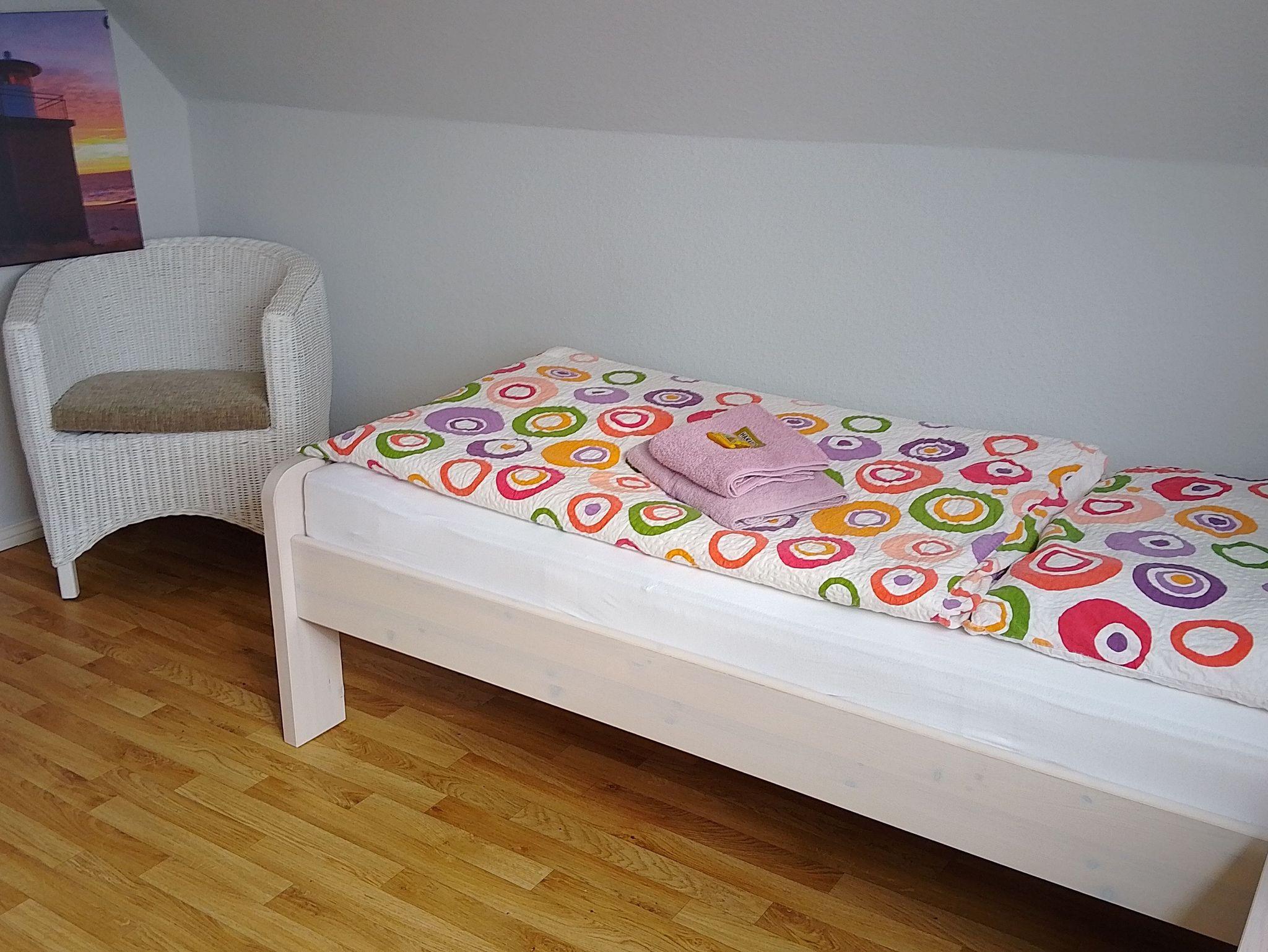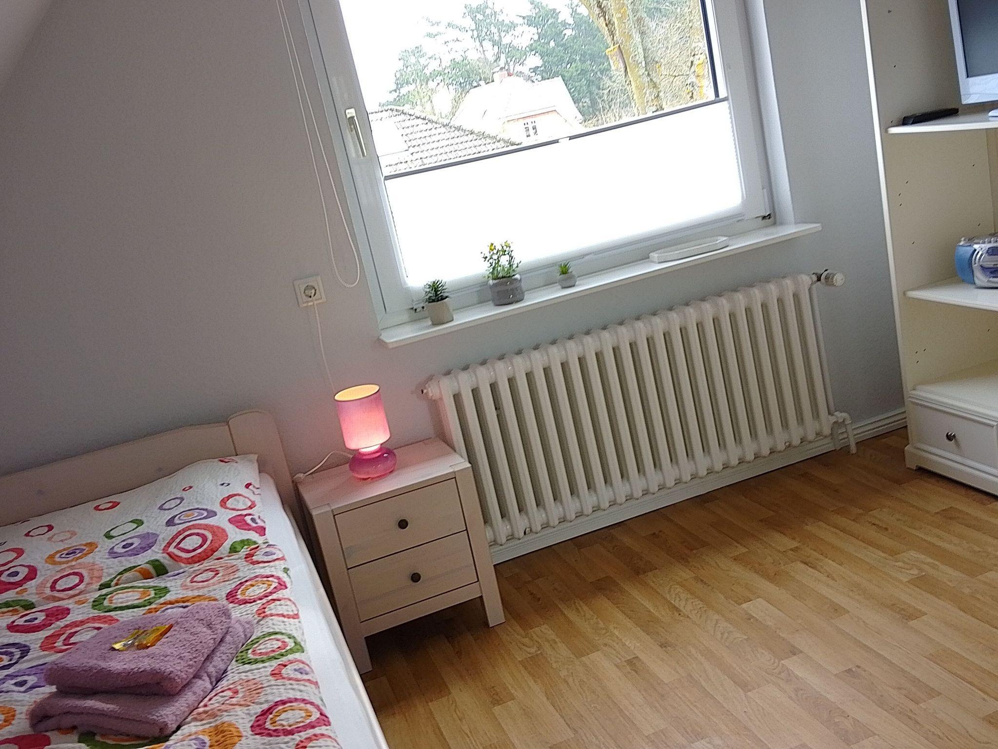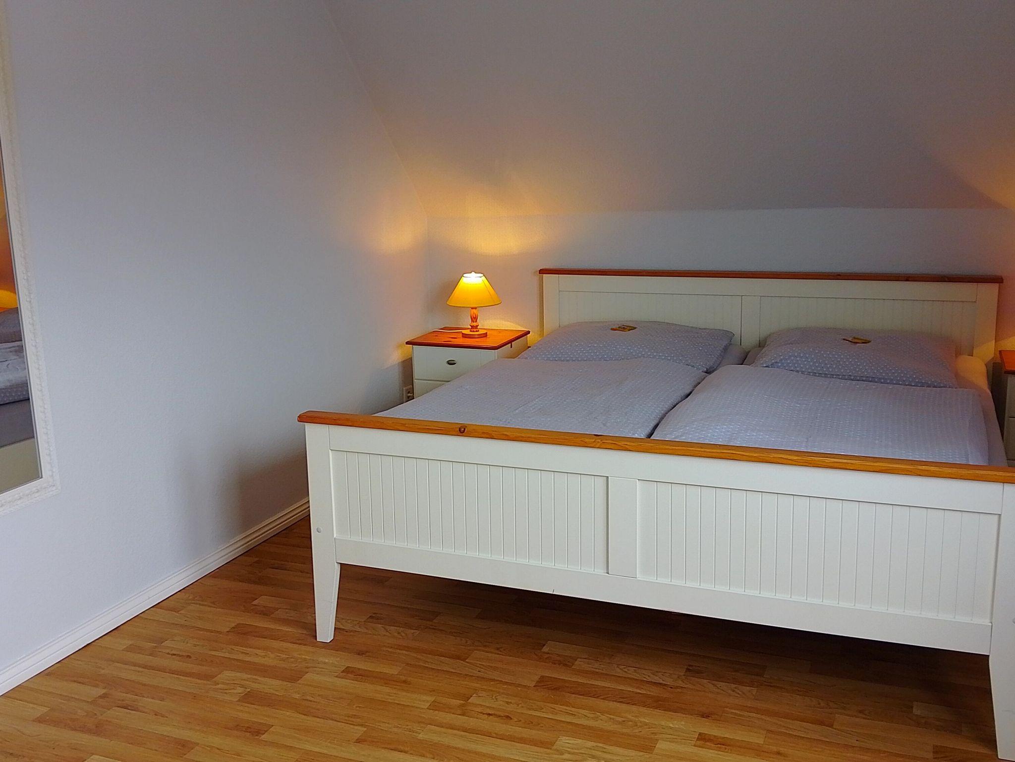 Die helle, freundliche Obergeschosswohnung ist 80m² groß und bietet Platz für 2 bis 5 Personen. Es erwartet Sie eine geräumige Ferienwohnung mit einer separaten Küche, einem gemütlichen Wohnzimmer mit einer Essecke, drei Schlafzimmern und einem Duschbad. Ein schöner Gartenplatz mit Strandkorb lädt zum Entspannen ein. Ihre Fahrräder können untergestellt werden und es steht ein Stellplatz für Ihren PKW zur Verfügung.