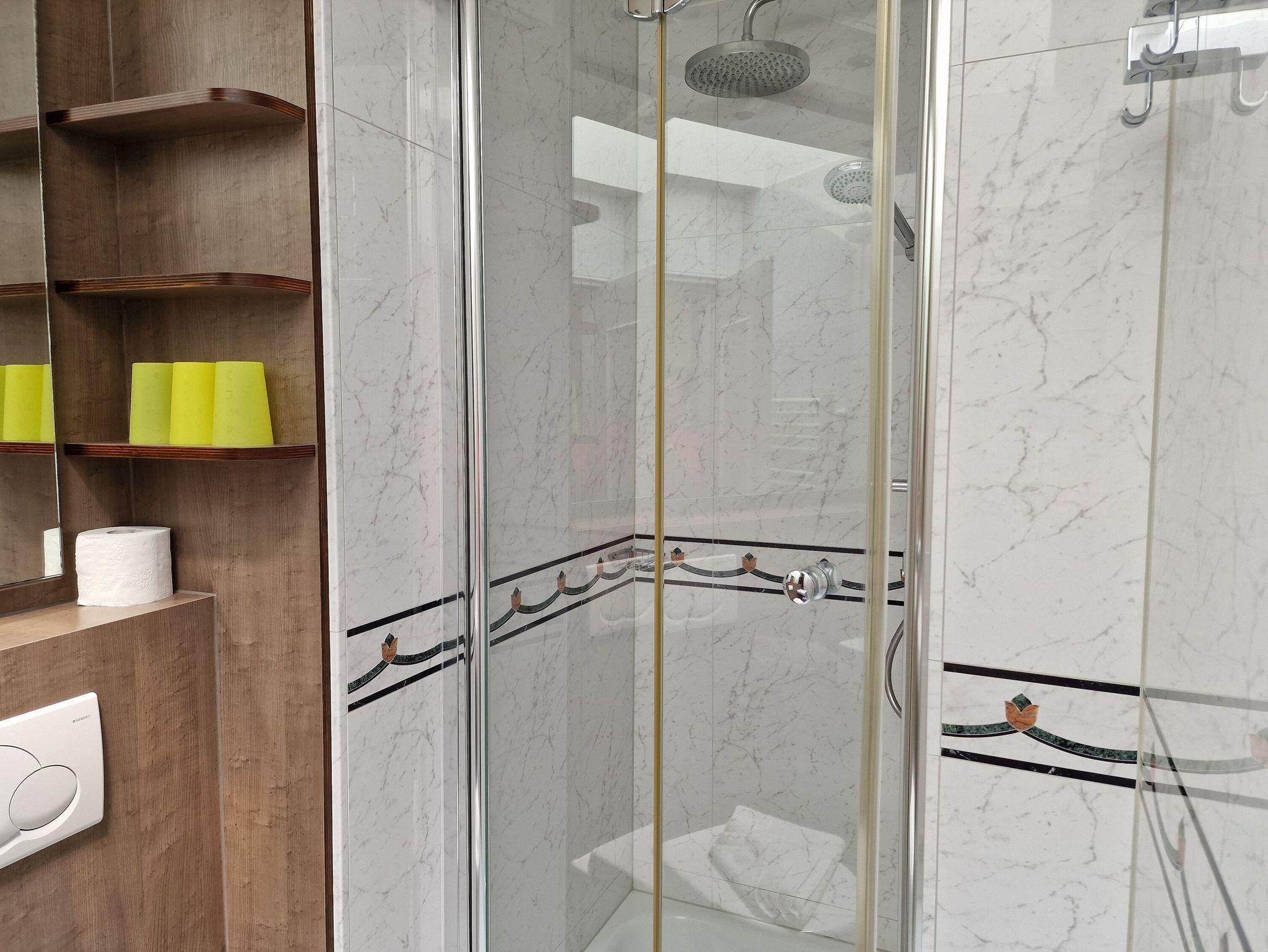 Auf dem Balkon können Sie den Blick auf das Meer und die umliegende Landschaft entspannt genießen. Zur Erholung steht Ihnen außerdem ein Schwimmbad im Appartementhaus zur Verfügung. Für Ihren PKW gibt es einen Parkplatz und auch Ihre Fahrräder können in einer Abstellmöglichkeit sicher untergebracht werden. Von der gemeinschaftlichen Sauna aus haben Sie einen Panoramablick.