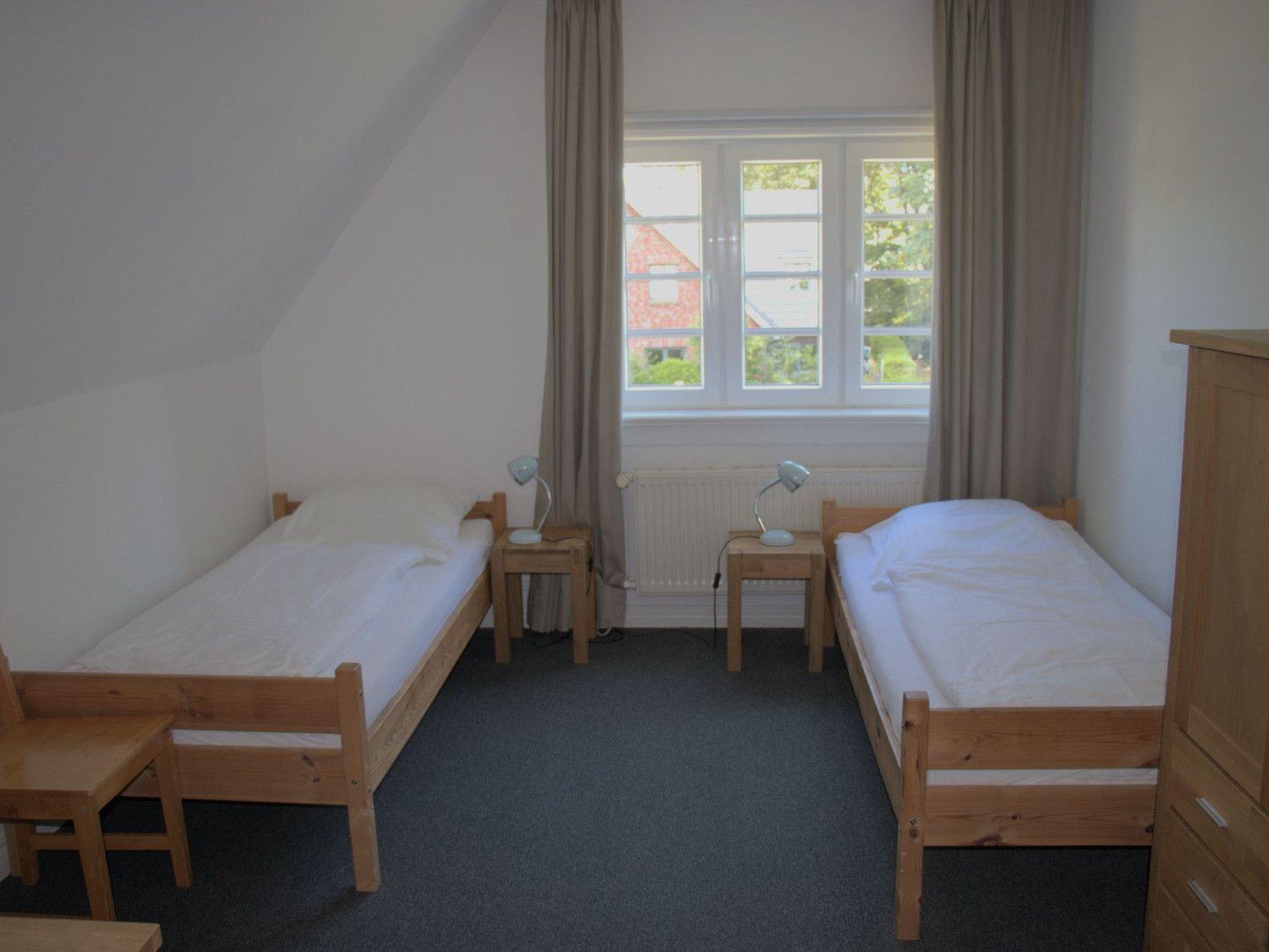 Die Wohnung im Obergeschoss verfügt über zwei Schlafzimmer, einmal mit Doppelbett und des Weiteren mit zwei Einzelbetten.