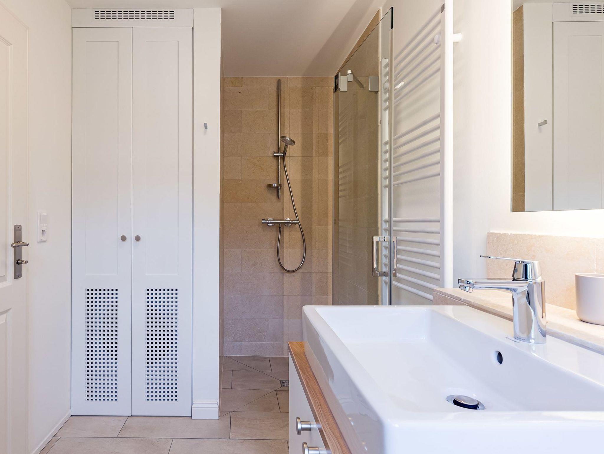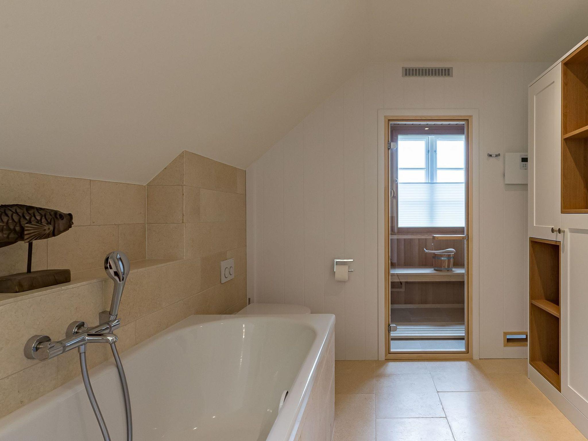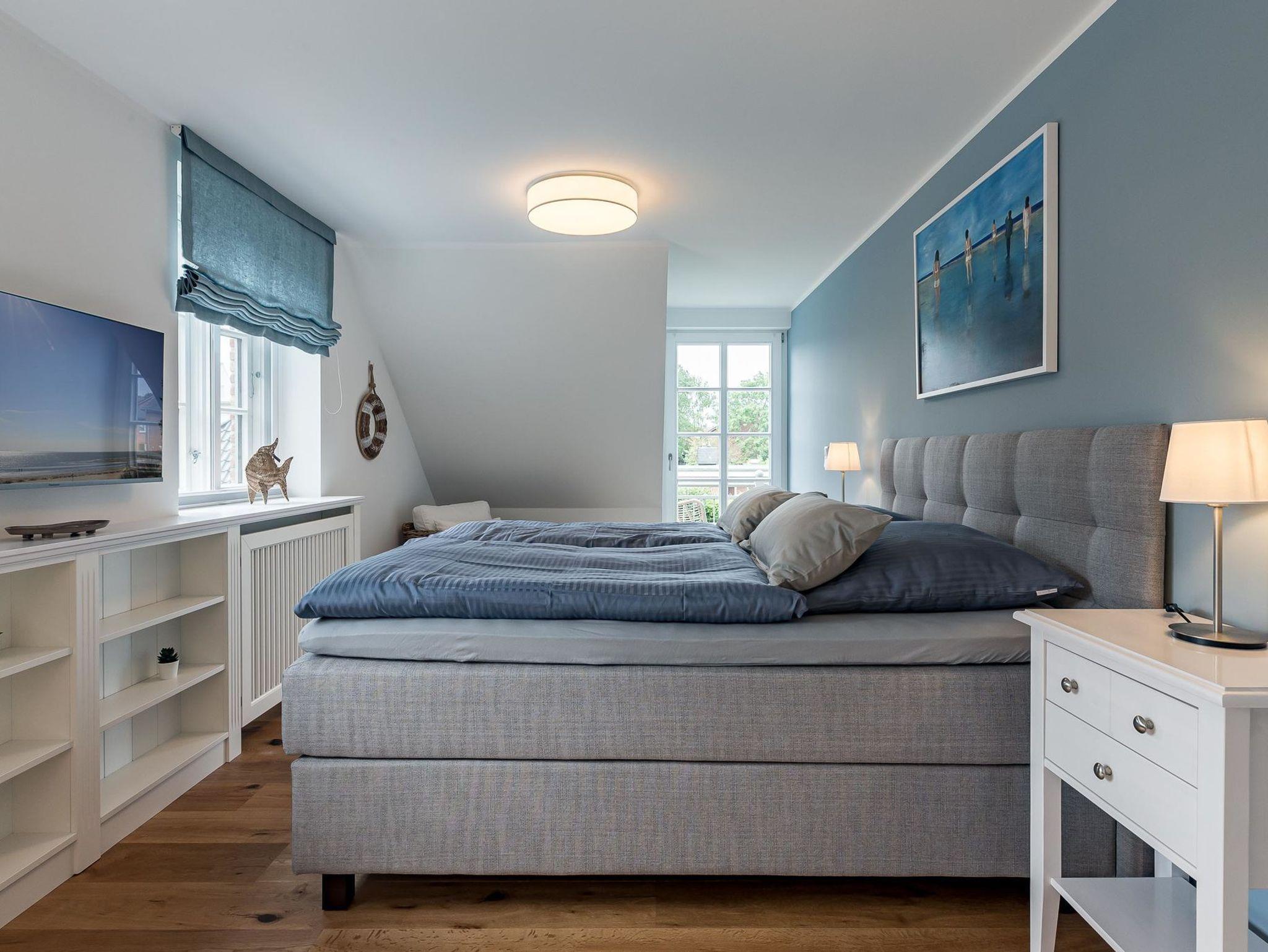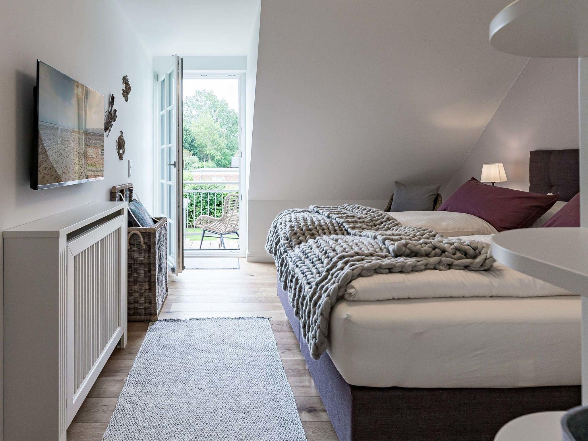 Schönes Doppelhaus in moderner Architektur wartet im Grünstreifen in Wyk auf Ihren Besuch. Klare Formen und Farben sorgen für eine ruhige und entspannte Atmosphäre. Die ganze Familie findet ausreichend Platz im Haus. Gemütliche Abende vor dem Kamin mit Wellness in der eigenen Sauna gehören in den kalten Monaten genauso dazu wie die Stunden im eigenen Strandkorb im Garten und dem Frühstück auf der Terrasse. Der Weg zum Strand ist in wenigen Minuten zu Fuß zu meistern und das bunte Leben in Wyk liegt genauso nahe. Wir freuen uns auf Sie!