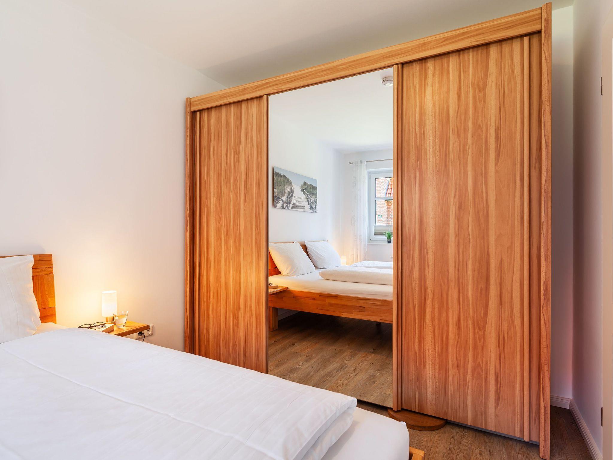 Die hell und modern eingerichtete Nichtraucher-Wohnung bietet Platz für max. vier Personen (zwei Schlafzimmer: einmal mit Doppelbett und einmal mit zwei Einzelbetten). Sie ist Allergiker geeignet. Die ebenerdige Wohnung ist auch für älteres Menschen und Menschen mit einer Gehbehinderung geeignet.