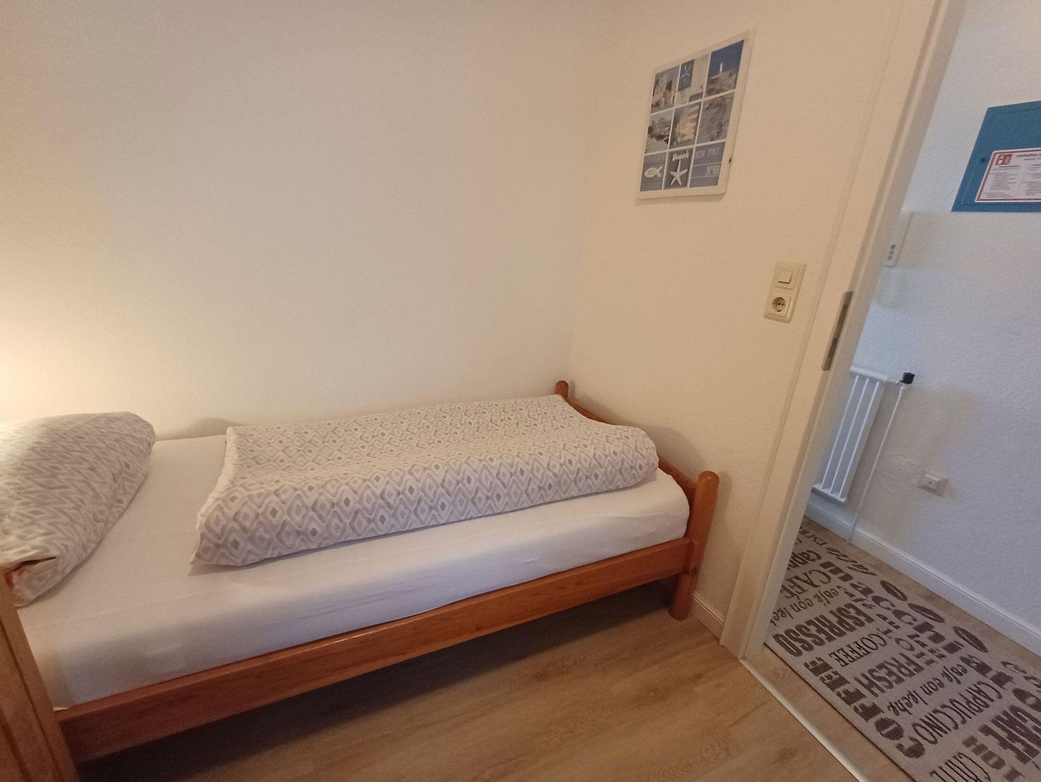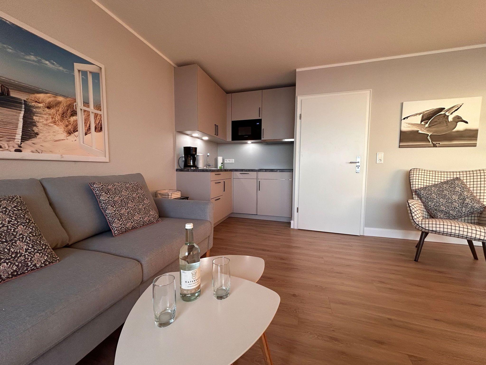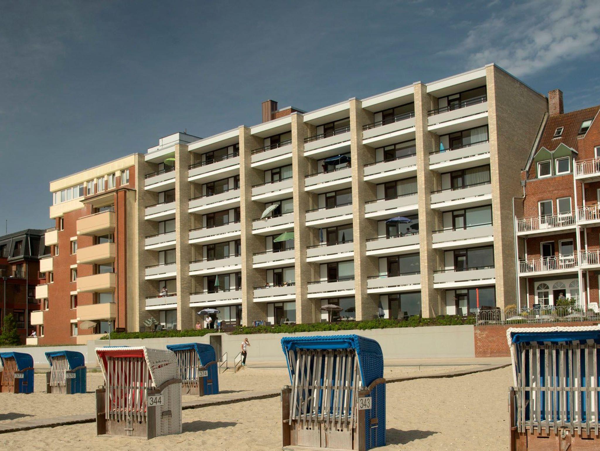 Die Wohnung hat ein geräumiges Wohnzimmer mit Essecke, Sitzgarnitur, Küchenzeile inkl. Geschirrspüler, Kühlschrank, Spüle und der notwendigen Küchenausstattung sowie eine Schrankwand, in der zwei einzeln herausklappbare Betten untergebracht sind. Liegefläche jeweils 80x1,90m. Duschbad mit Wandheizung und ein weiteres Schlafzimmer mit zwei einzelnen Betten. Im Kellergeschoß befinden sich jeweils zwei Münzwaschmaschinen und Trockner, Fahrradständer sind vor dem Haus vorhanden. Es liegt am Ende der Fußgängerzone von wo aus fußläufig alle Geschäfte und die Kureinrichtungen zu erreichen sind. Das Haus verfügt über einen Fahrstuhl und ist von der Strandseite barrierefrei zu betreten.