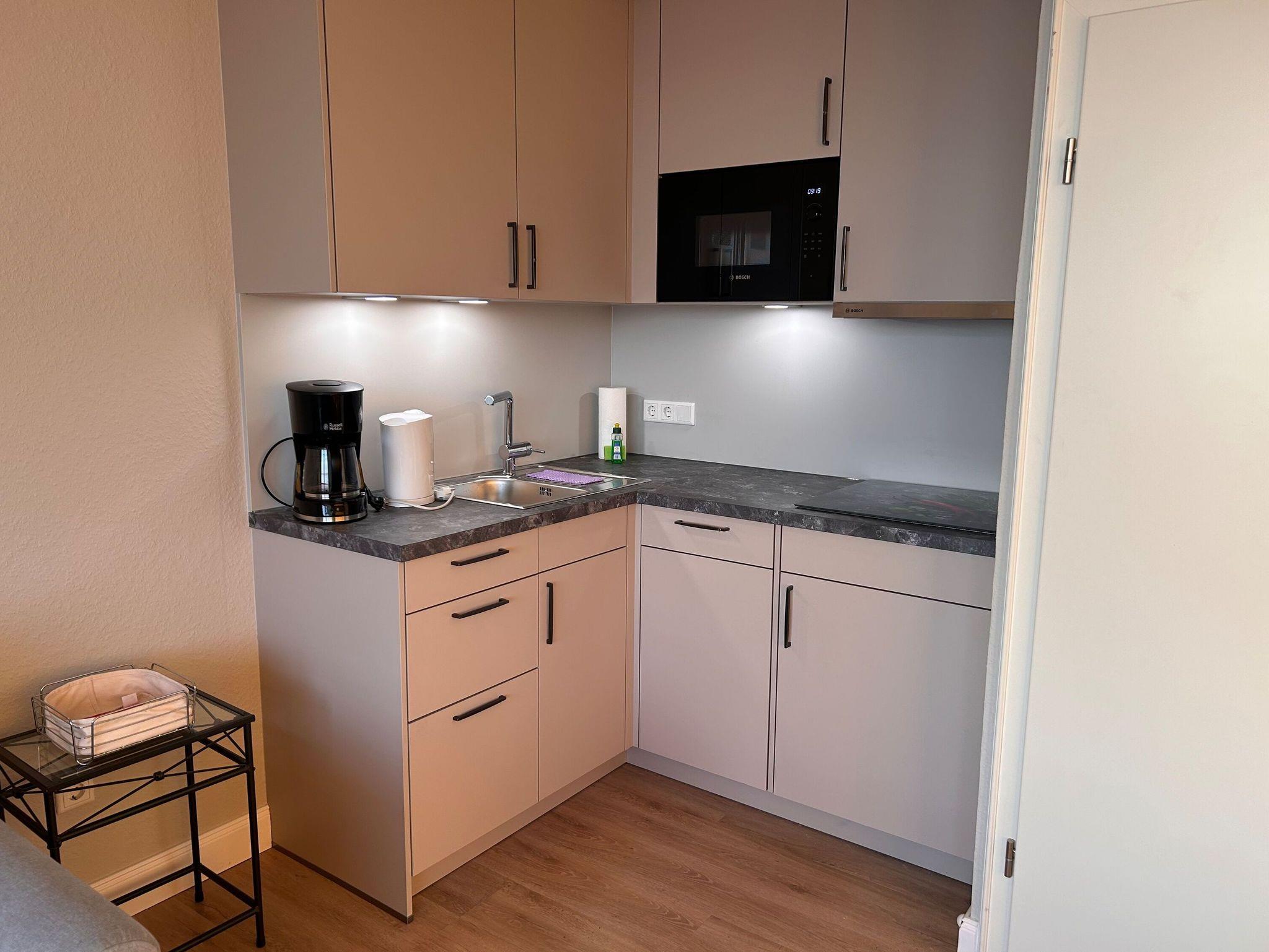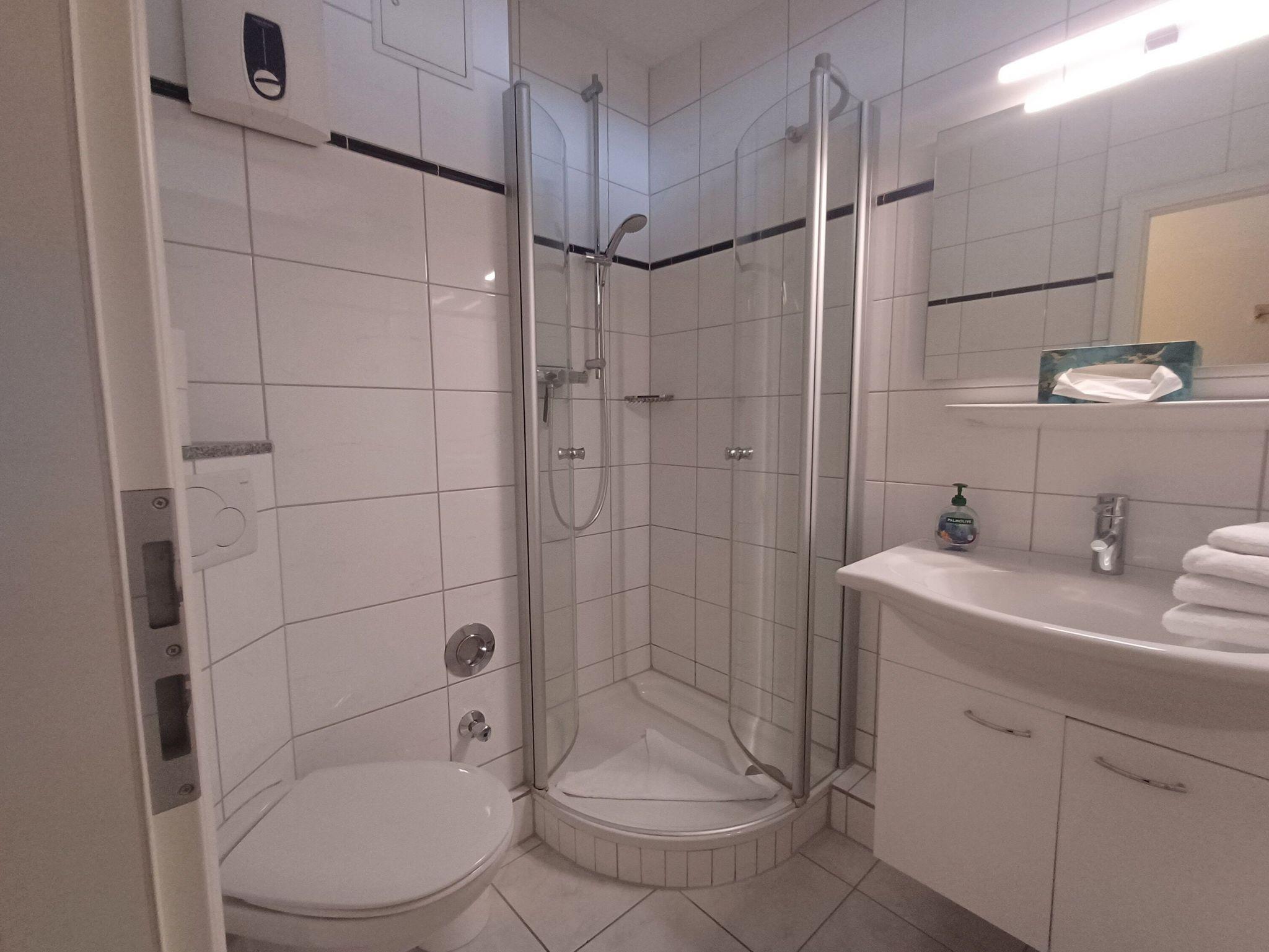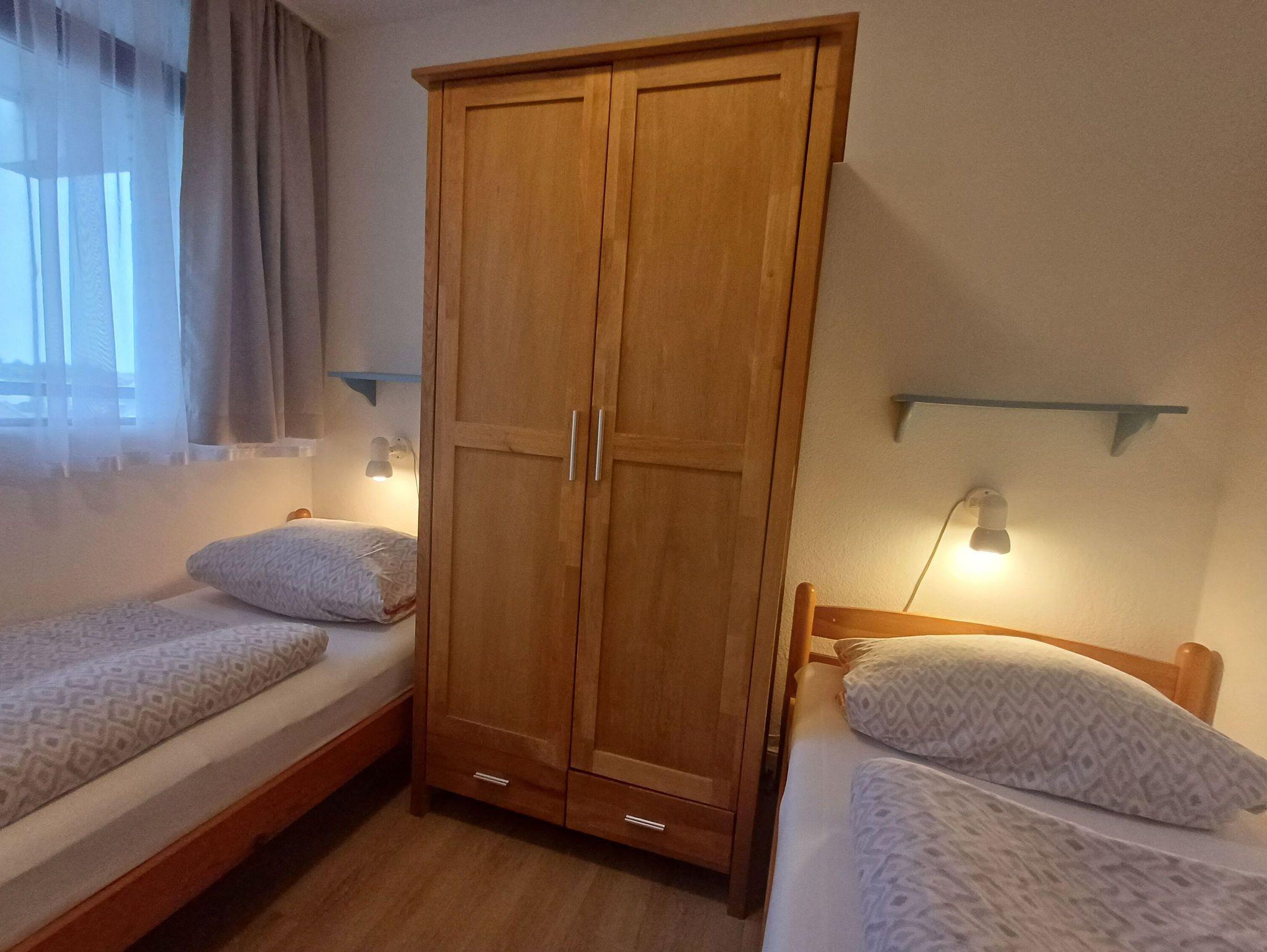 Die Wohnung hat ein geräumiges Wohnzimmer mit Essecke, Sitzgarnitur, Küchenzeile inkl. Geschirrspüler, Kühlschrank, Spüle und der notwendigen Küchenausstattung sowie eine Schrankwand, in der zwei einzeln herausklappbare Betten untergebracht sind. Liegefläche jeweils 80x1,90m. Duschbad mit Wandheizung und ein weiteres Schlafzimmer mit zwei einzelnen Betten. Im Kellergeschoß befinden sich jeweils zwei Münzwaschmaschinen und Trockner, Fahrradständer sind vor dem Haus vorhanden. Es liegt am Ende der Fußgängerzone von wo aus fußläufig alle Geschäfte und die Kureinrichtungen zu erreichen sind. Das Haus verfügt über einen Fahrstuhl und ist von der Strandseite barrierefrei zu betreten.
