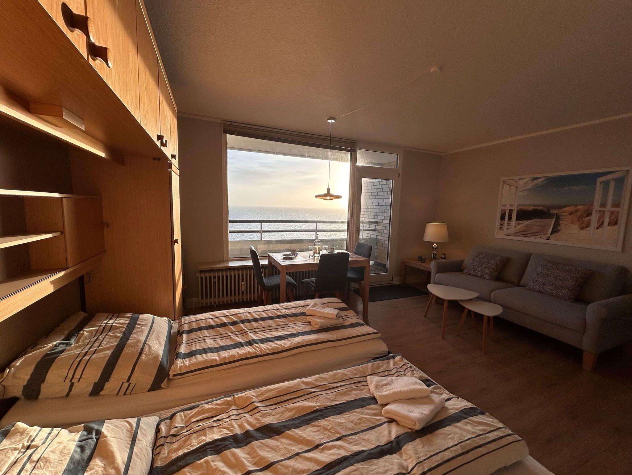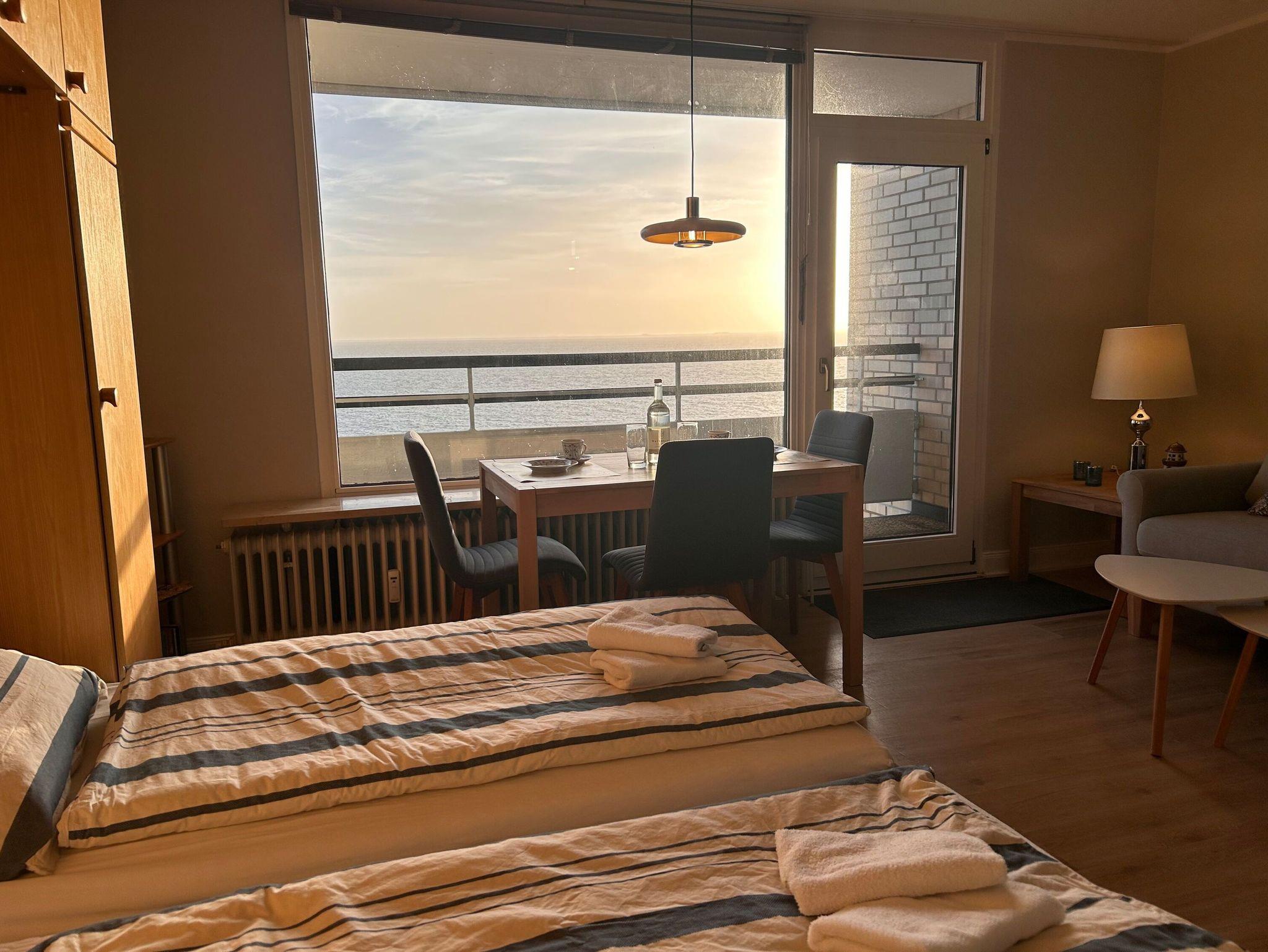 Die Ferienwohnung liegt im obersten Stock des Apartmenthauses Irma in Wyk auf Föhr und wurde im November 2025 umfassend renoviert. Es gibt einen unverbauten Blick auf das Wattenmeer, die Halligen und das vorgelagerte Festland. Der überdachte Balkon lädt zum Sonnenbaden, Schiffe beobachten und genießen ein.