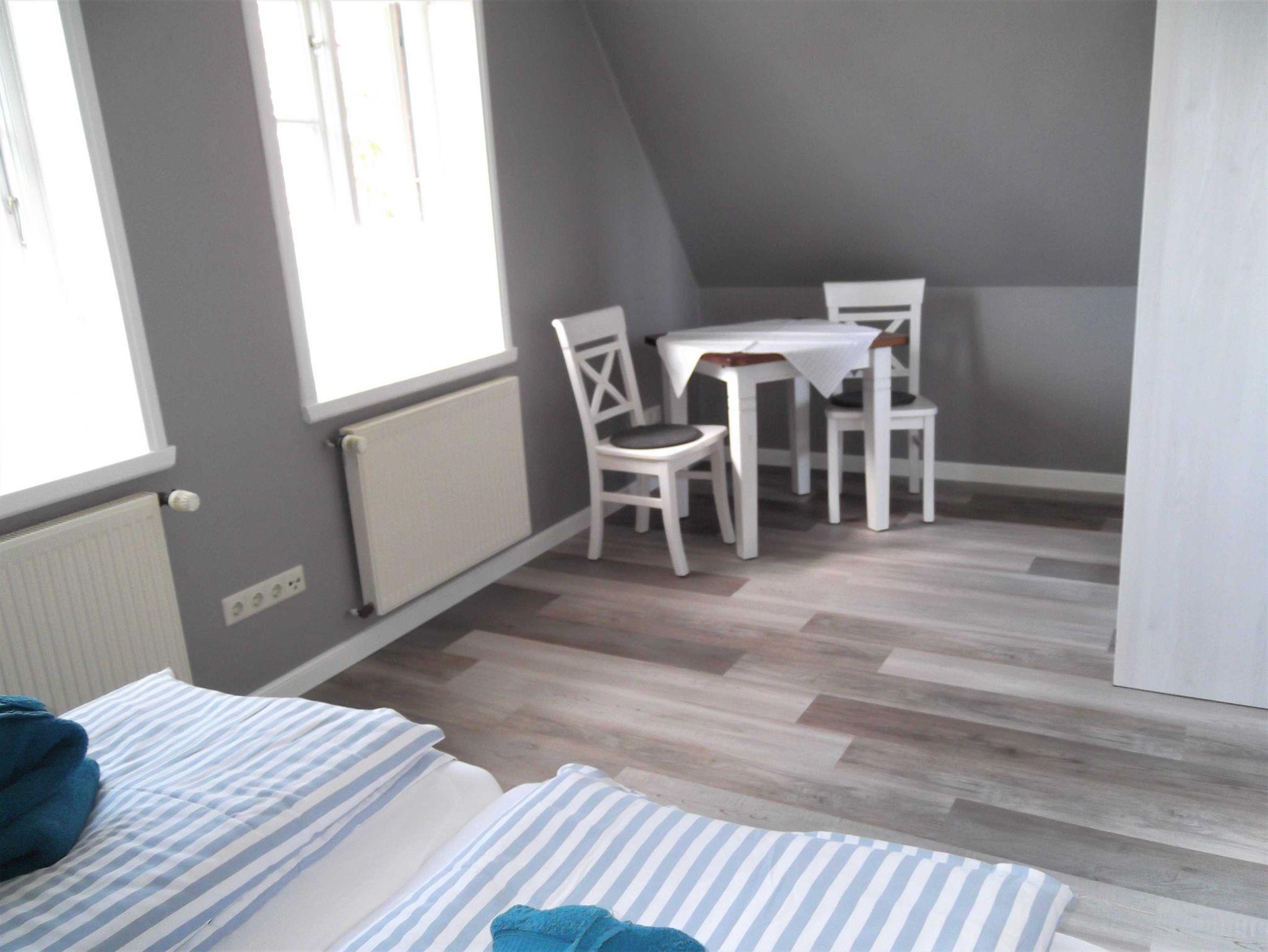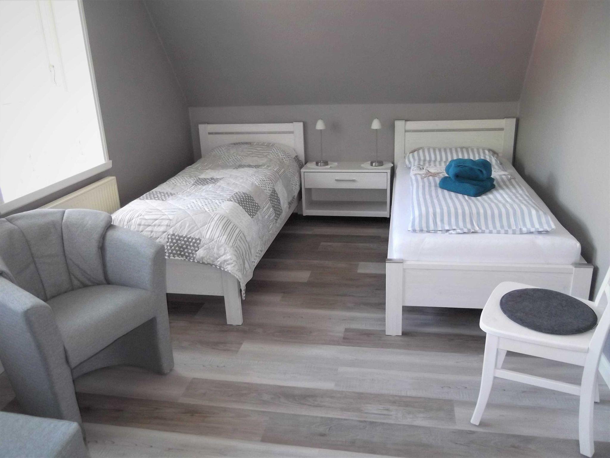 Das Objekt mit zwei Schlafzimmern bietet Platz für 5 Personen. Im Erdgeschoss befindet sich das geräumige Wohnzimmer, die separate Küche mit allem Drum und Dran und das Gäste-WC. Zwei Schlafzimmer, ein Elternschlafzimmer und ein Schlafzimmer mit drei Einzelbetten, und ein Duschbad mit 2 Waschtischen finden Sie im 1.OG.