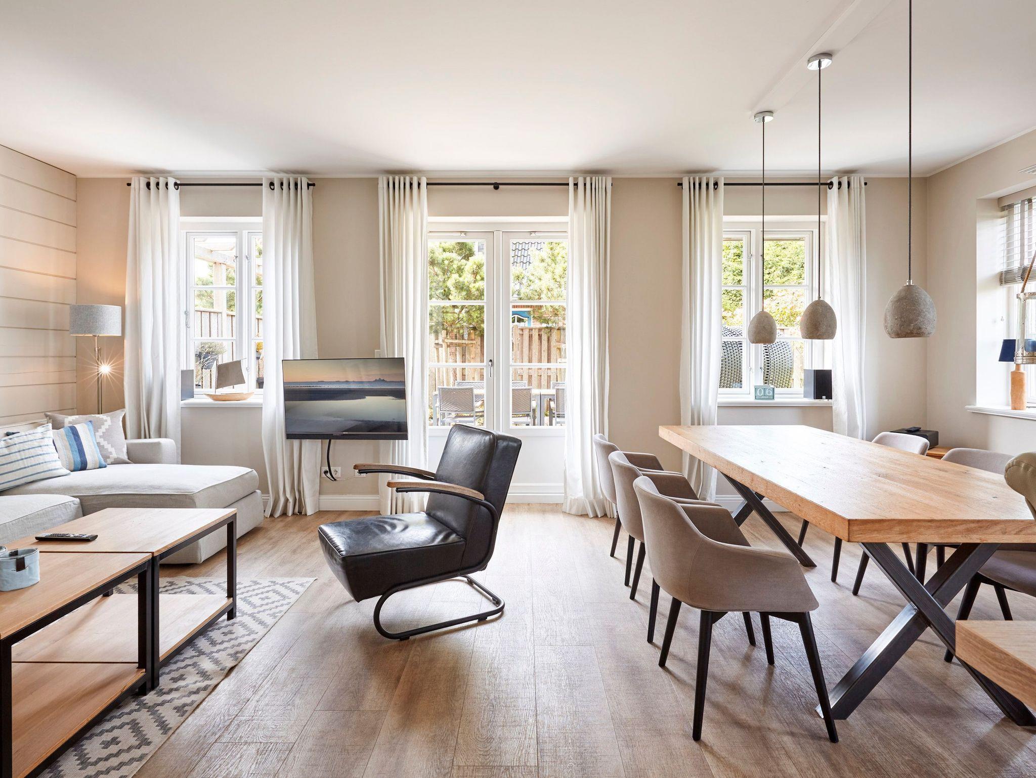 Das Ferienhaus Uast Winj hat im Erdgeschoss einen großen Wohn-Essbereich mit einer offenen Küche. Die Küche lässt keine Wünsche offen. Der Hobby-Koch findet hier alles, was er braucht: ein Induktionsfeld im Küchenblock, viele große Schubladen und Auszüge fürs bequeme Wegstauen, einen Backofen auf Augenhöhe, sowie viele elektrische Küchengeräte wie Pürierstab, Handmixer etc, ausreichend Töpfe und Pfannen, gute Messer, Schneidebretter und Rührschüsseln. Neben Wasserkocher und Toaster gibt es auch eine Nespresso Kaffeemaschine. Der Wohnbereich hat ein bequemes Sofa mit einem Filzbezug, Couchtisch und einen Sessel. Außerdem befinden sich im Wohnbereich ein Kamin-Ofen, ein TV (40-Zoll) Standgerät und eine Stereoanlage mit Dockingstation. Im Untergeschoss befinden sich Waschmaschine und Trockner.
