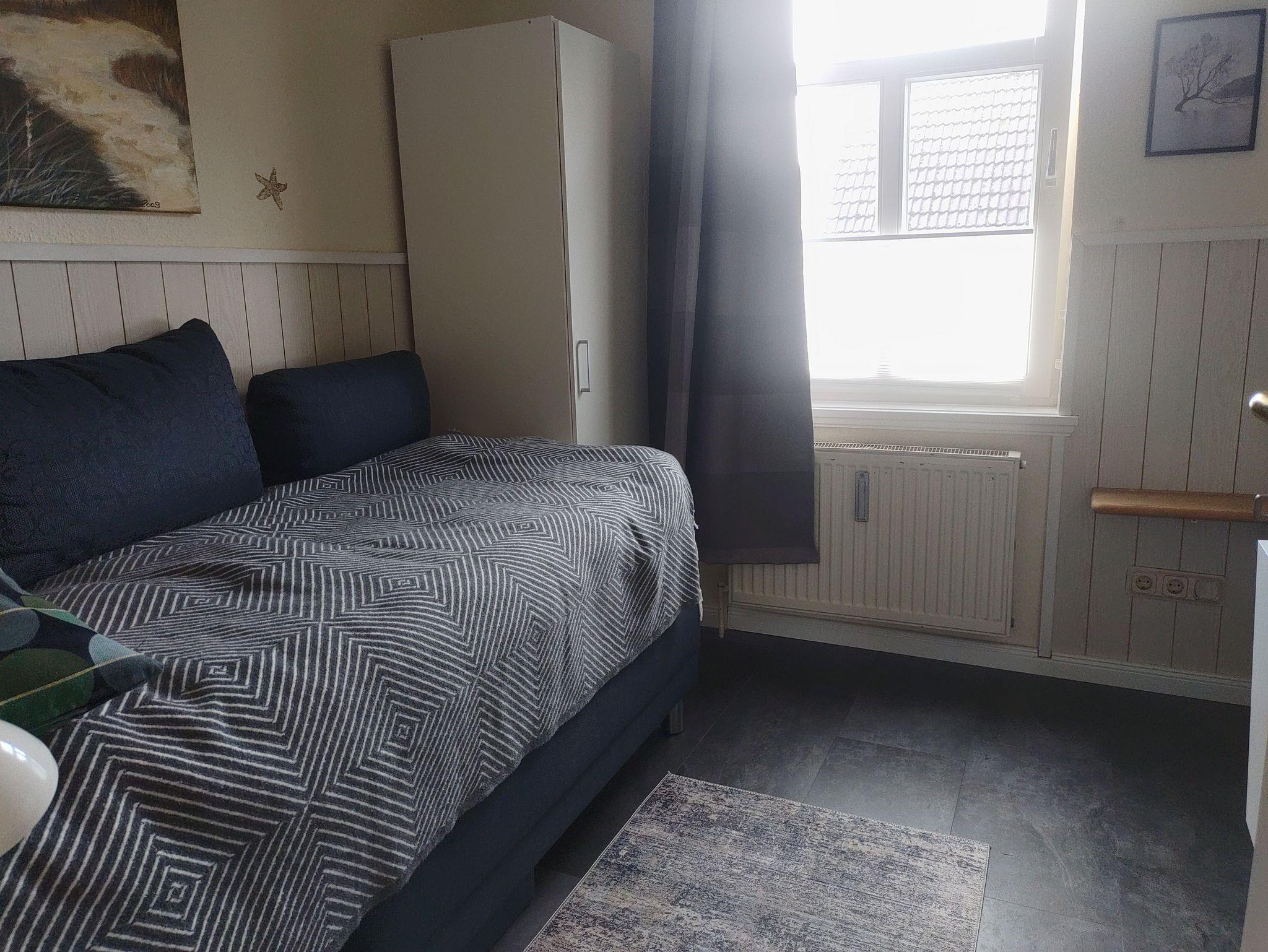 Die helle, gemütliche Obergeschosswohnung liegt 50 Meter entfernt von der Strandpromenade und der Nordsee. Das 56 m² große Feriendomizil bietet Platz für zwei bis drei Personen und teilt sich in zwei Schlafzimmer, ein Wohnzimmer mit integrierter Küche und einem Duschbad auf. Die dazugehörige Terrasse lädt zum Verweilen ein.