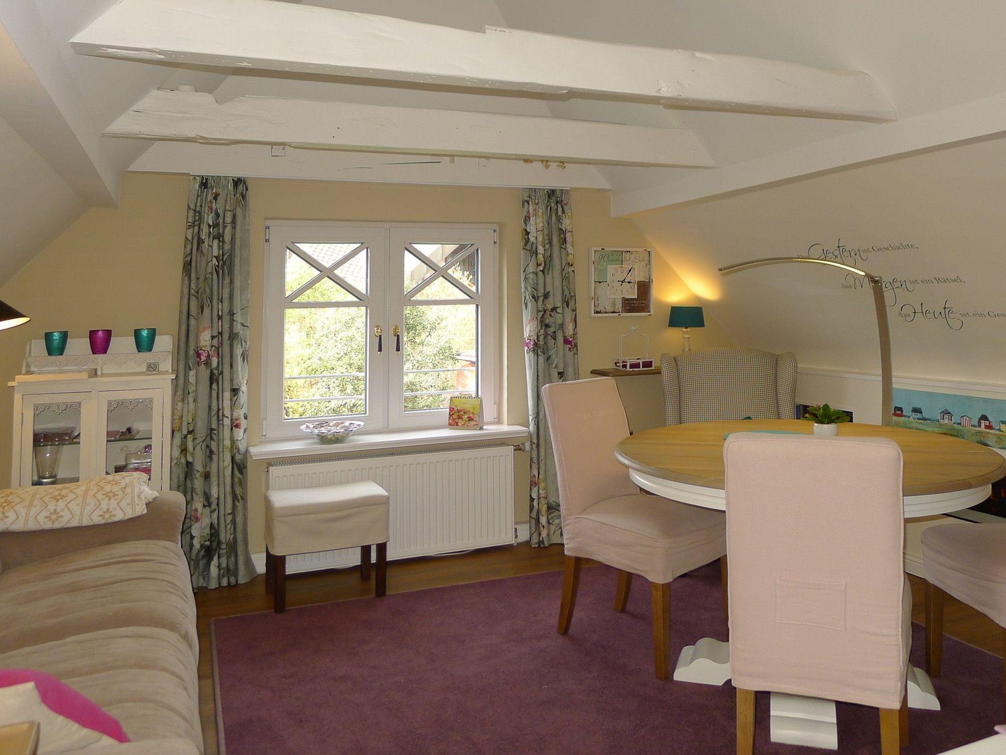 Erleben Sie Ihr persönliches ?Inselglück? mitten in Wyk, in dieser liebevoll und hochwertig eingerichteten Wohnung. Mit nur wenigen Schritten holen Sie morgen die Frühstücksbrötchen vom Bäcker, ein paar Schritte weiter lockt schon der Strand und das Meer. Der Sandwall mit seinen Geschäften, Cafes und Restaurants ? alles wartet von Ihnen entdeckt zu werden. Die Wohnung, mit separatem Eingang, wird Sie begeistern. Ein besonderes Highlight ist sicherlich der große Balkon mit 25 qm. Von hier haben Sie einen traumhaften Blick über die Dächer und Gärten. Morgens starten Sie den Tag schon mit einem Frühstück auf dem Balkon und am Abend können sie den Sonnenuntergang beobachten. Sollte das Wetter mal nicht für ?open Air? geeignet sein, machen Sie den knisternden Elektro-Kamin an, fahren das Sofa in die bequeme Liegeposition und relaxen einfach. Eine ?rund-um? Wohlfühloase für jede Jahreszeit.