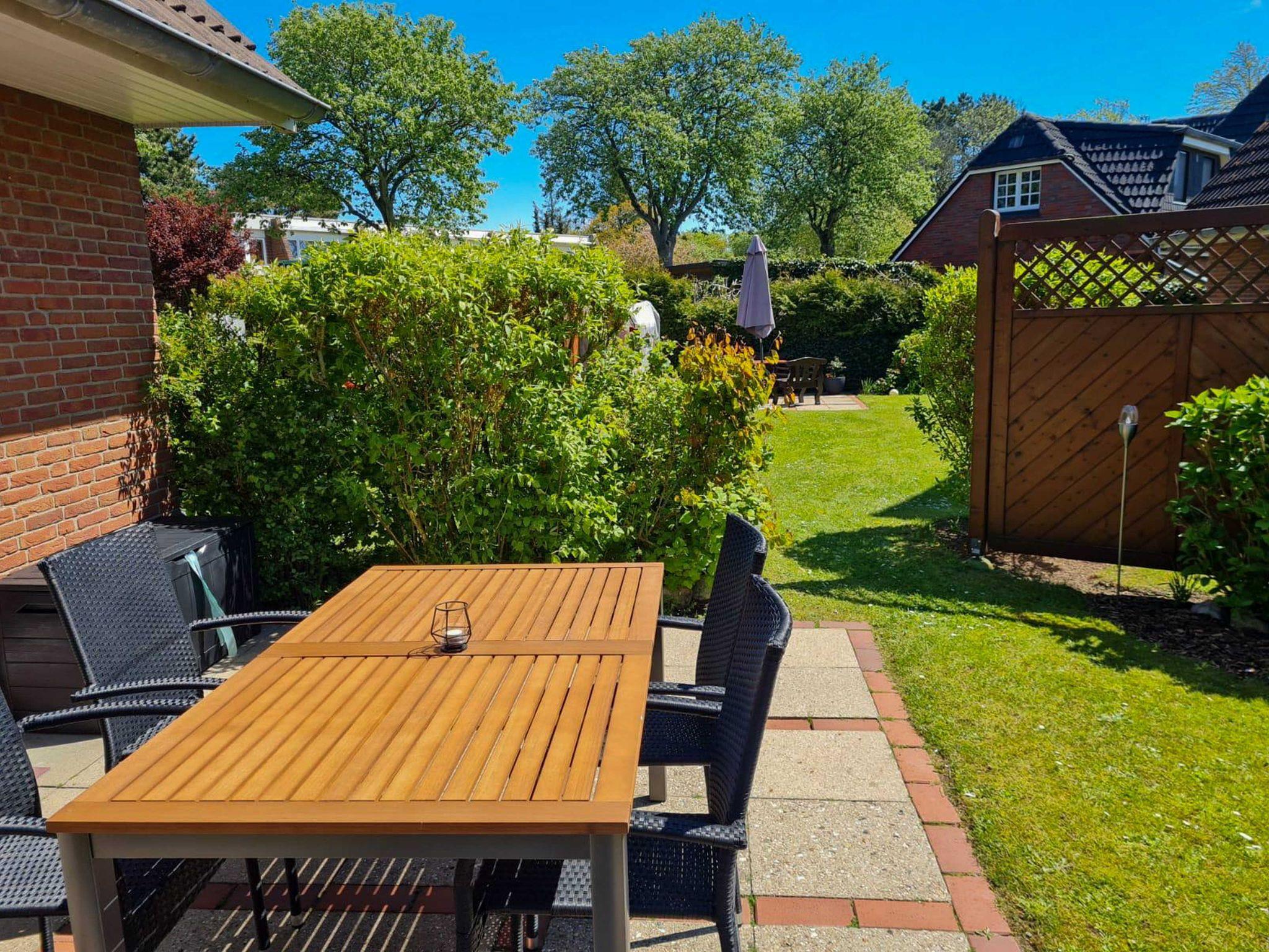 Im Garten steht ein abgetrennter Bereich zur abgeschiedenen Entspannen im Grünen für Sie bereit- sowie Schaukel und Sandkasten für die Kleinen.