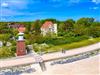 Genießen Sie den herrlichen Blick auf das Meer und die Halligen von Balkon und der Wohnung im 2.OG, in die der runde Erker im Turm mit einem Essplatz einbezogen ist.