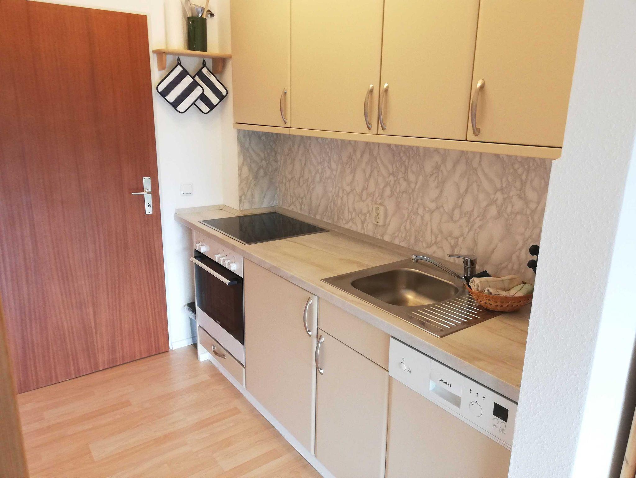 Die kleine, helle Erdgeschosswohnung mit Terrasse liegt im Berliner Ring, nur ca. 1,5 km vom Zentrum und Badestrand am Sandwall entfernt. Von dort aus können Sie fußläufig in ca. 15. Minuten in die Innenstadt spazieren. Das Einraumappartement hat eine Schlafnische mit Doppelbett und eine gemütliche Sitzecke, Hunde sind Herzlich Willkommen. Im Durchgang zum Duschbad befindet sich die Küchenzeile. Die Terrasse ist mit Balkonmöbeln ausgestattet. In der Nähe, ca.700 Meter entfernt, befindet sich ein Bäcker.