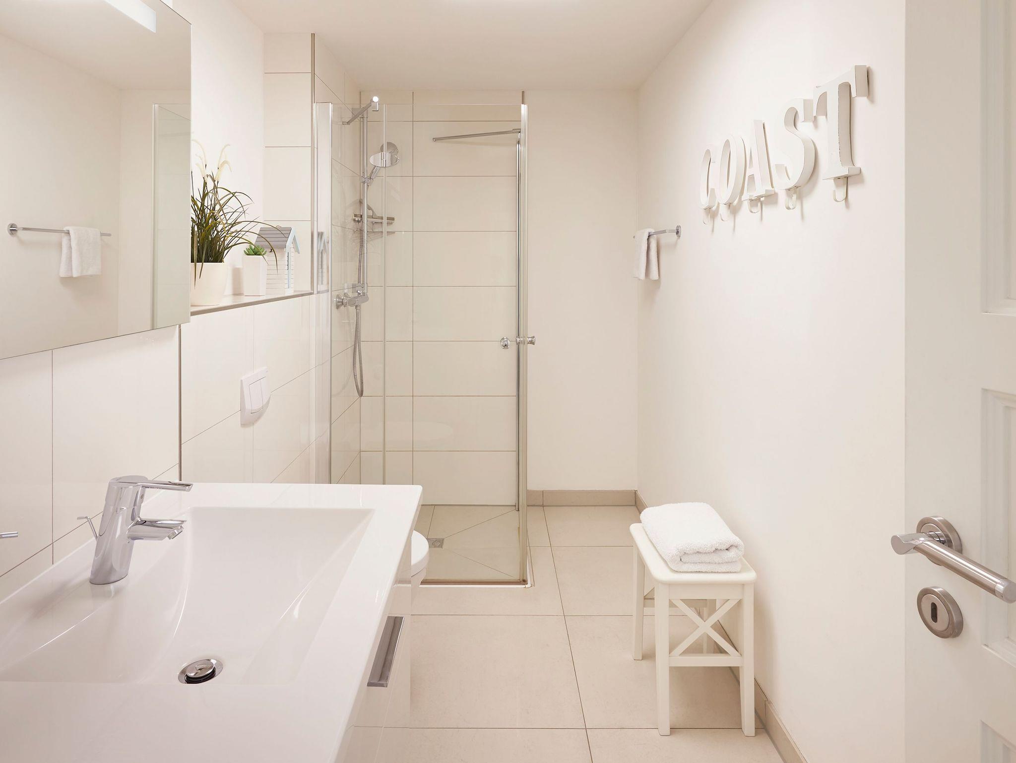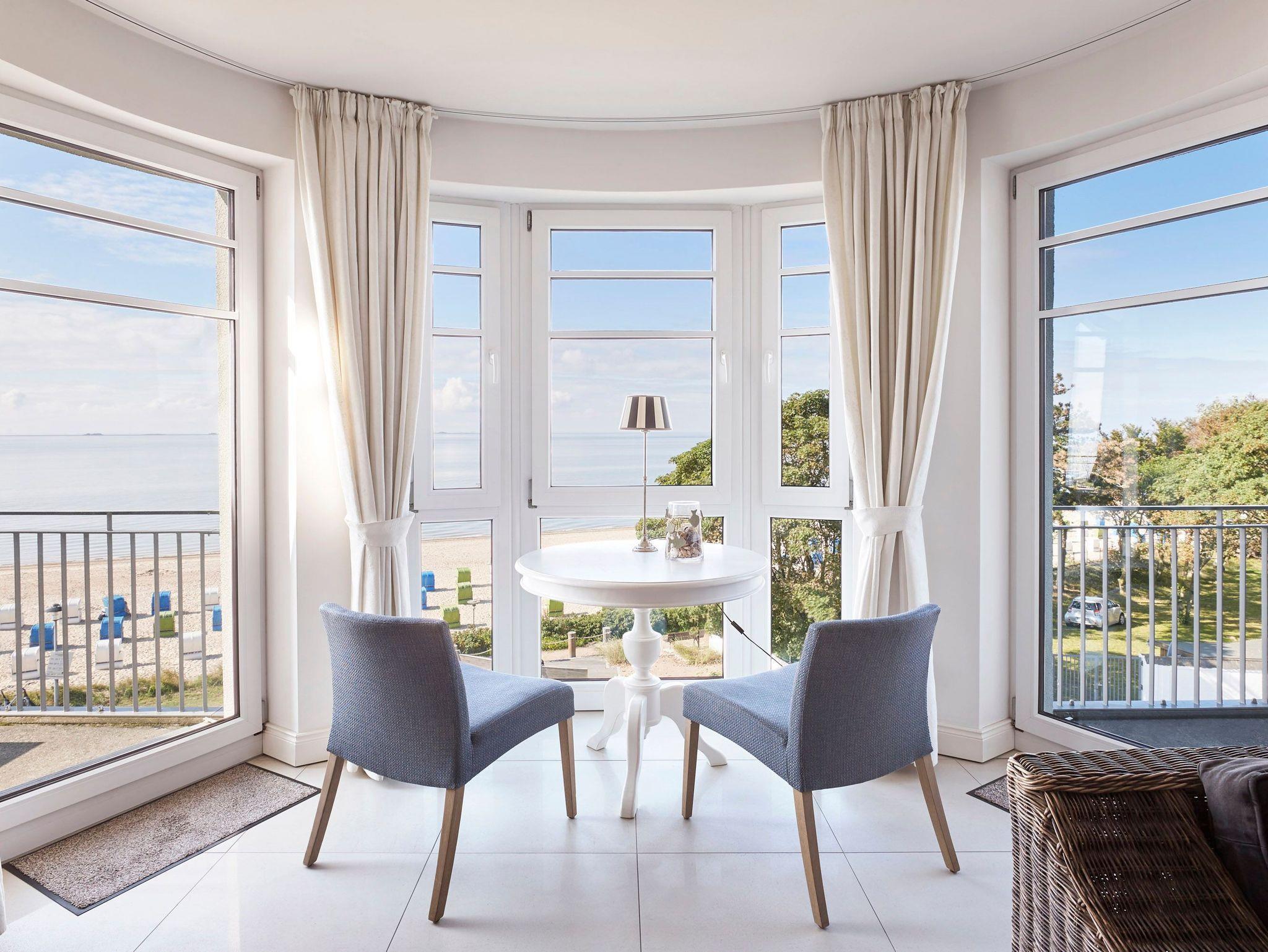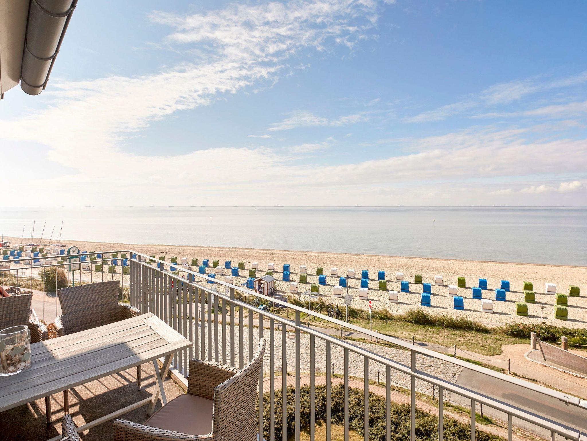 Wir begrüßen Sie im Schloß am Meer, der exklusiven Wohnanlage direkt am Wyker-Südstrand. Ihre Wohnung liegt im 3. Obergeschoss hinter der historischen Fassade, welche beim Neubau erhalten wurde. Hier laden zwei Balkone ein, den Blick auf die Nordsee und die Halligen zu genießen. Ein einzigartiger Panoramablick erwartet Sie. Genießen Sie die Sonne schon beim Frühstück! In nur wenigen Schritten befinden Sie sich auf der Promenade, die Sie ins Herz von Wyk führt. Hier laden Geschäfte zum Bummeln ein, in Cafes und Restaurants werden Sie mit kulinarischen Köstlichkeiten verwöhnt.