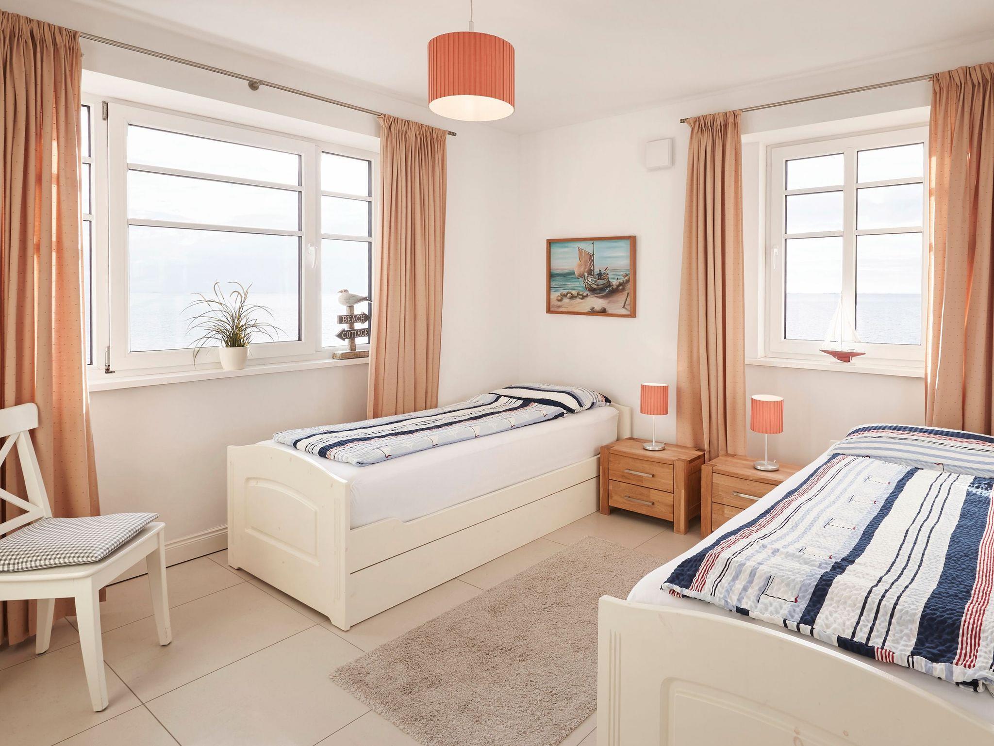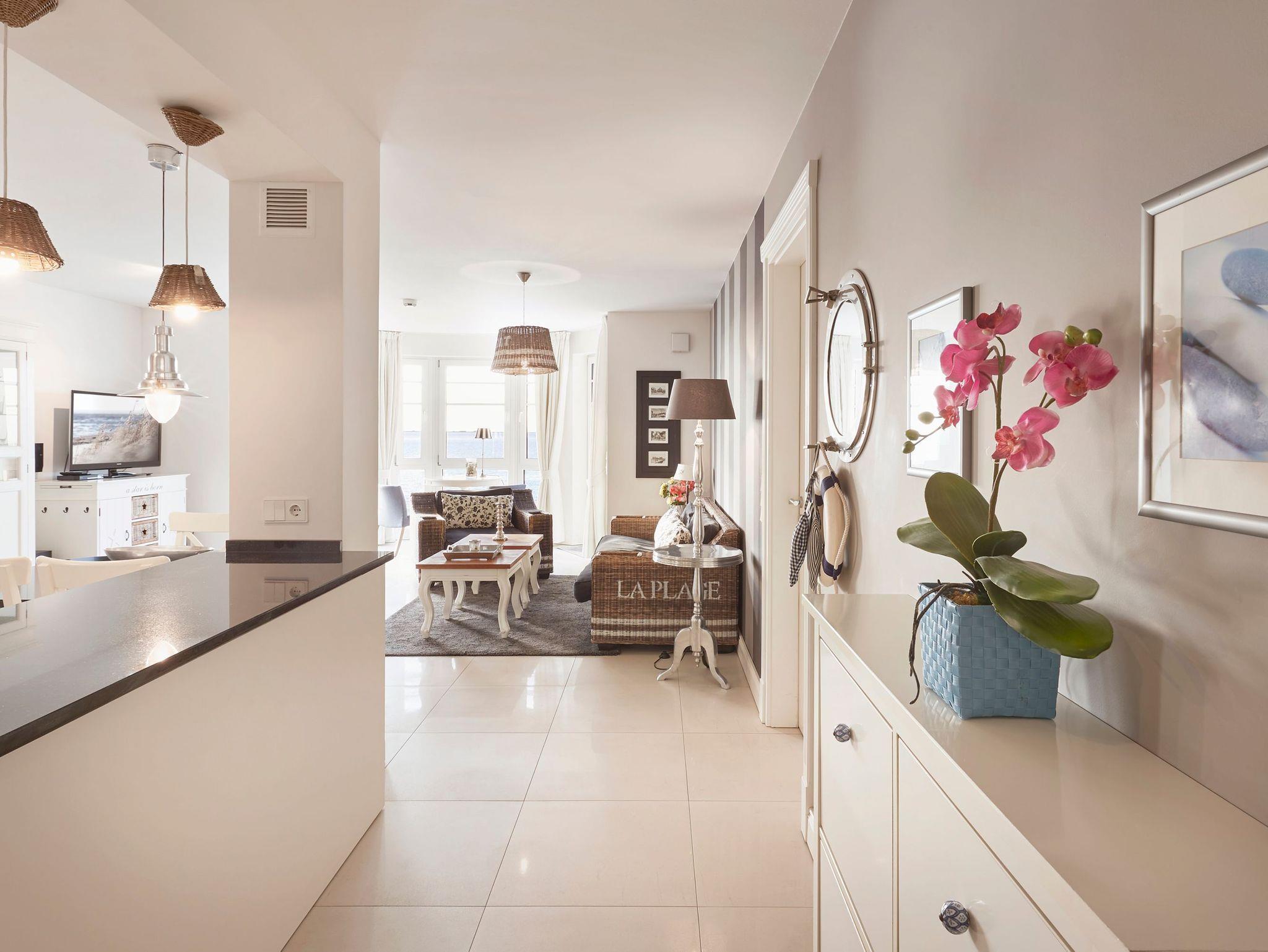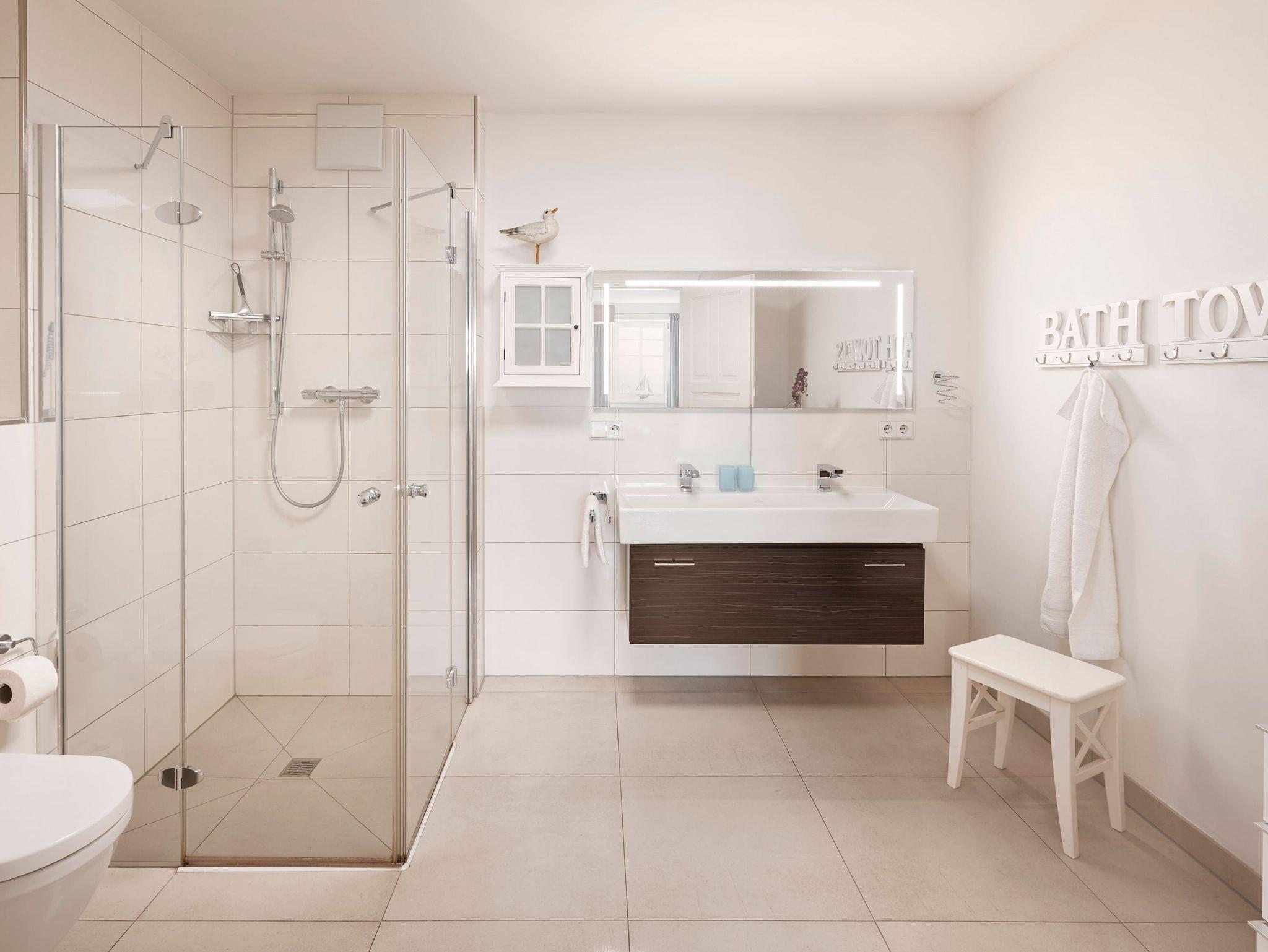 Wir begrüßen Sie im Schloß am Meer, der exklusiven Wohnanlage direkt am Wyker-Südstrand. Ihre Wohnung liegt im 3. Obergeschoss hinter der historischen Fassade, welche beim Neubau erhalten wurde. Hier laden zwei Balkone ein, den Blick auf die Nordsee und die Halligen zu genießen. Ein einzigartiger Panoramablick erwartet Sie. Genießen Sie die Sonne schon beim Frühstück! In nur wenigen Schritten befinden Sie sich auf der Promenade, die Sie ins Herz von Wyk führt. Hier laden Geschäfte zum Bummeln ein, in Cafes und Restaurants werden Sie mit kulinarischen Köstlichkeiten verwöhnt.