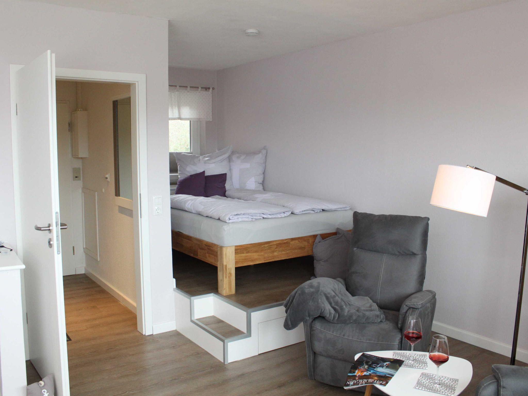 Das kleine Inselnest ist ein 1-Zimmer-Appartement und verfügt über eine Kochnische, einen Balkon mit Sitzmöglichkeit und ein separates Duschbad (Komplettrenovierung 2020).