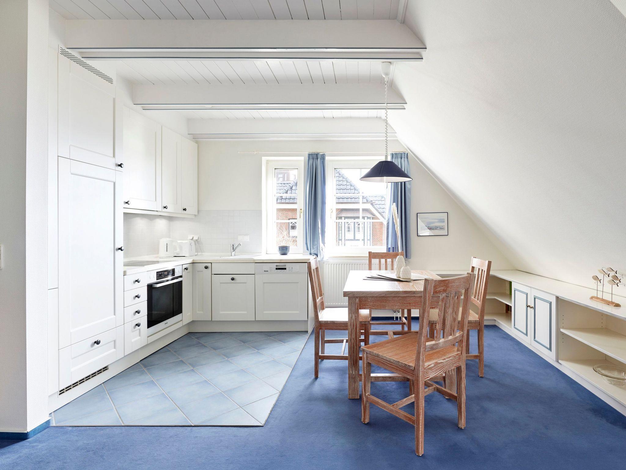 Herzlich Willkommen am Südstrand in Wyk auf Föhr! Eine gemütliche kleine Ferienwohnung direkt am feinsandigen Südstrand mit Blick auf die Halligen erwartet Sie. Die Wohnung befindet sich im Obergeschoss eines 1985 errichteten reetgedeckten Friesenhauses. Die Lage am Ende einer ruhigen Spielstraße, unmittelbar am Strand und am alten Nordsee-Kurpark ist ideal für Erholungsuchende, Wassersportler, Genießer und Meerverliebte. Über die Promenade erreichen Sie zu Fuß das Zentrum Wyks in 25 Minuten. Die Wohnung ist nordisch-gemütlich mit gelaugten Kiefernmöbeln und naturweißem Sofa und Sesseln eingerichtet. Sie bietet zwei Personen großzügig Platz, um sich wohlzufühlen. Zur Wohnung gehören ein Schlafzimmer, ein Bad mit Dusche und WC sowie ein großzügiger Wohn-Essbereich. Zur Ausstattung gehören unter anderem ein moderner 43?? OLED Smart-TV (Airplay fähig). Ein Strandkorb steht Ihnen im Strandabschnitt vor dem Haus zur Verfügung. Die Nutzung des Gartens ist den Mietern der Erdgeschosswohnung vorbehalten. Ihr Auto können Sie auf dem zur Wohnung zugehörigen Parkplatz abstellen.