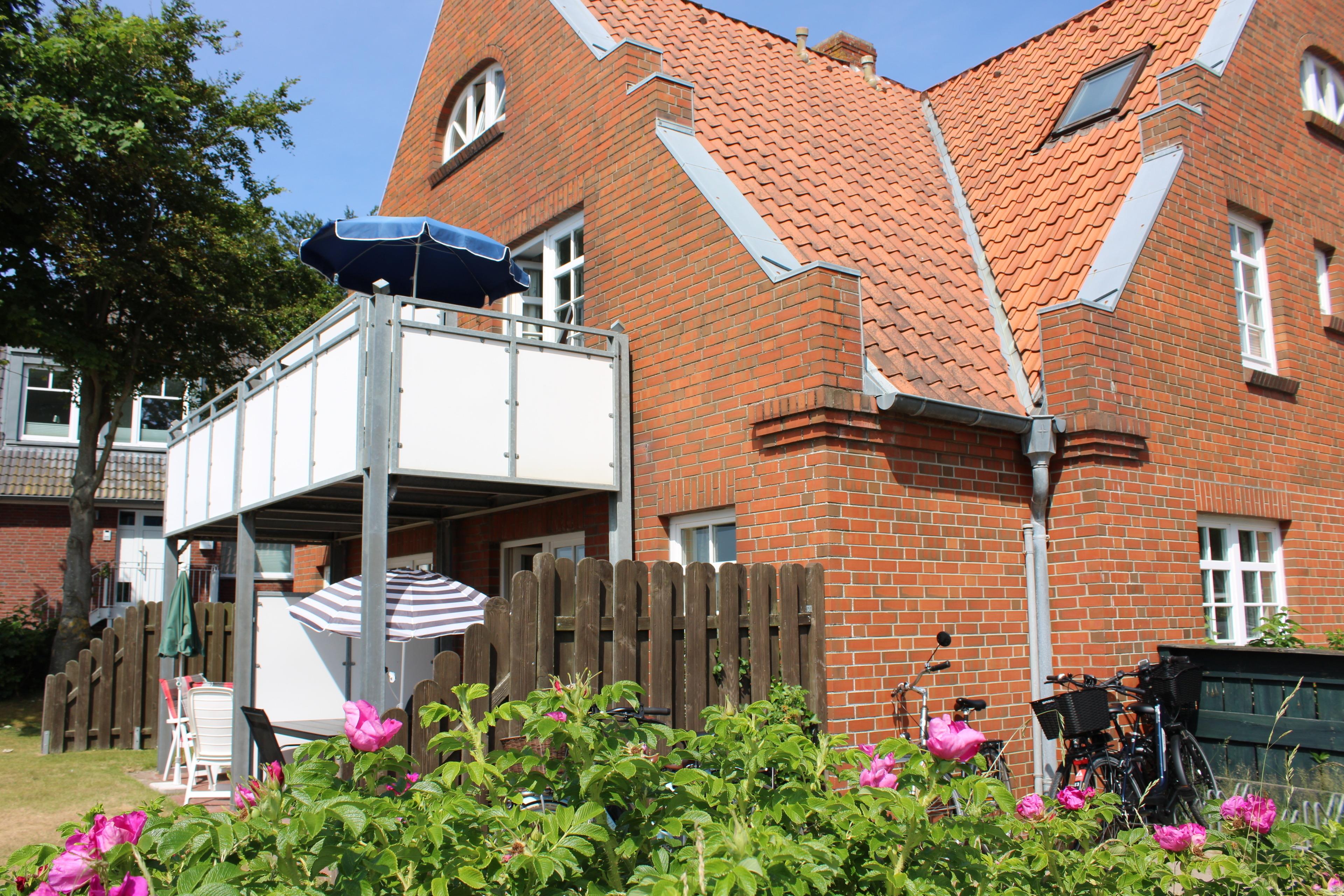 Das sehr ansprechende Mehrfamiliehaus liegt direkt am Südstrand von Wyk. Die Wohnung Nr. 01 bedfindet sich im Erdgeschoss und hat eine eigene Terrasse mit Gartenmöbeln.