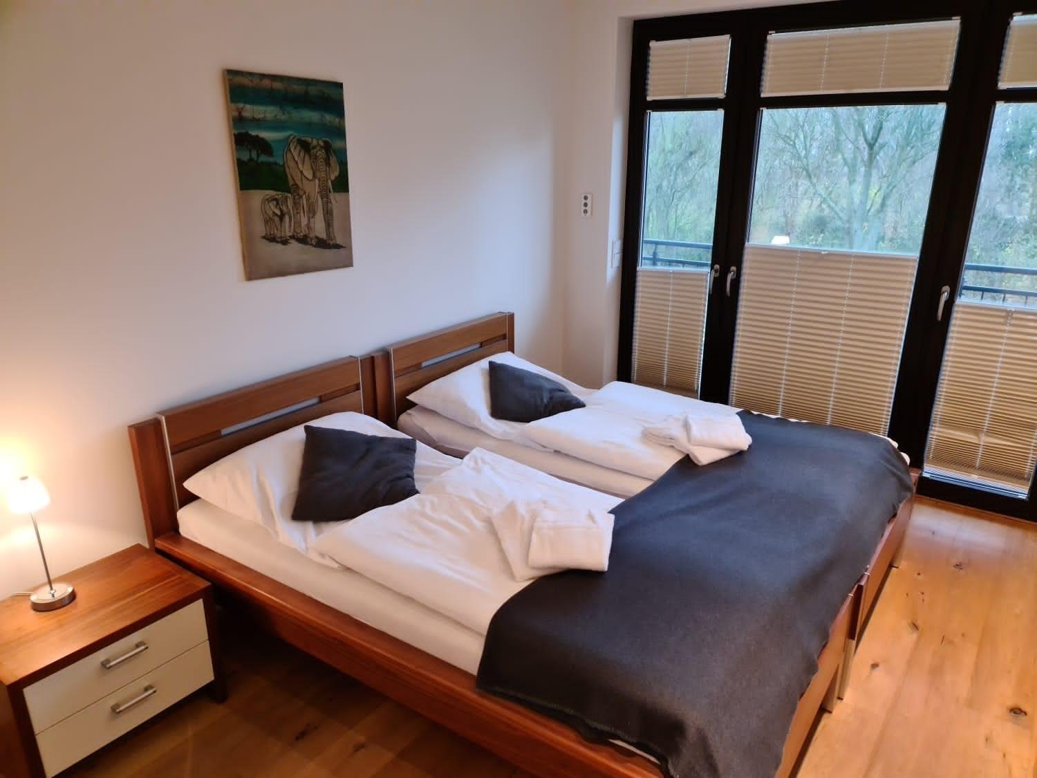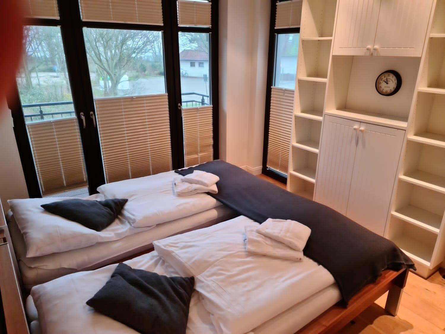 Die exklusiv neu ausgestattete und helle Wohnung verfügt über 2 Schlafzimmer, 1 Wohnzimmer mit integrierter moderner Küchenzeile, sowie zwei Duschbäder. Ein W-LAN Anschluß steht Ihnen kostenfrei zur Verfügung.